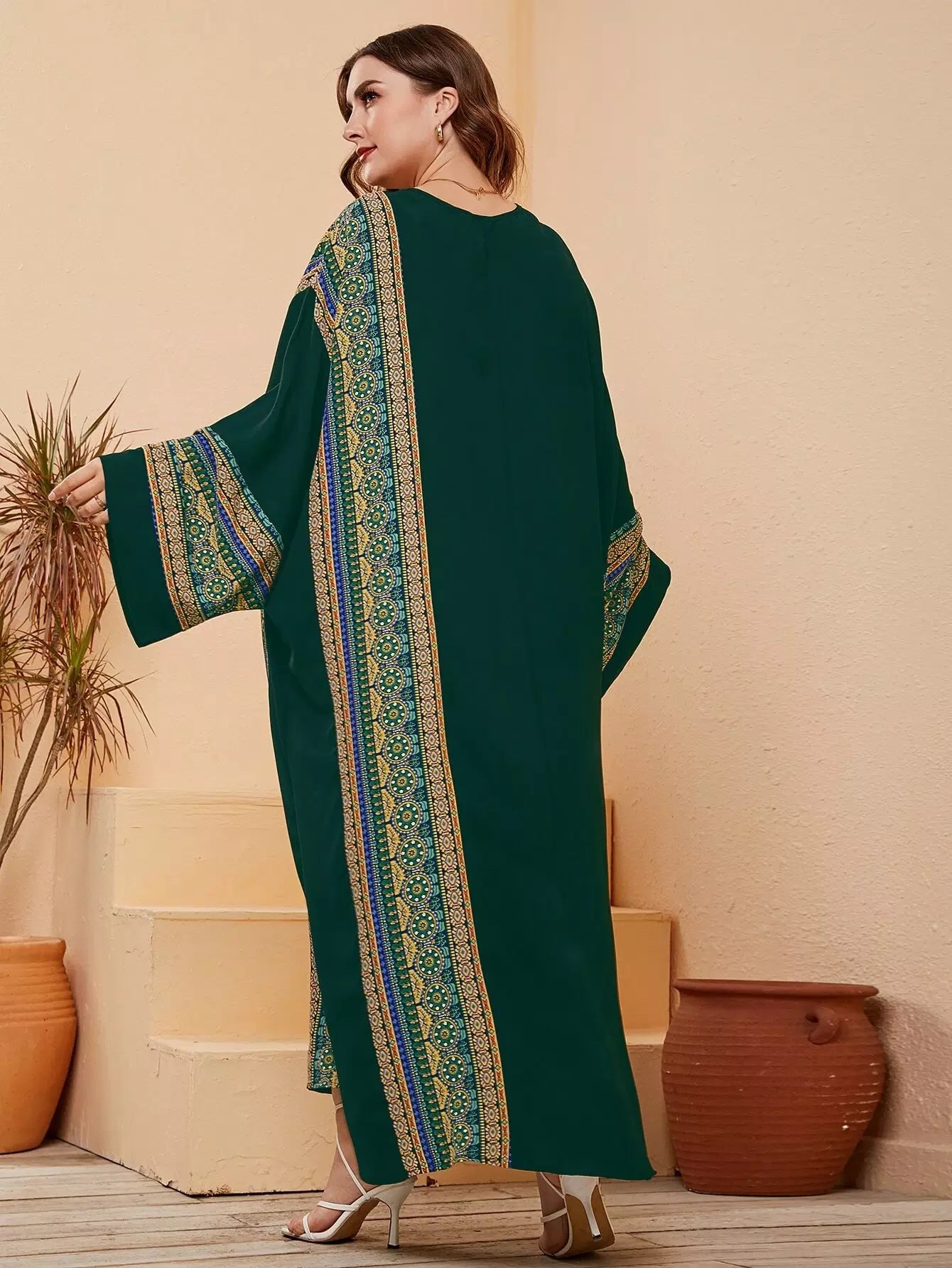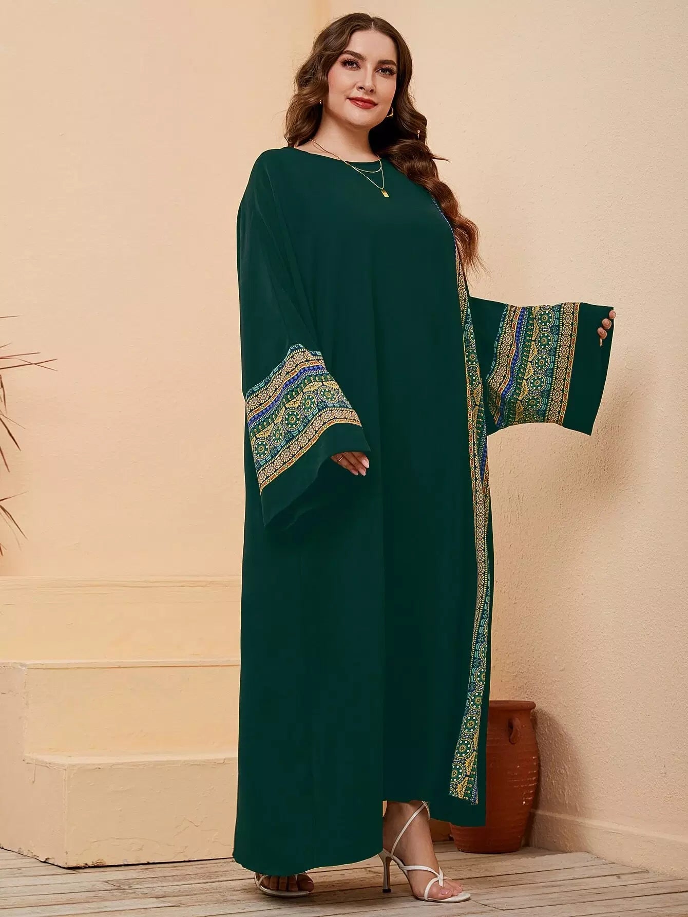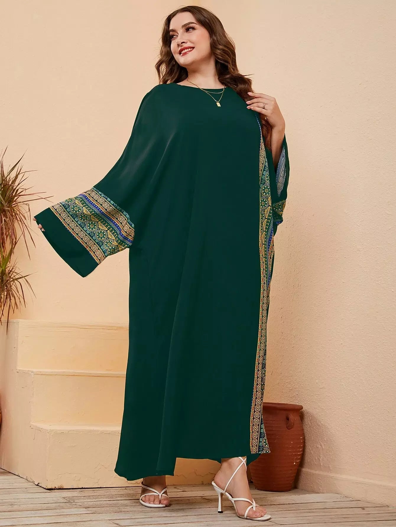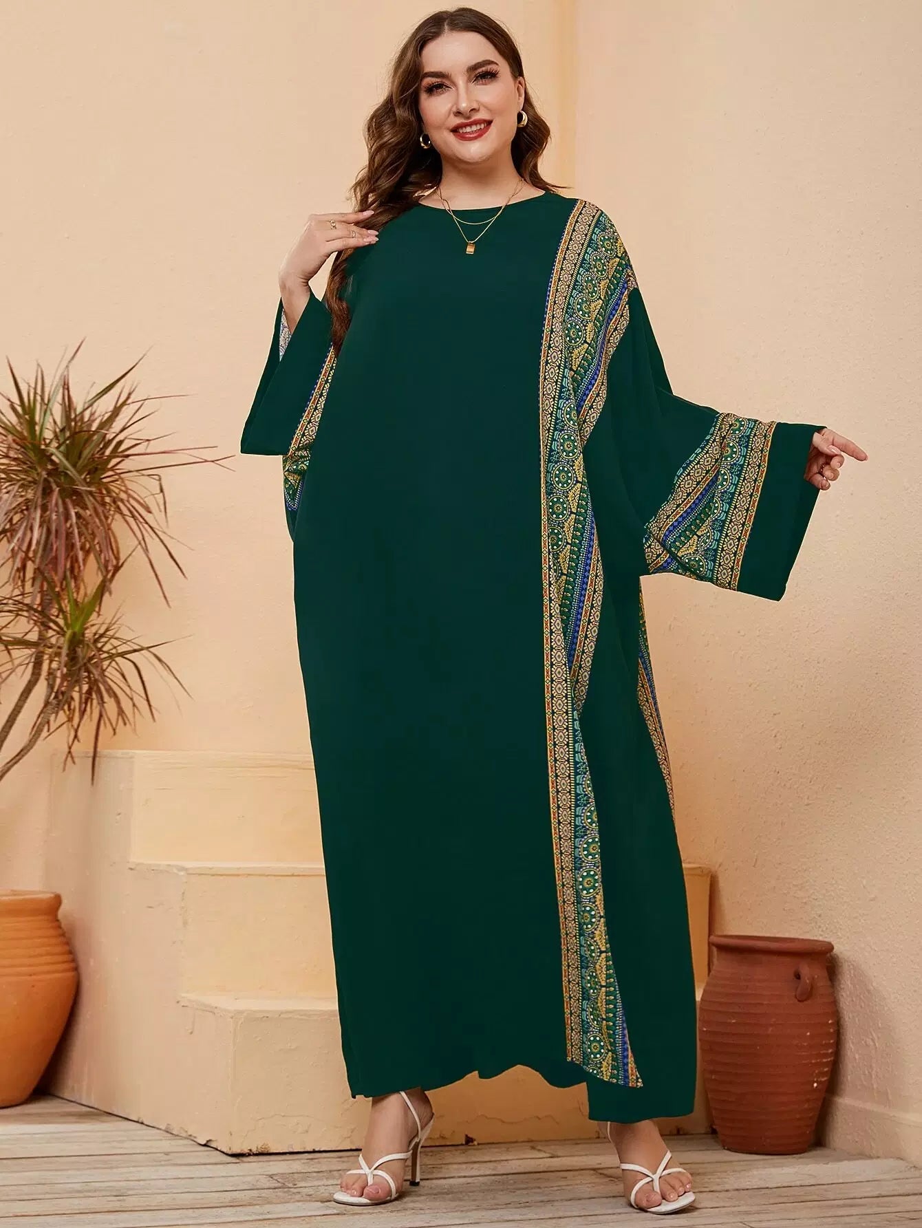 فستان ماكسي بأكمام جيو مطبوع بطبعة جيو بلس