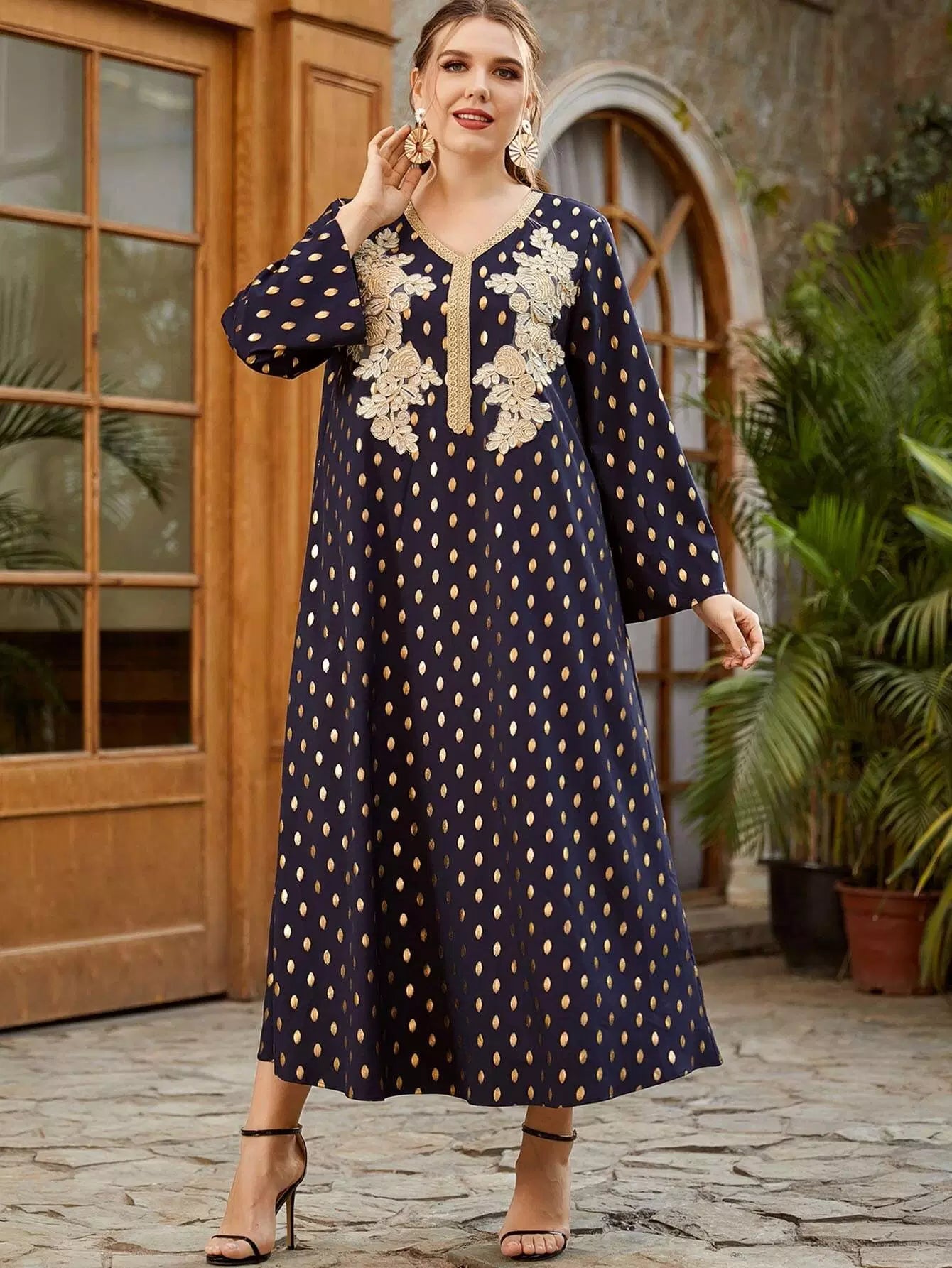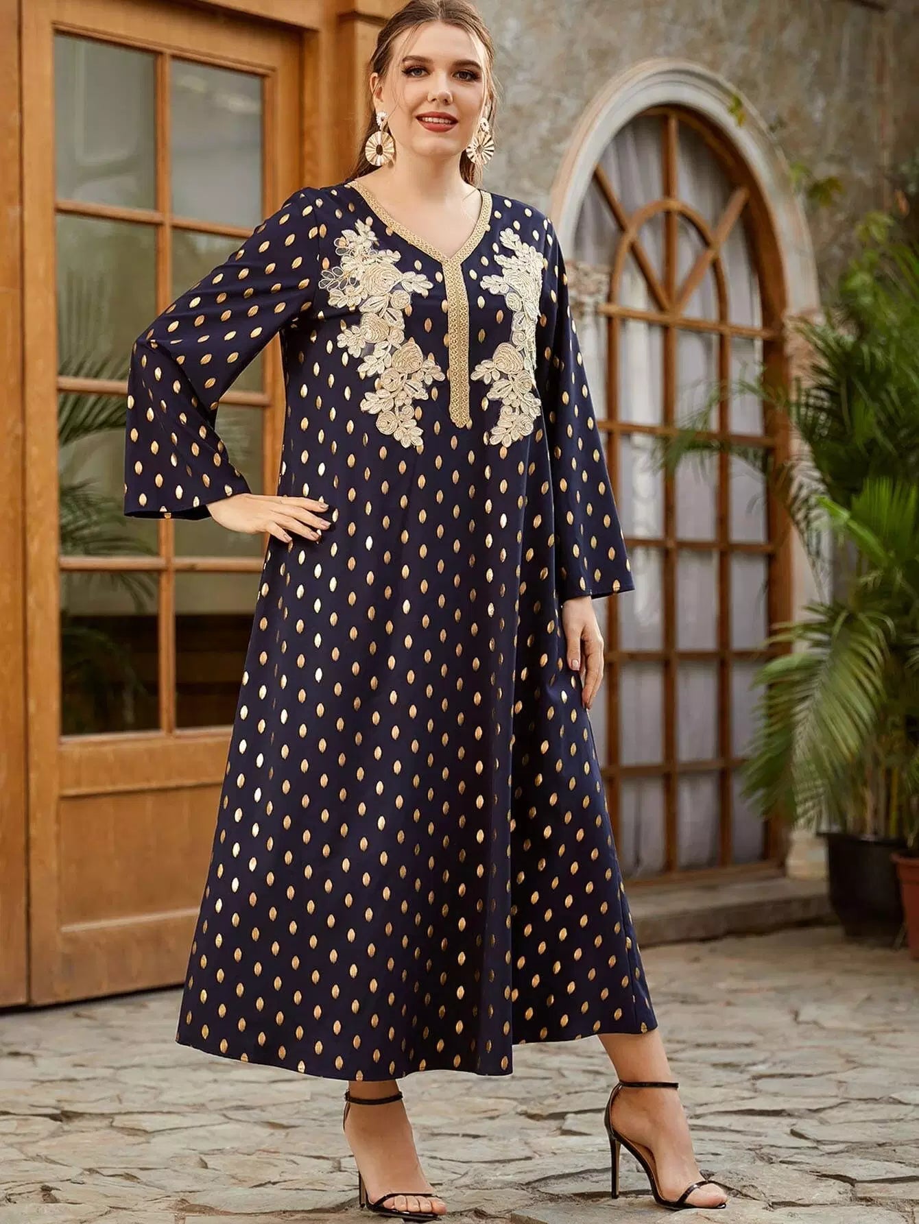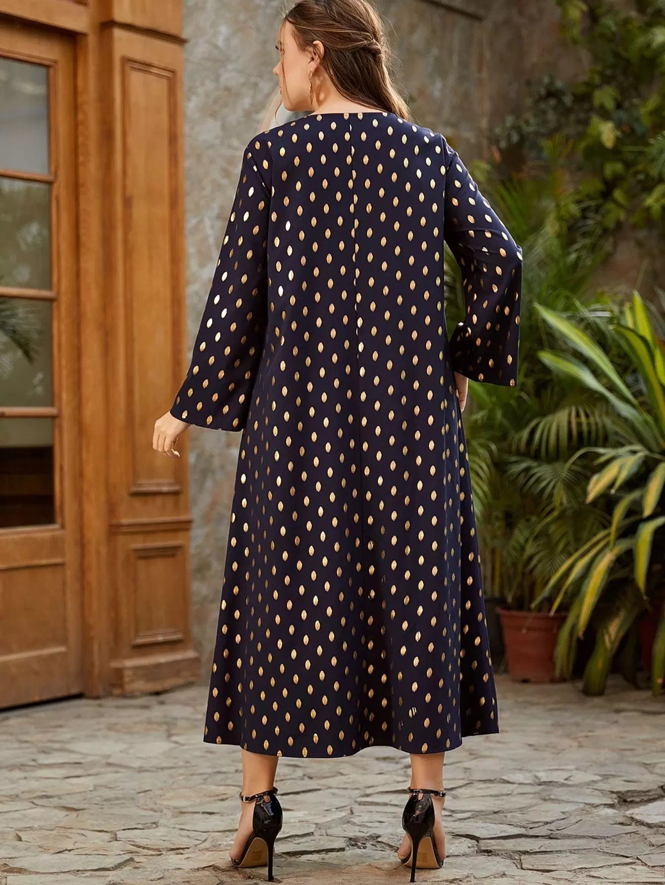 نحيف - مقاس كبير التذهيب طباعة يزين فستان تونك