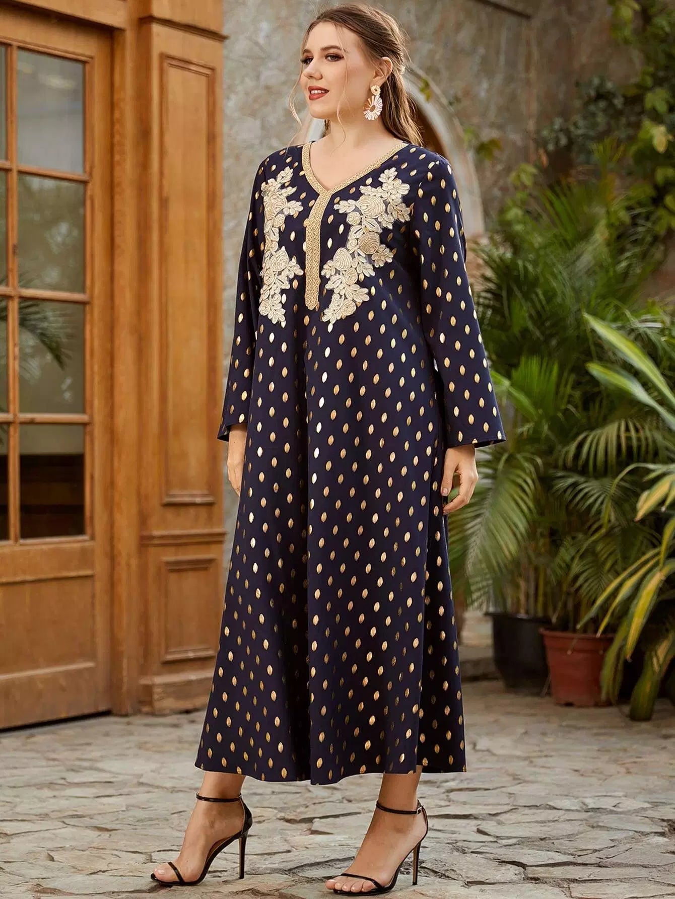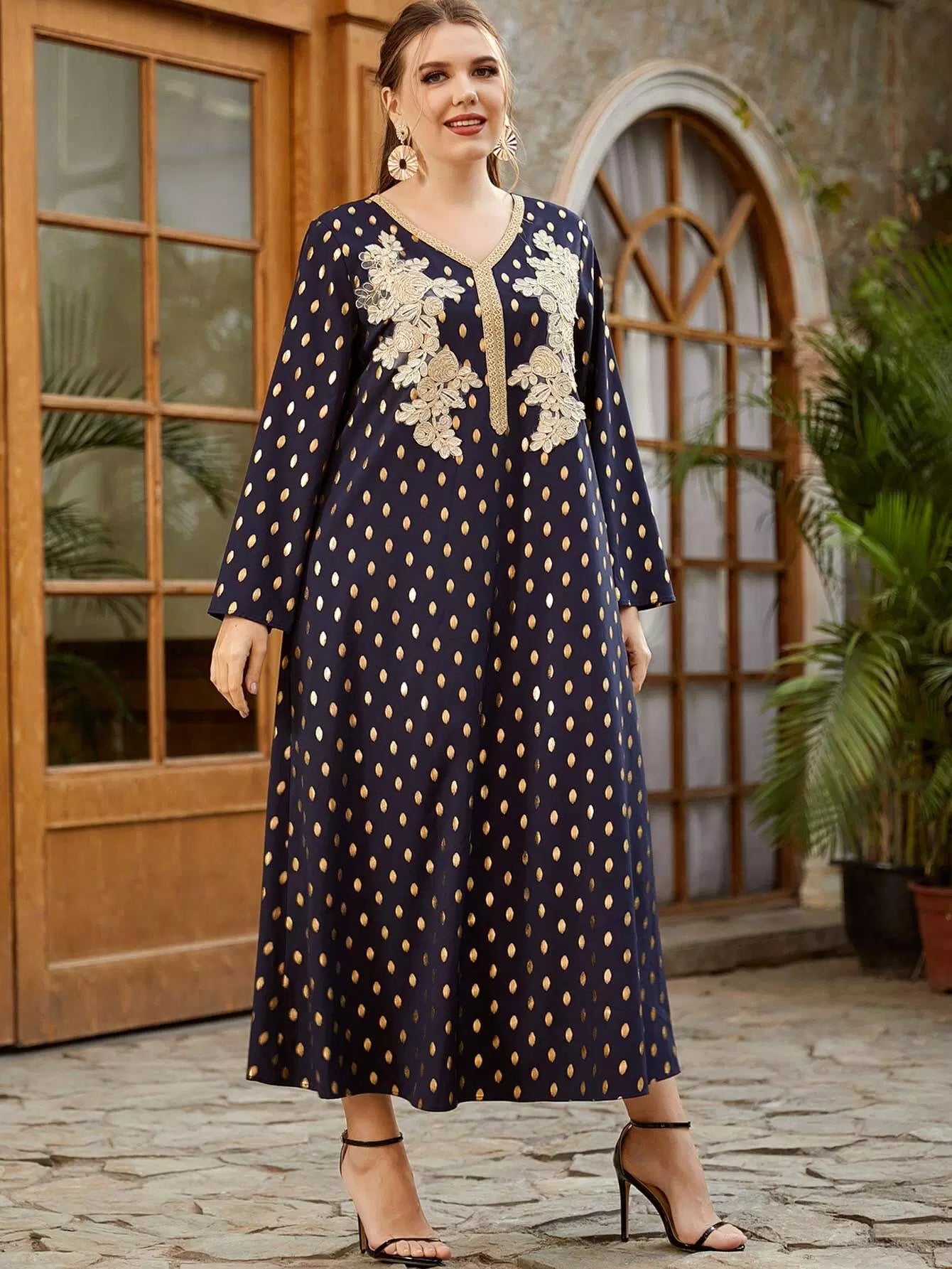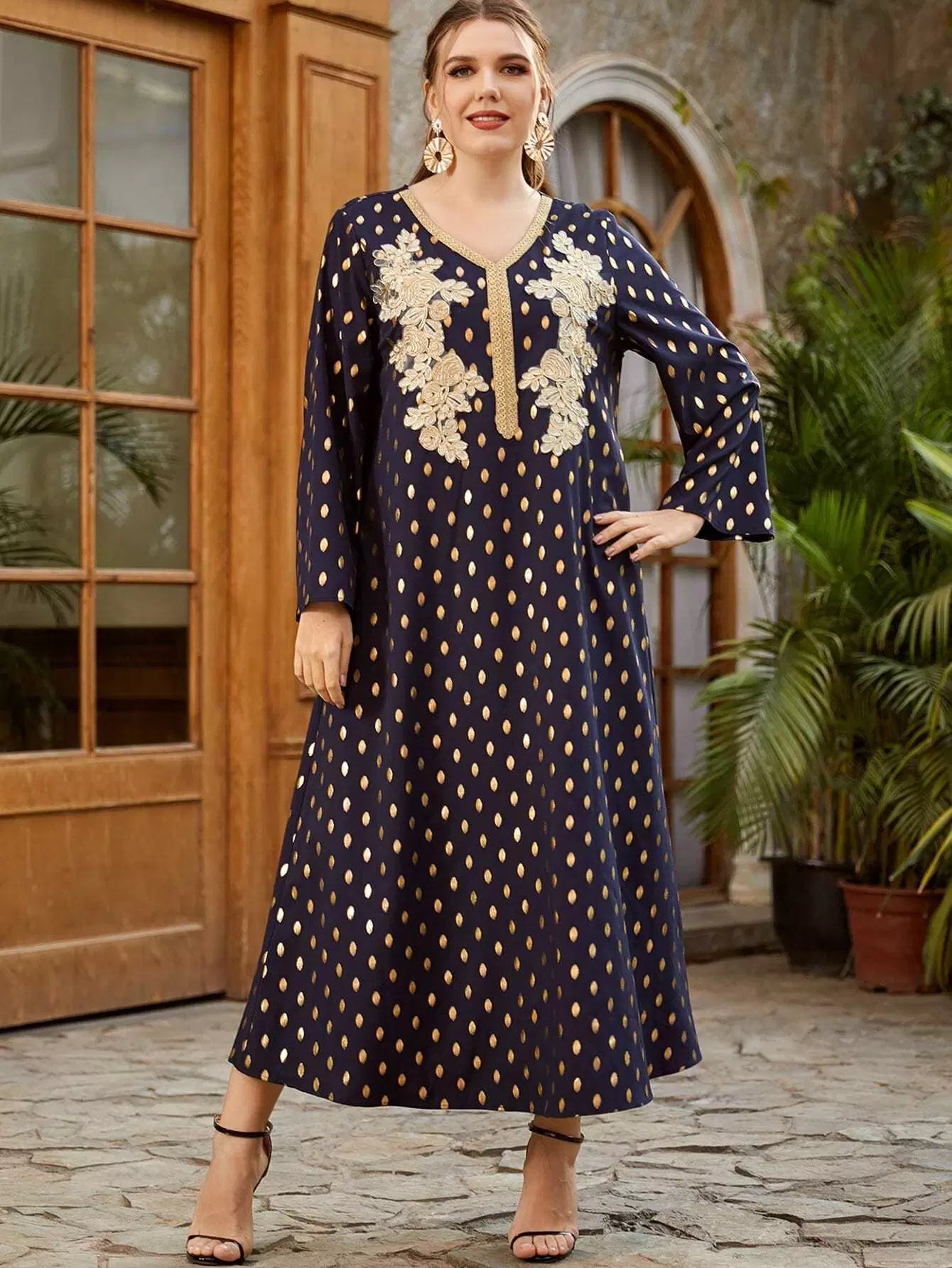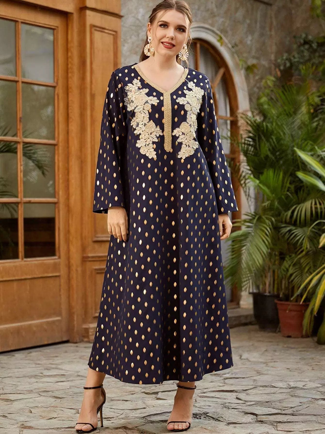 نحيف - مقاس كبير التذهيب طباعة يزين فستان تونك