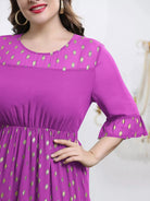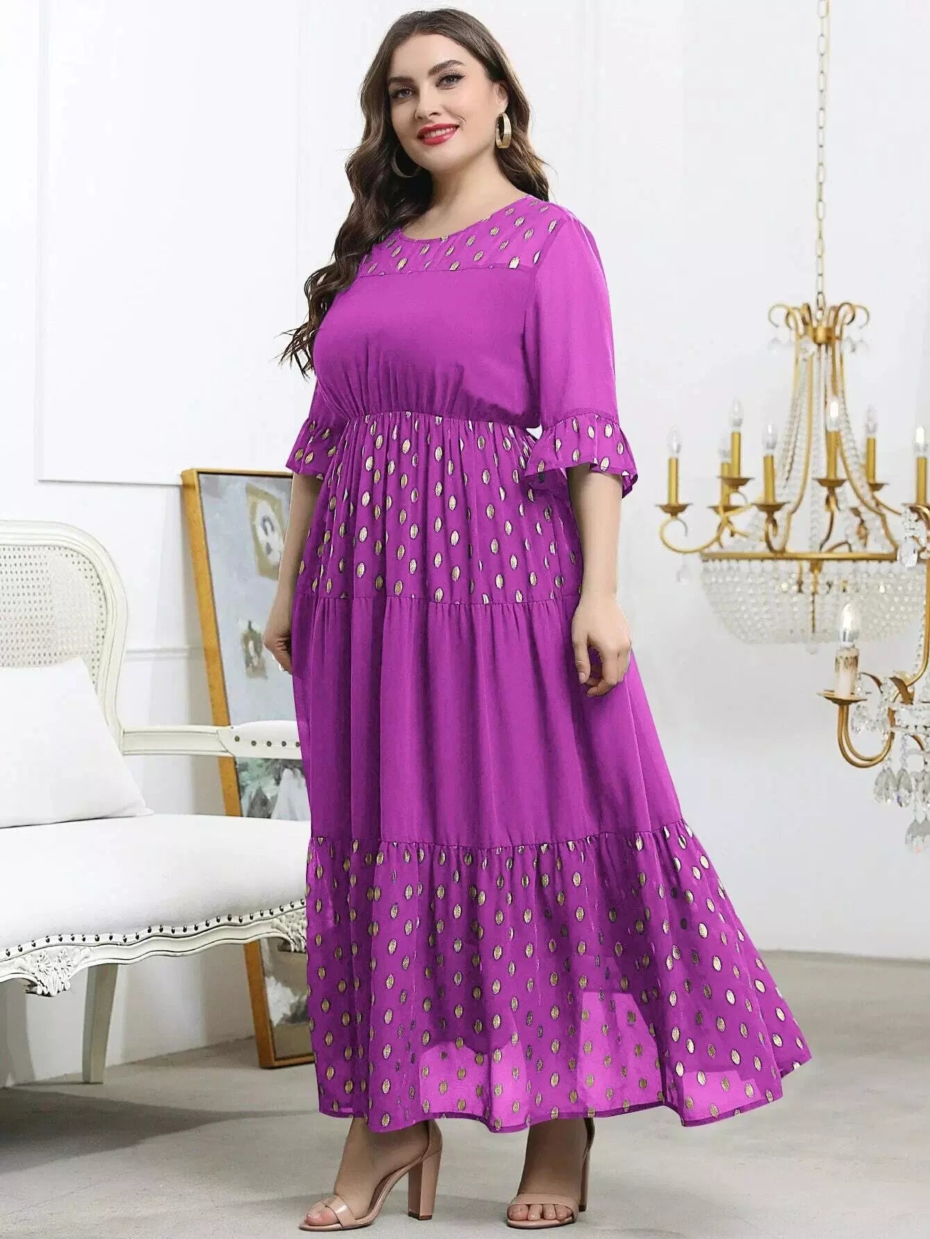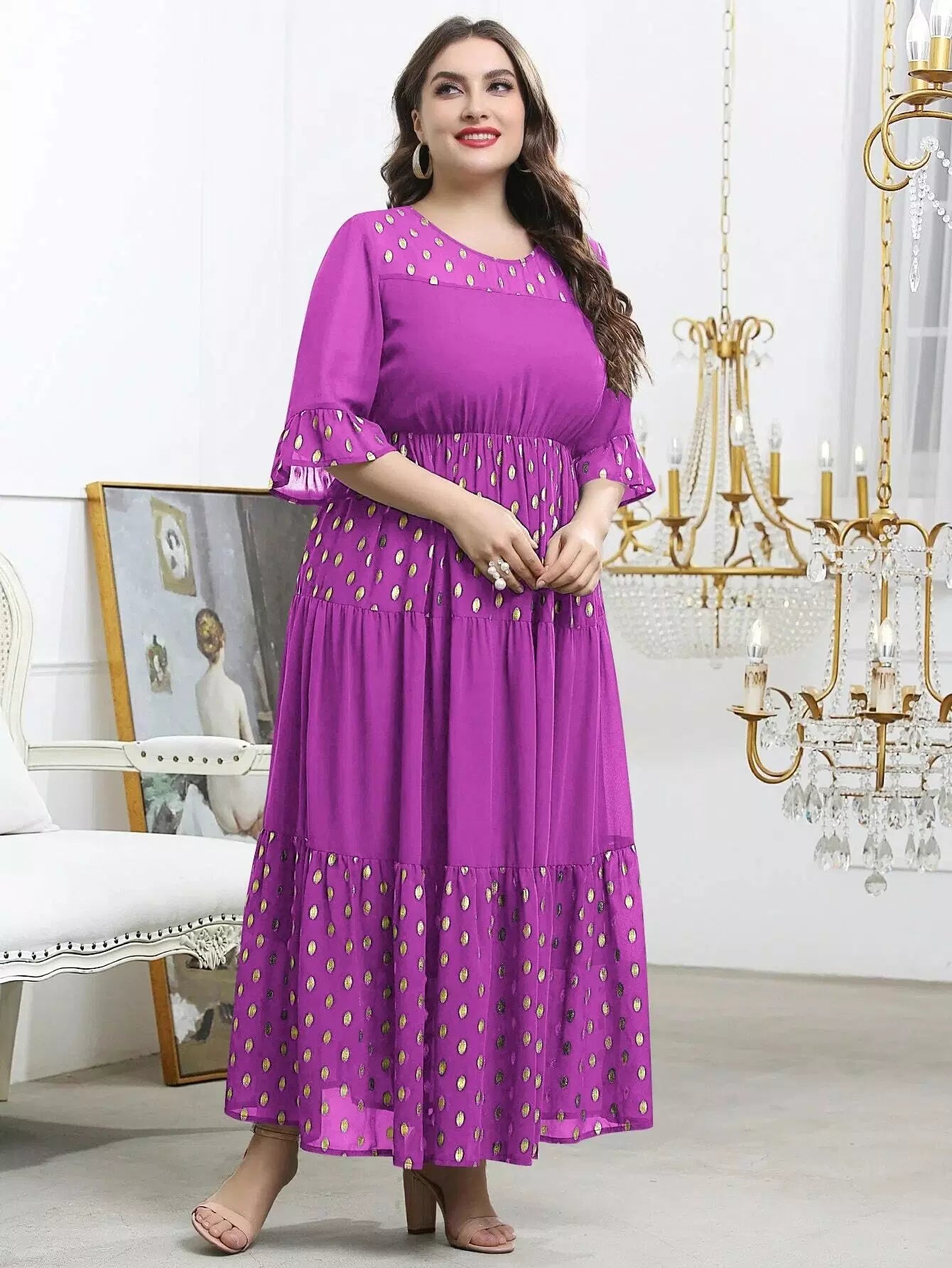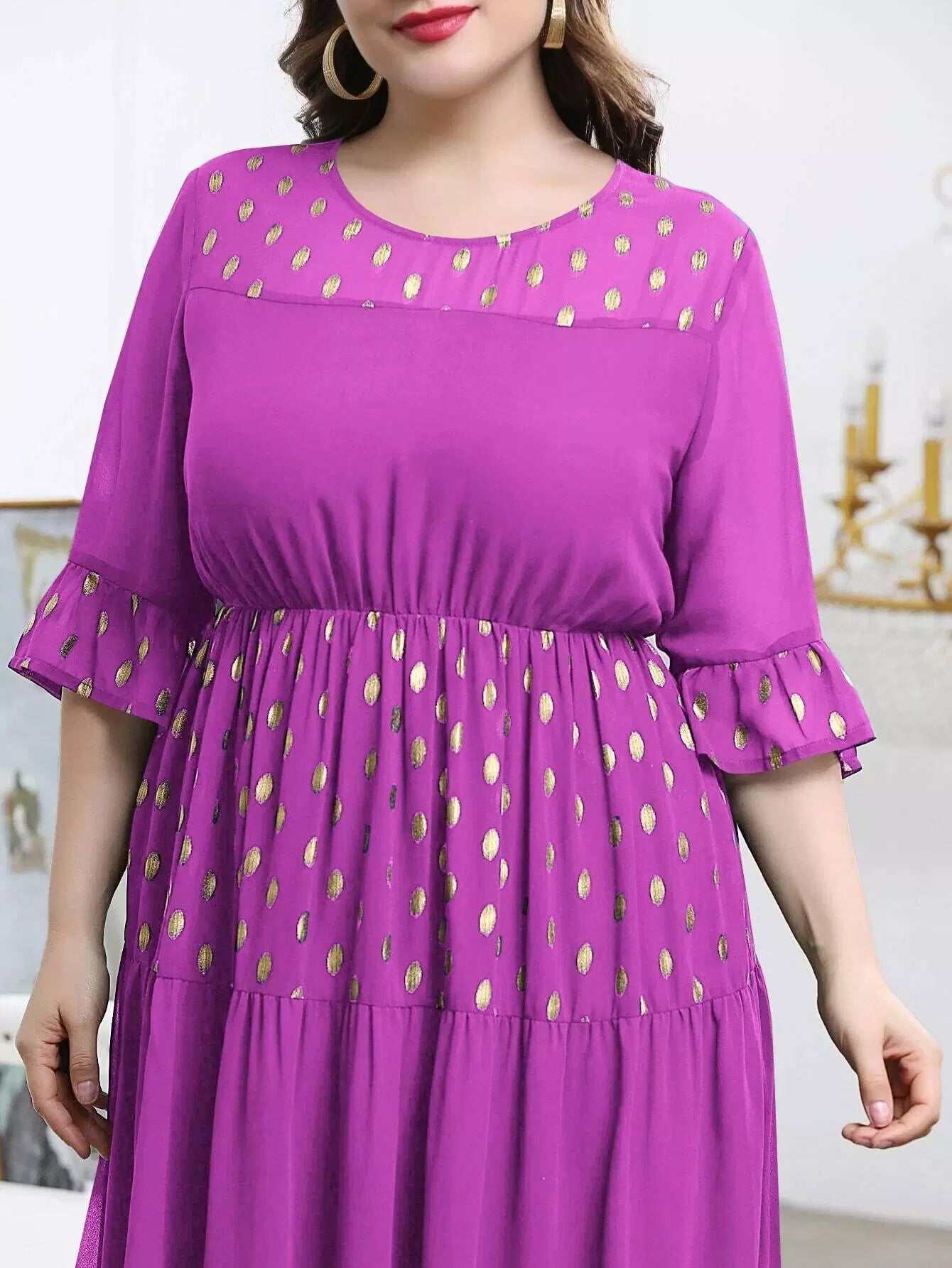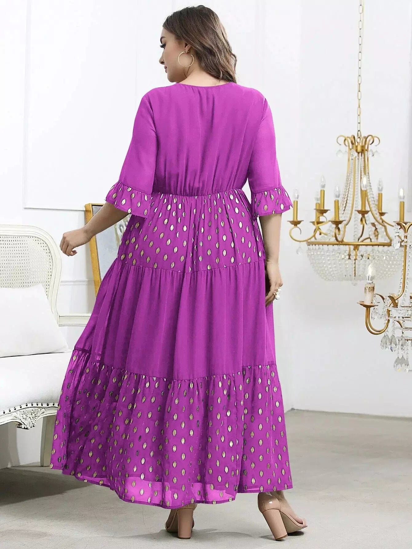 فستان بحافة مكشكشة ذهبي منقّط على شكل حرف A