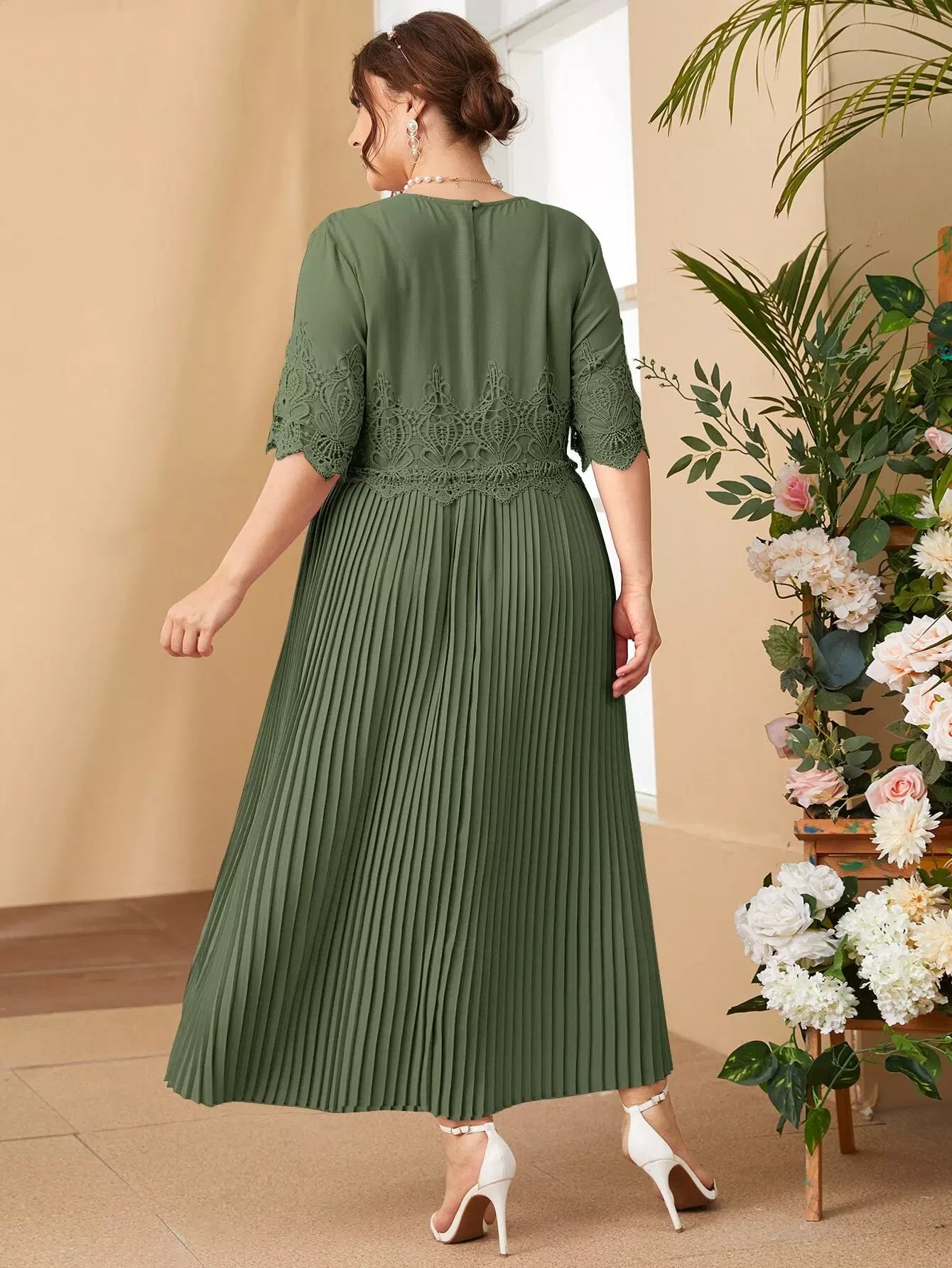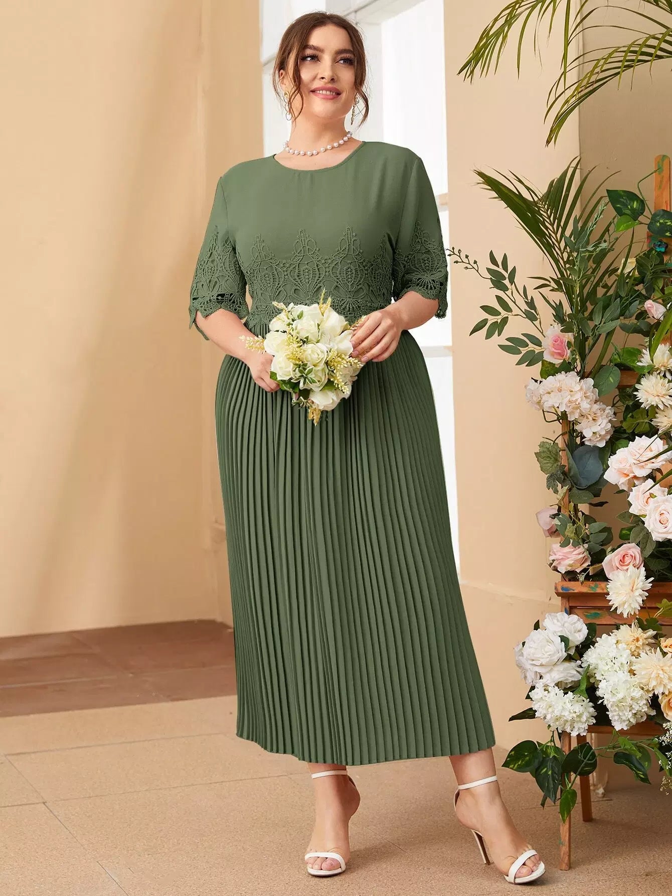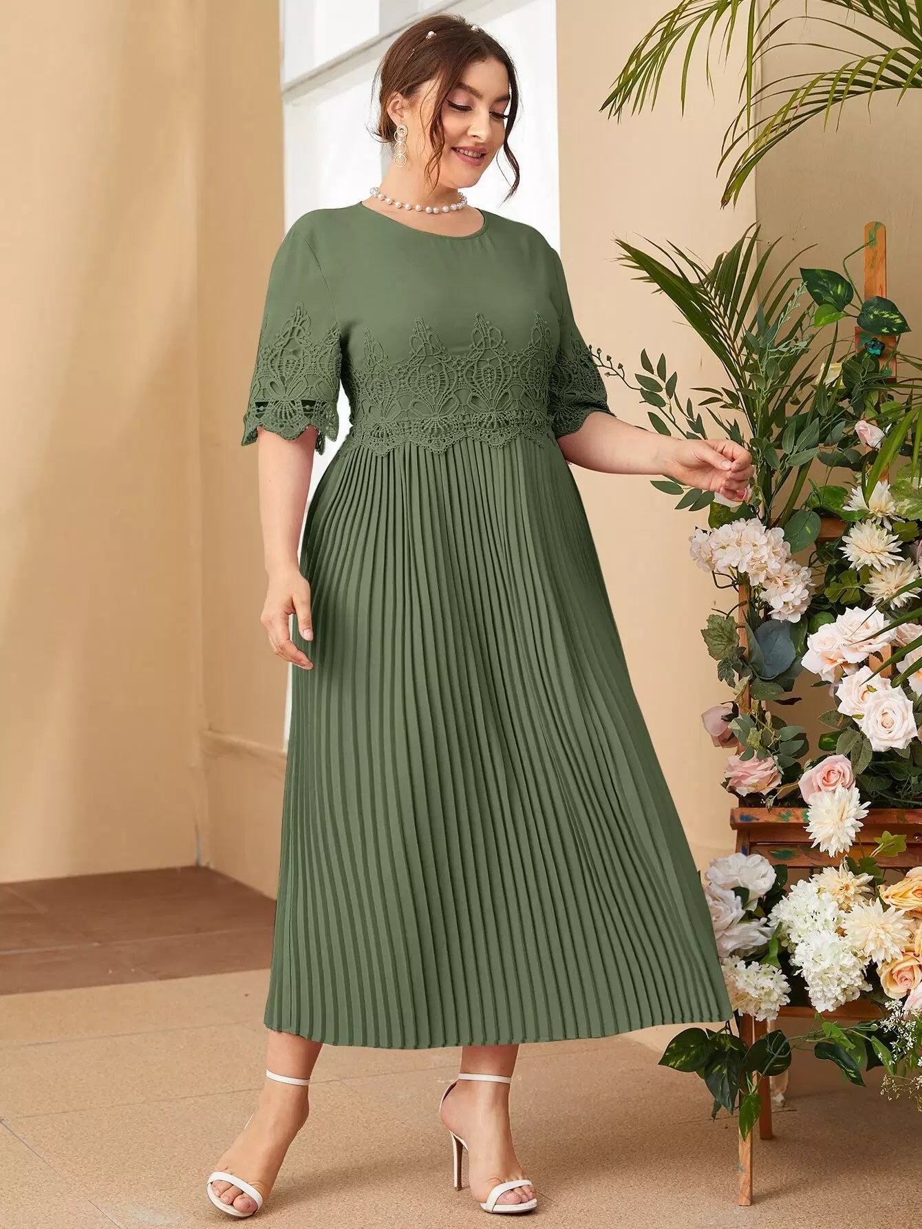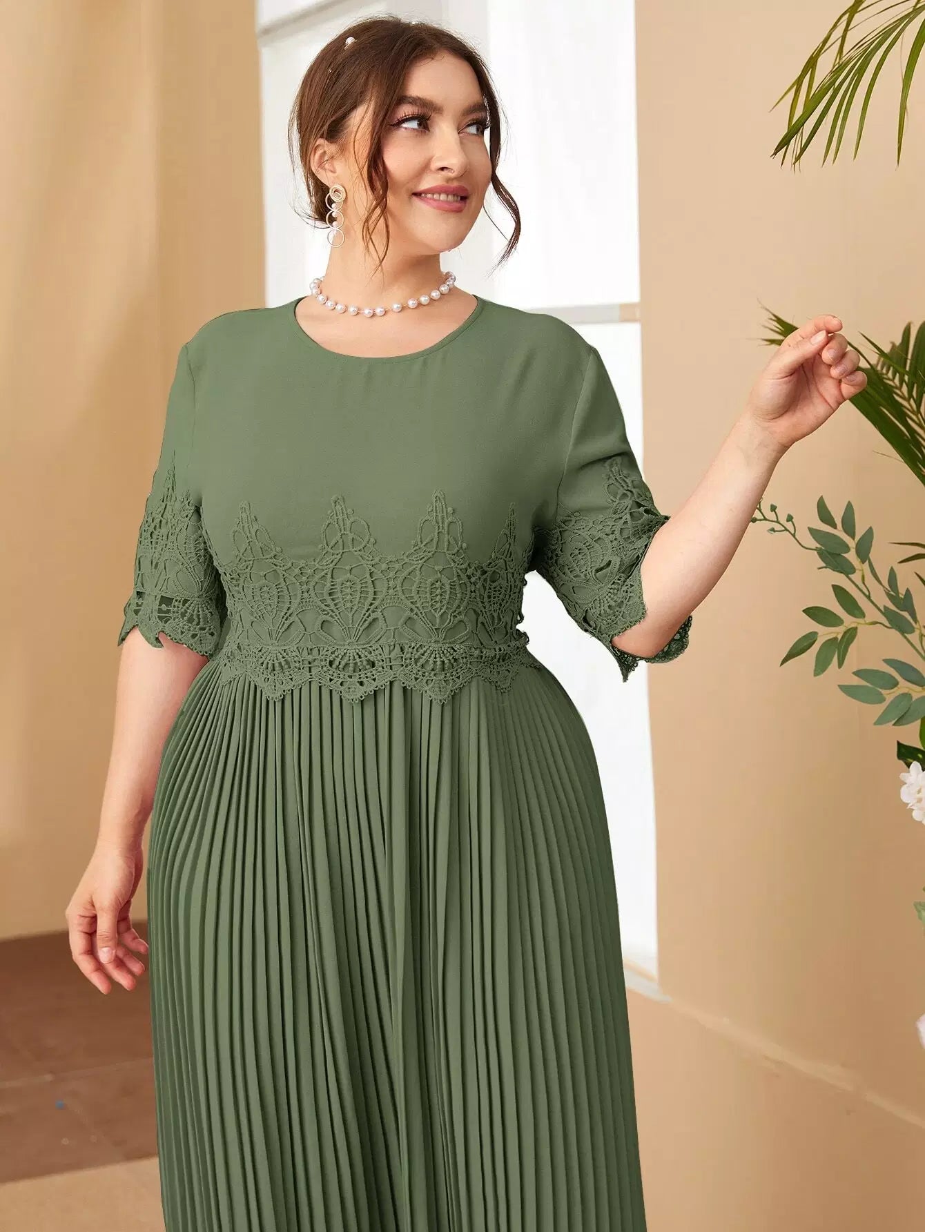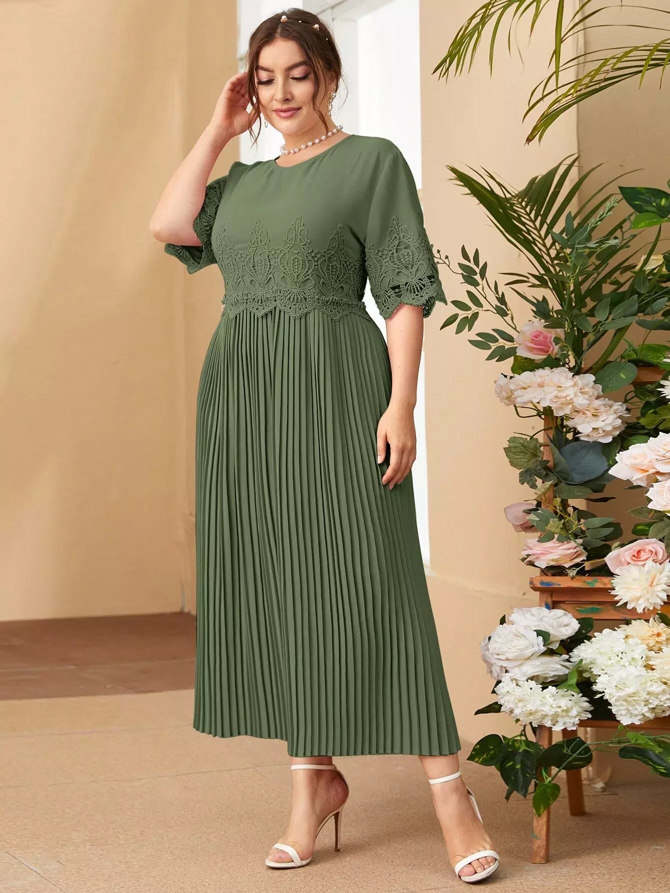 فستان بطيات من الدانتيل المخرّم المخرّم بلس