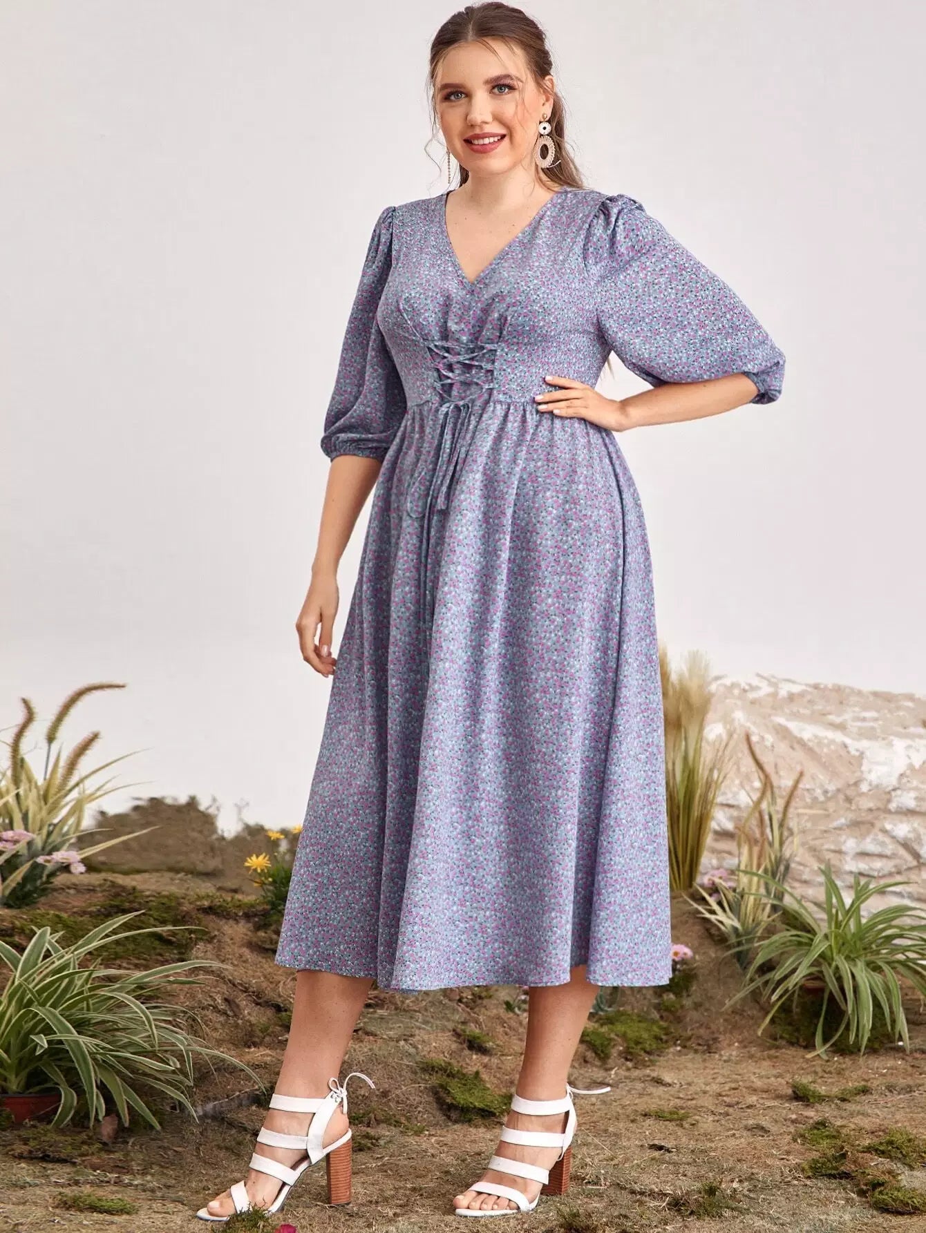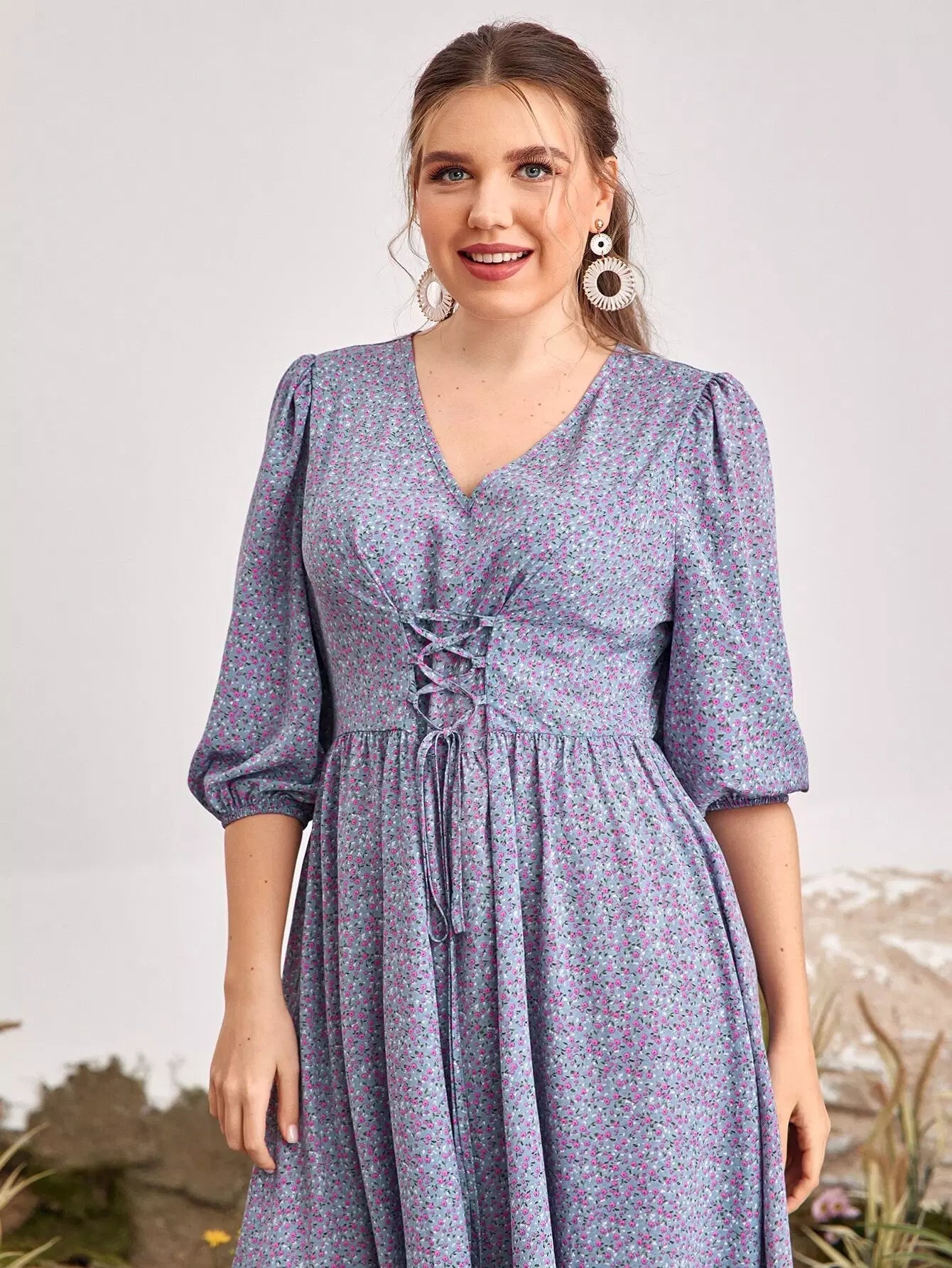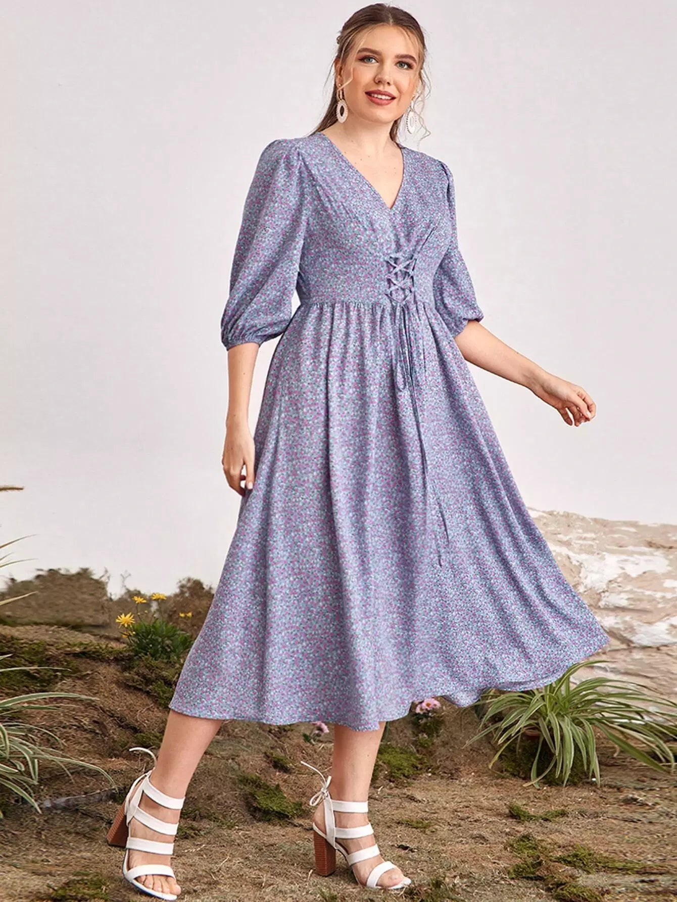فستان ديتسي مزين بأربطة أمامية من الأمام