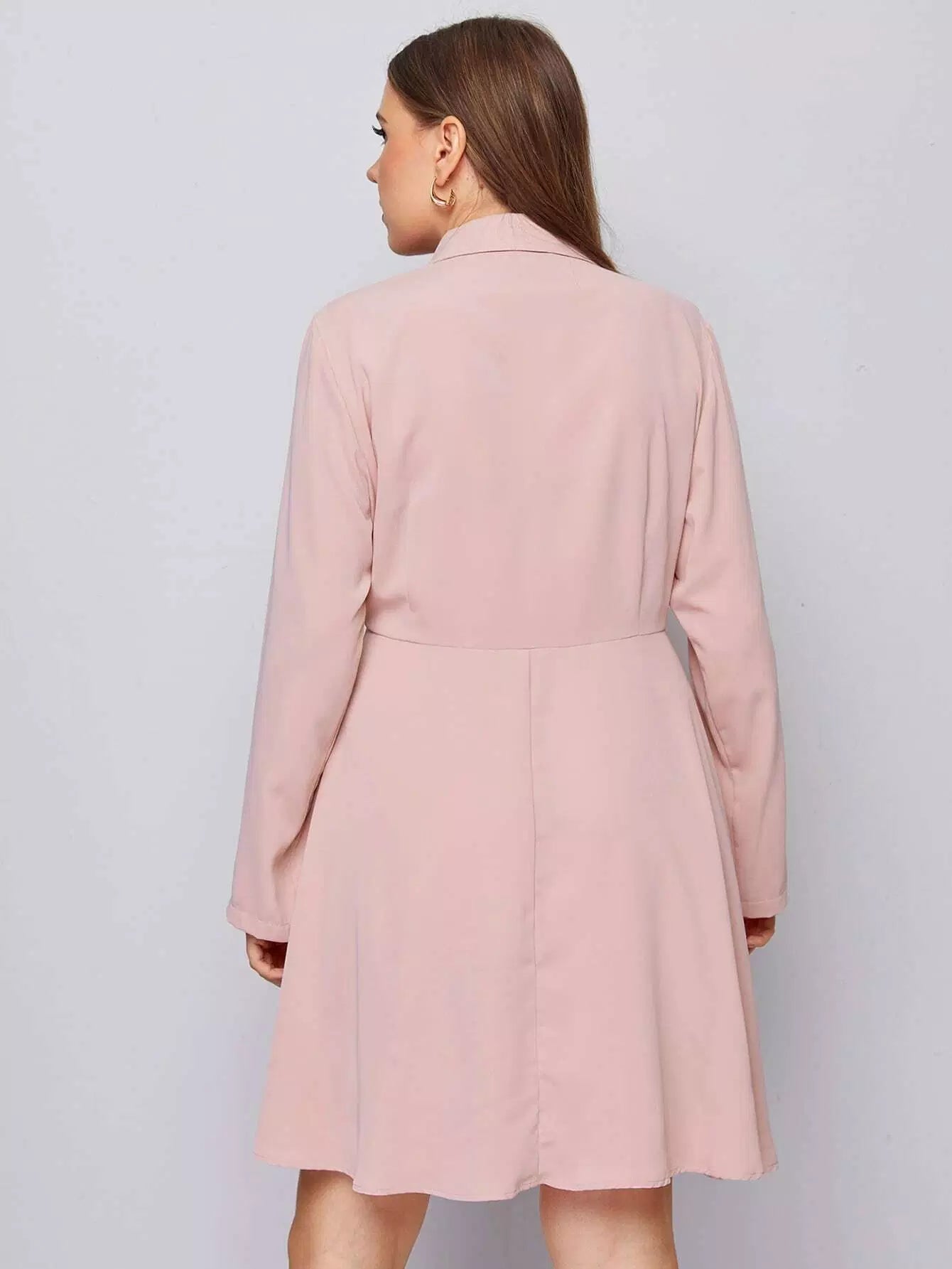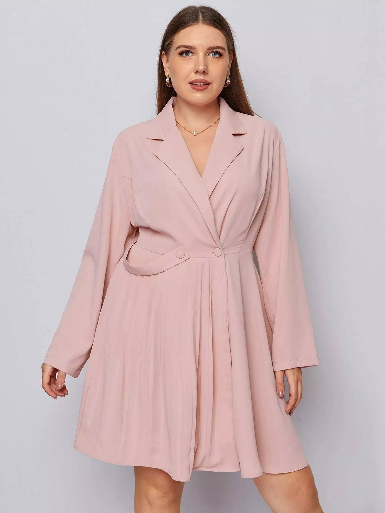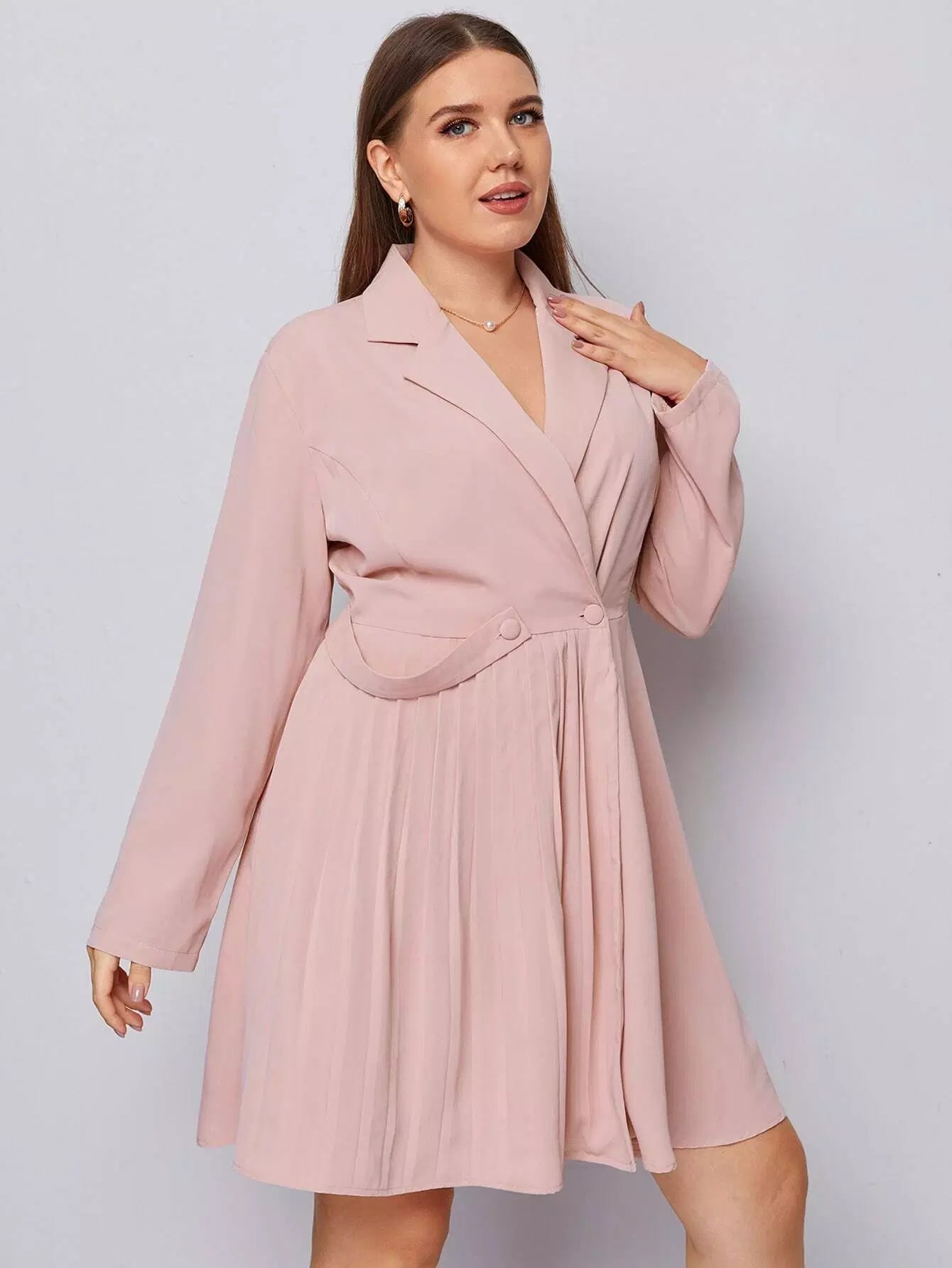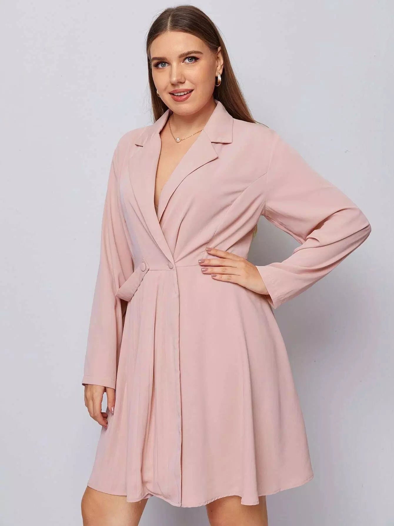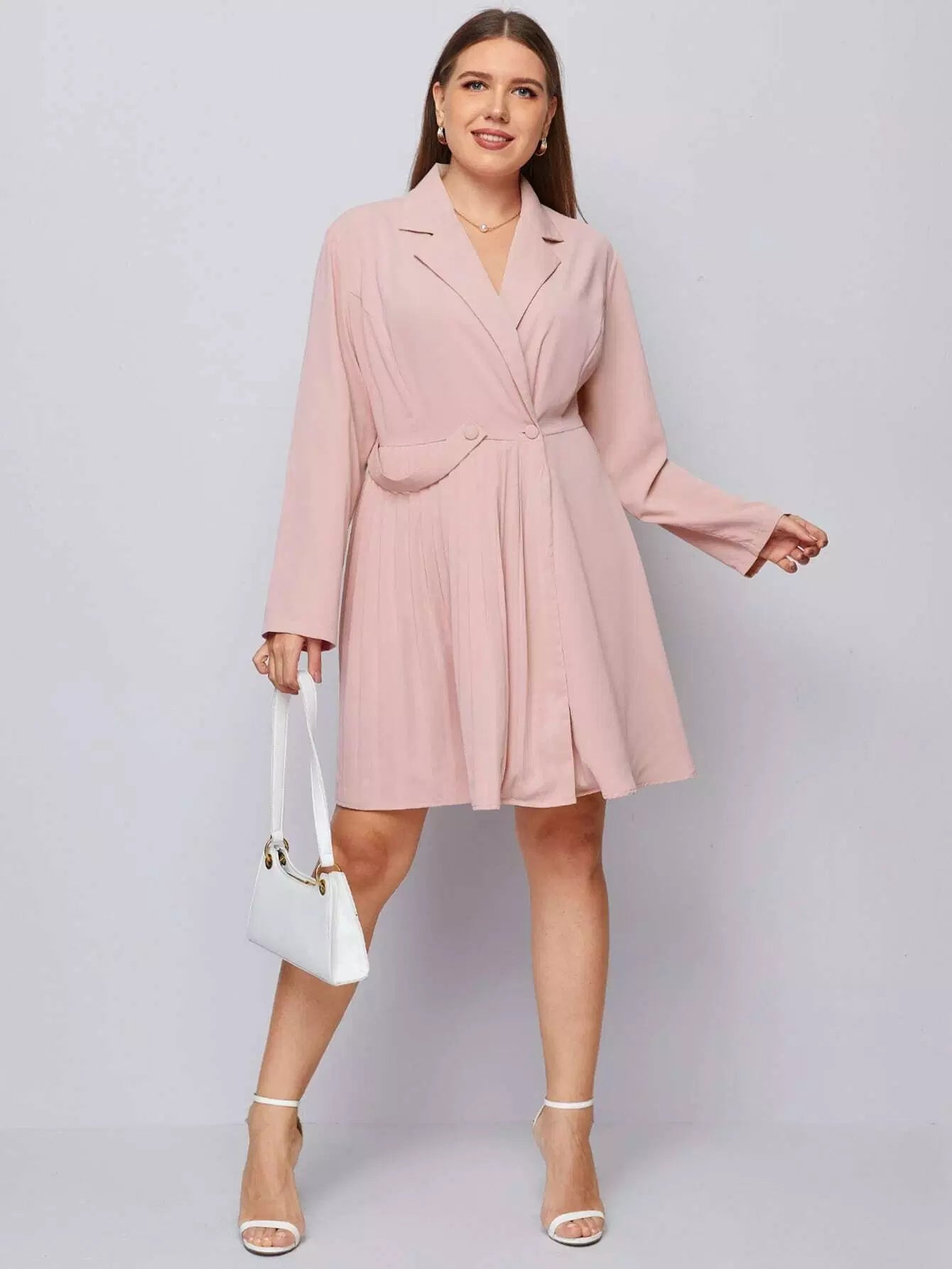 نحيف - مقاس كبير فستان بحاشية واسعة وياقة طية صدر السترة