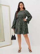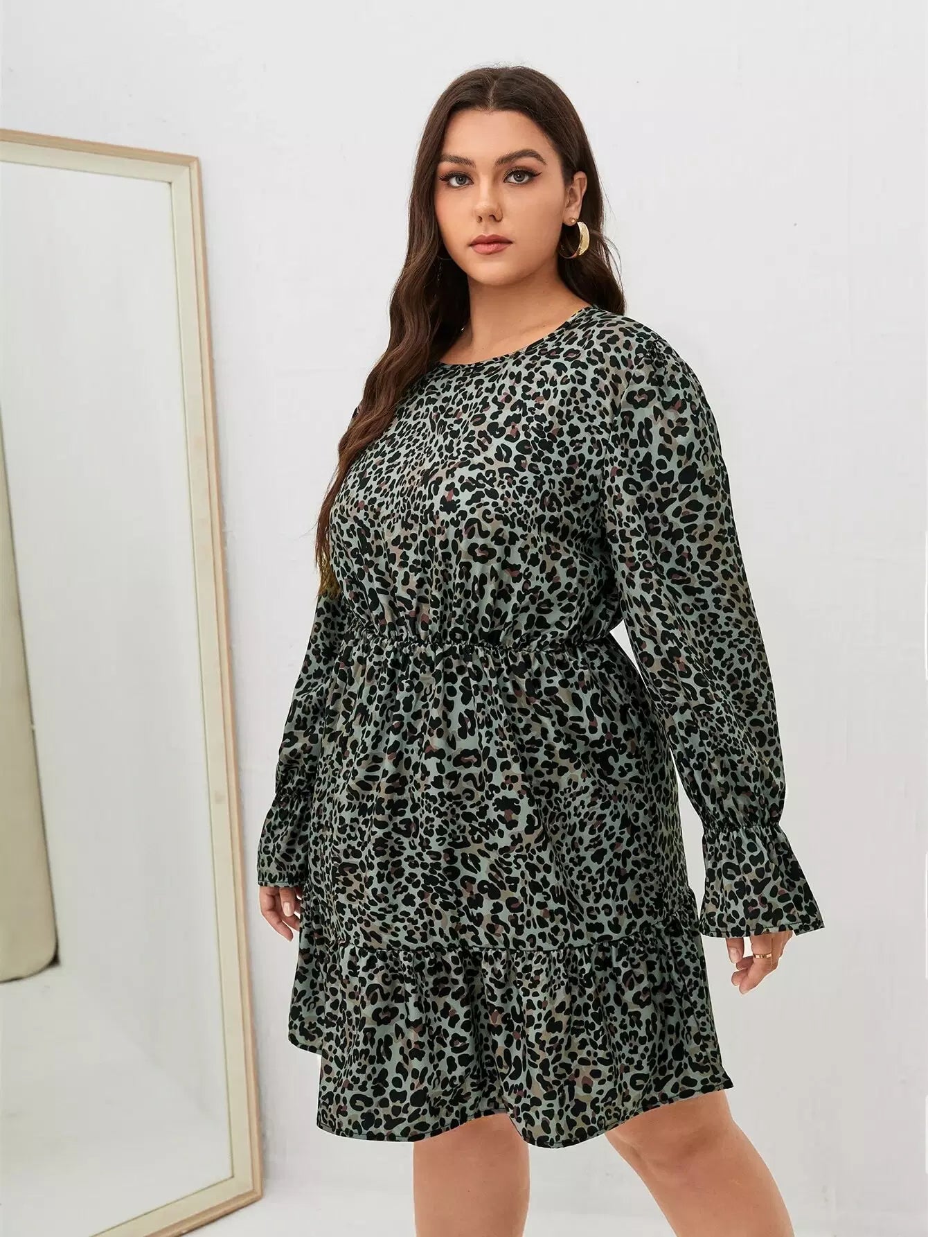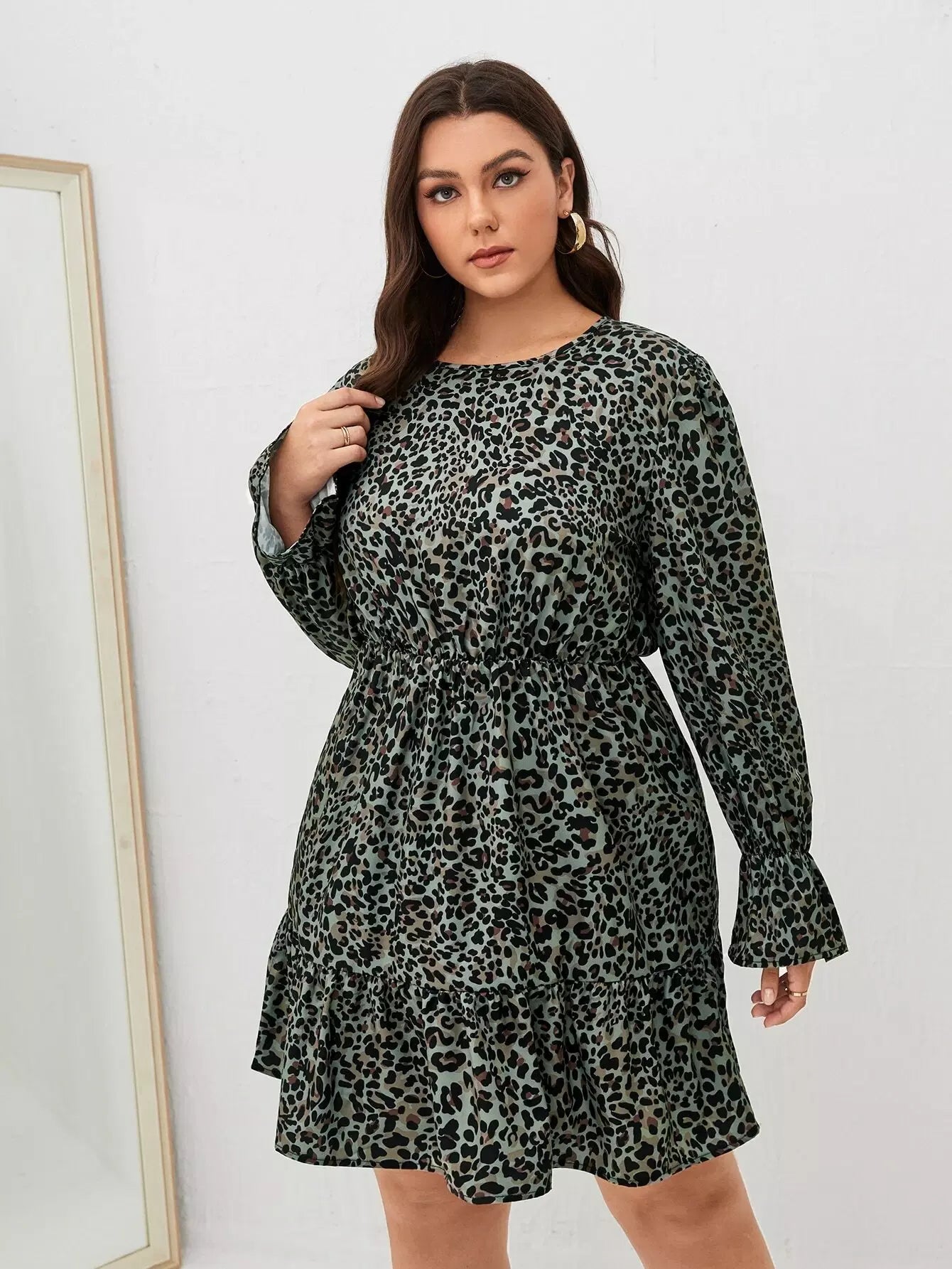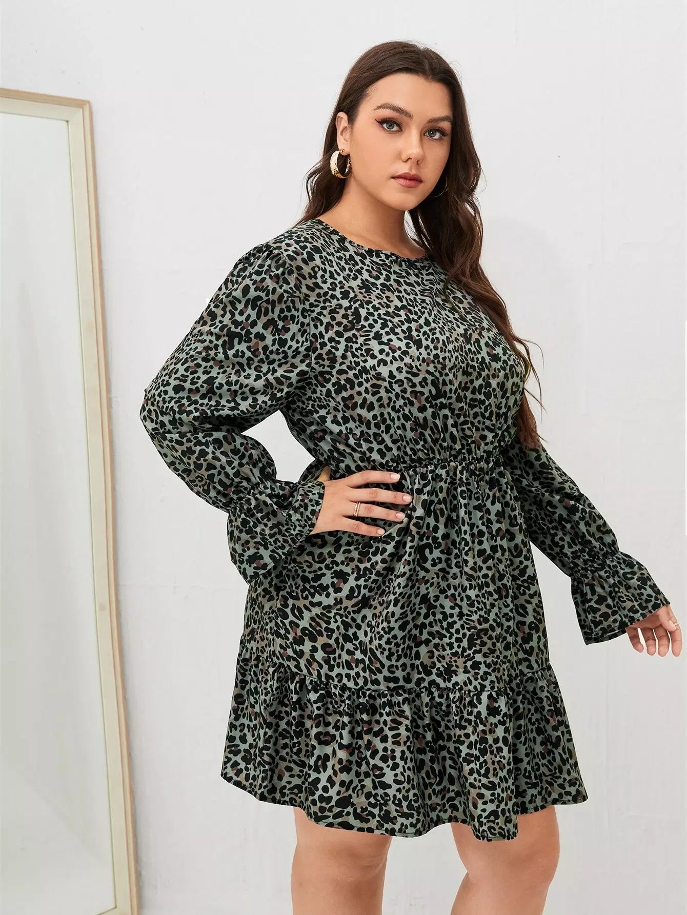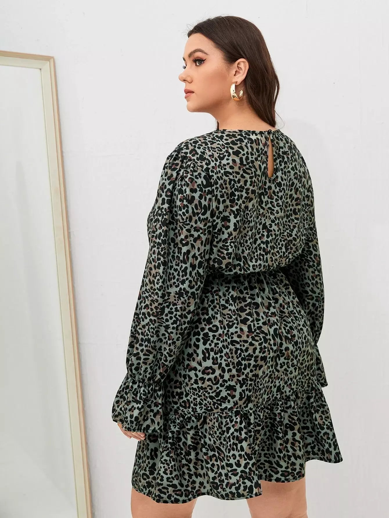 فستان بأكمام كشكش بأكمام كشكش زائد بنقشة الفهد