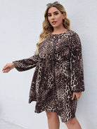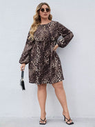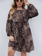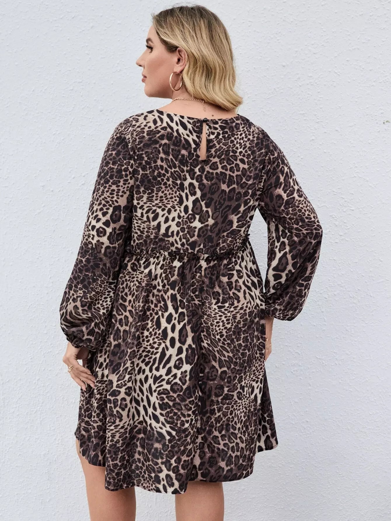 فستان بأكمام كشكش مطبوع بنقشة جلد الفهد بأكمام على شكل حرف A