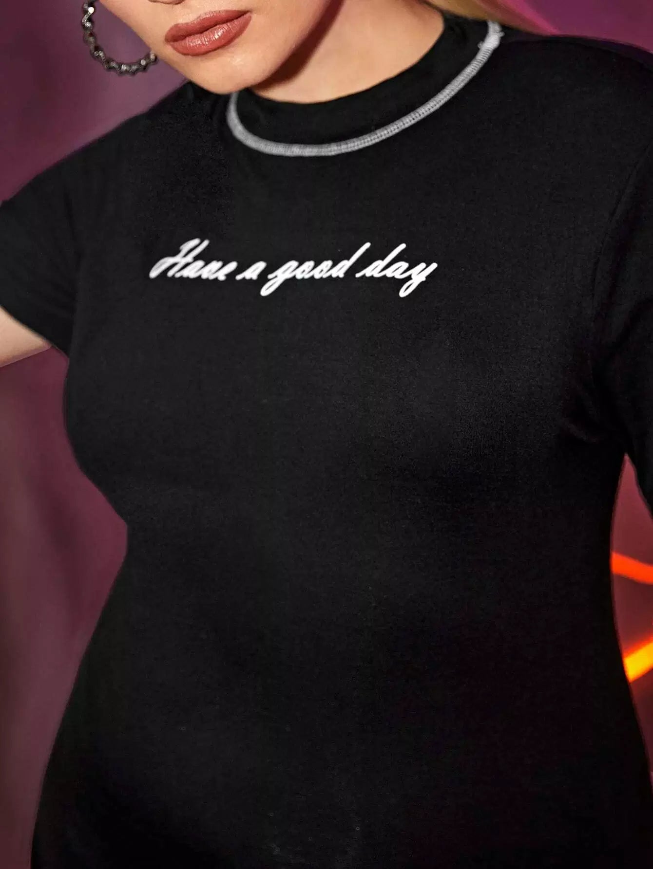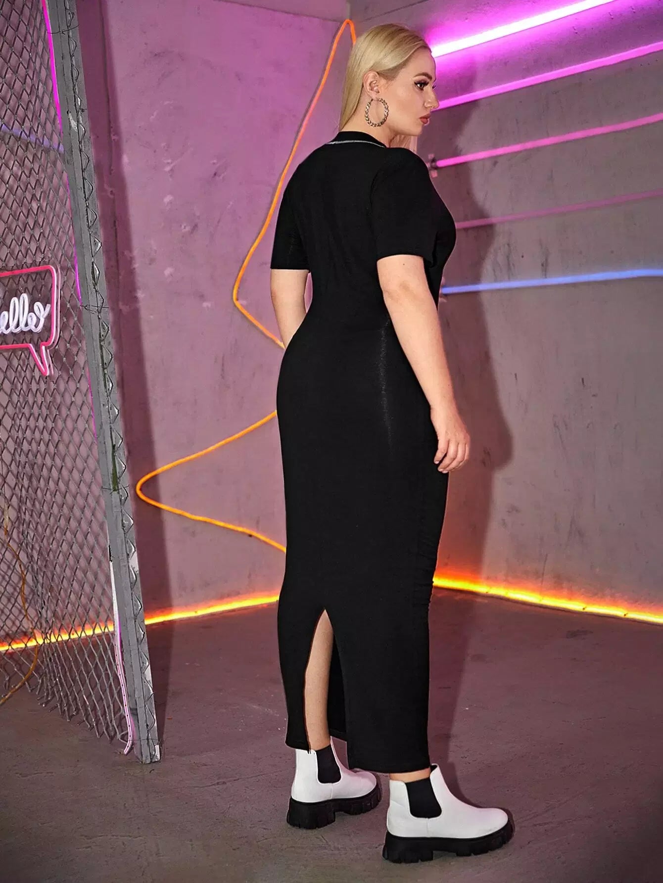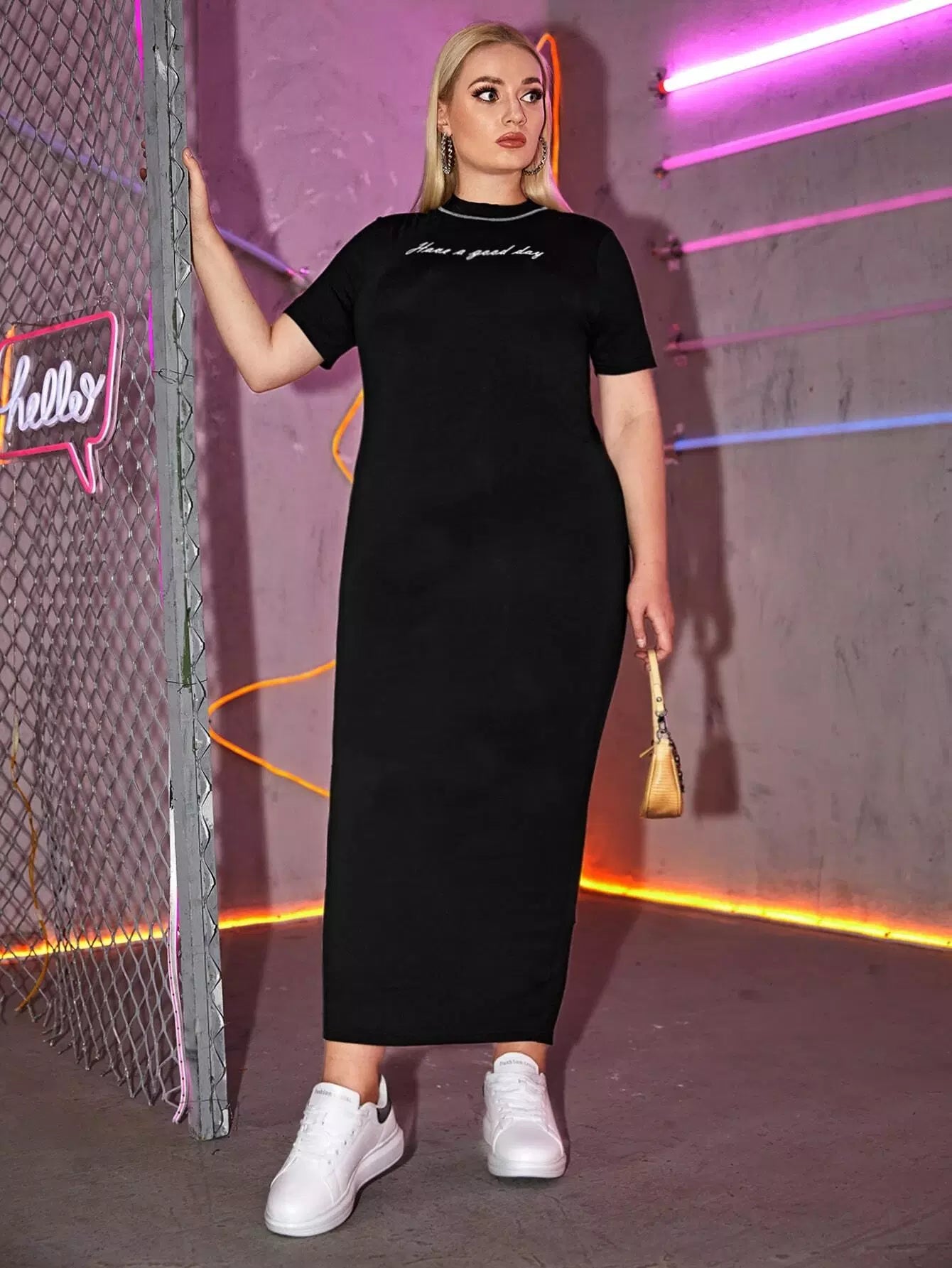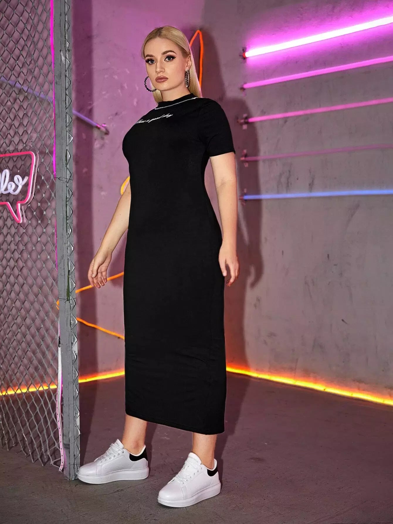 فستان مزين بحروف زائد برسومات جرافيك بلون مغاير من الخلف