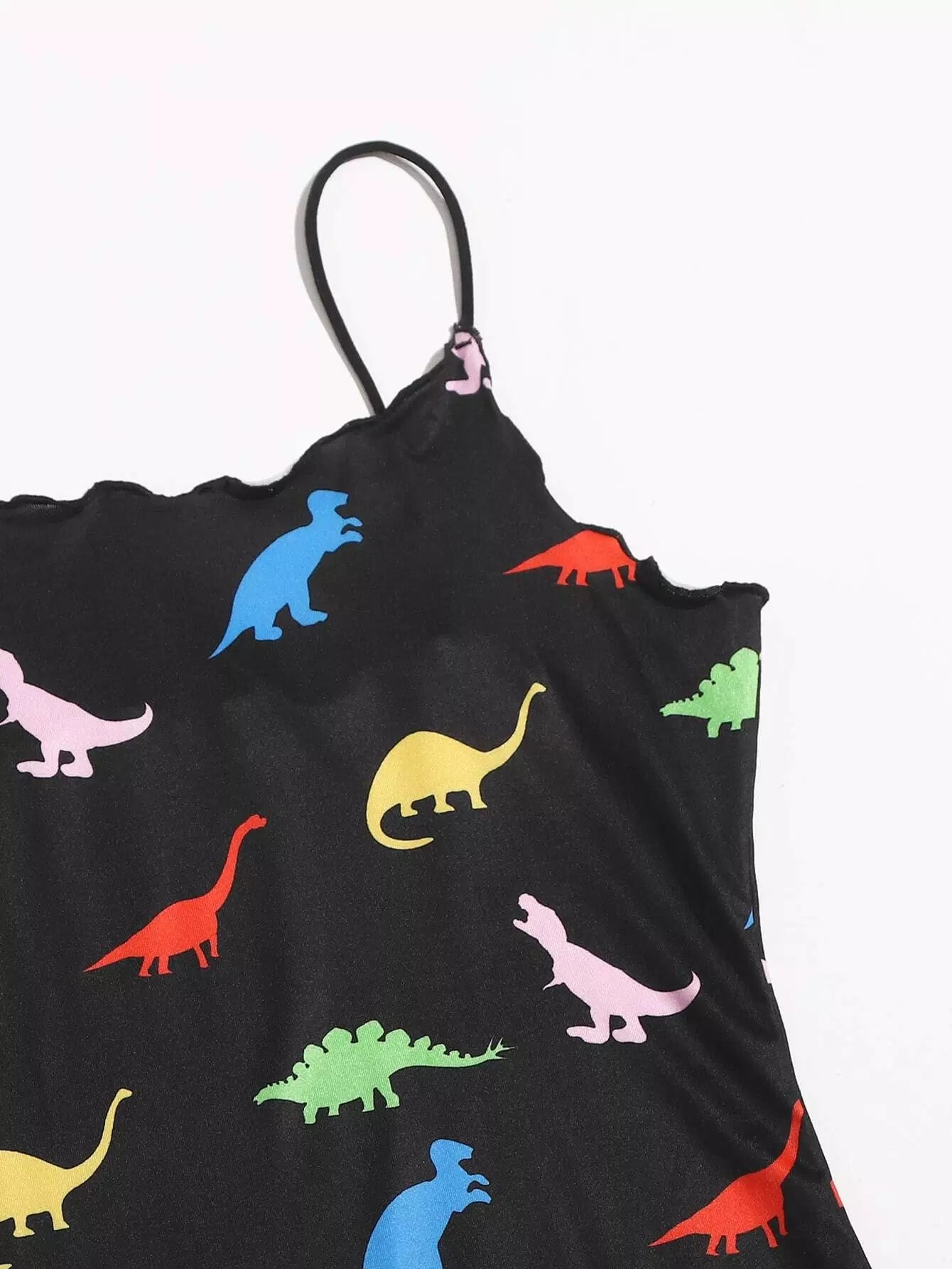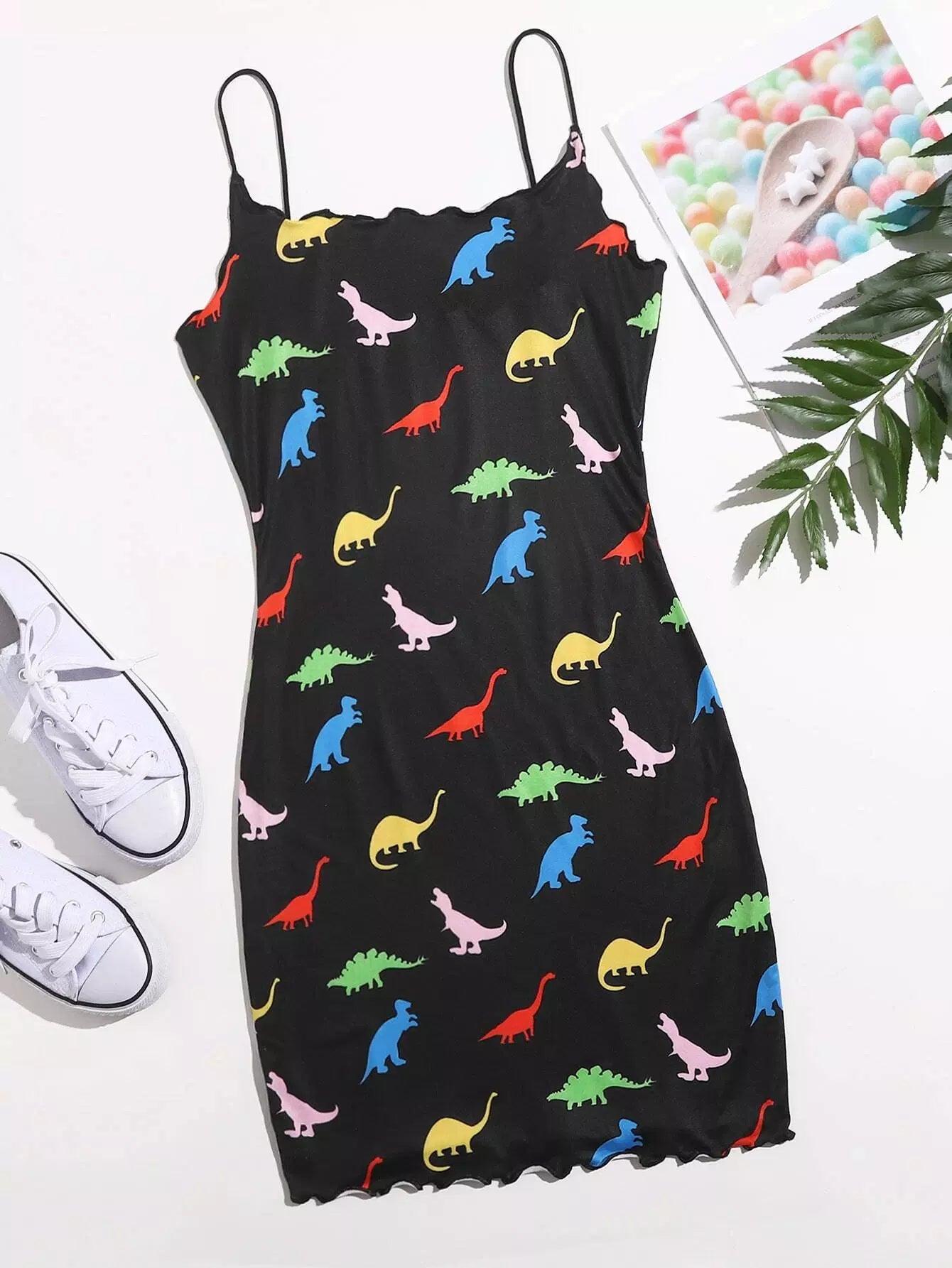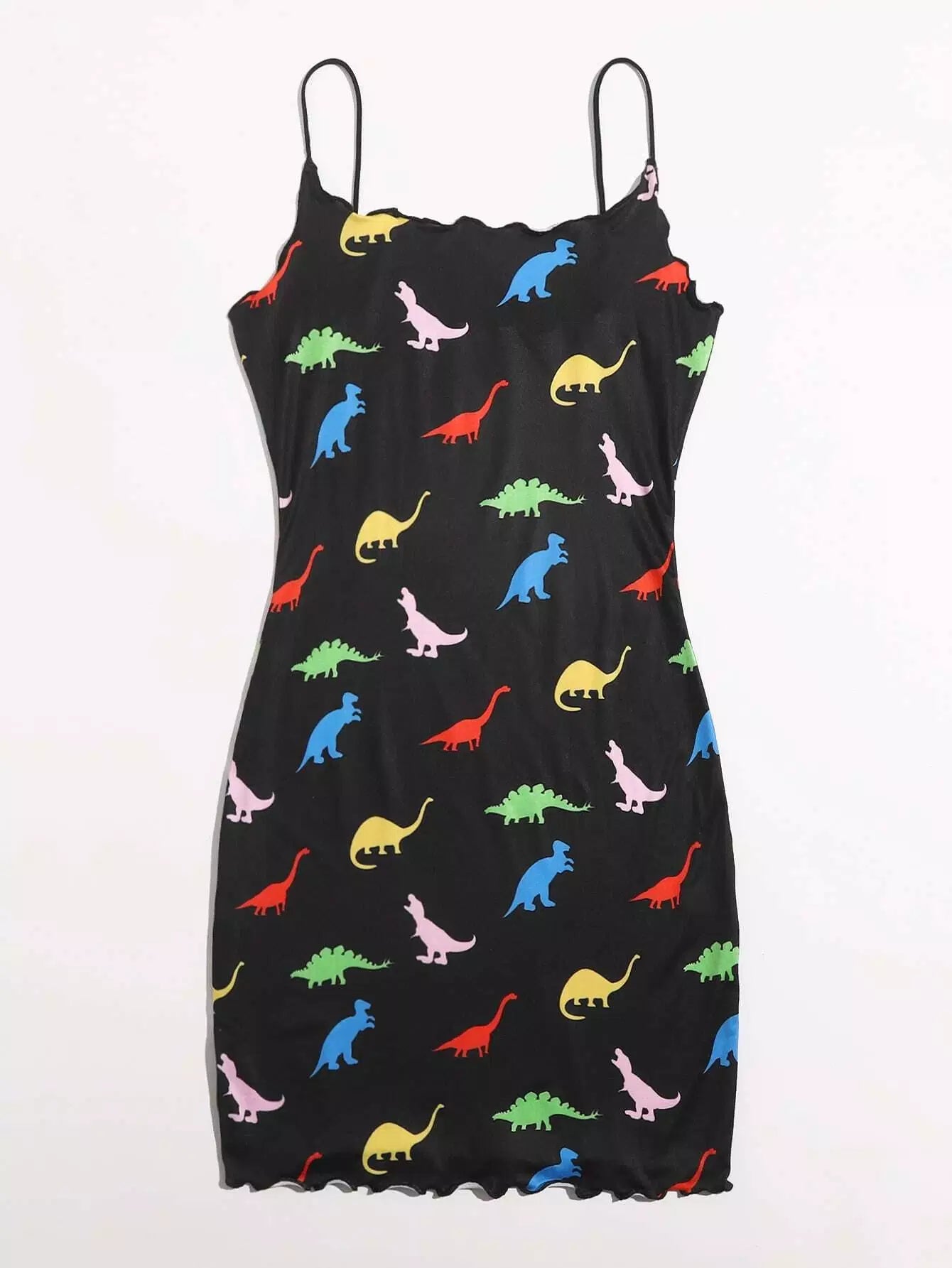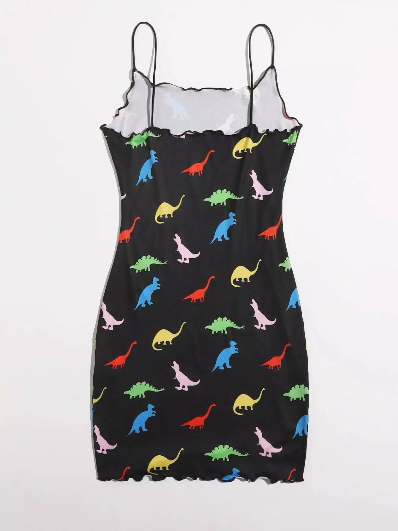 فستان بوديكون مطبوع بطبعة ديناصور بحافة الخس الزائد
