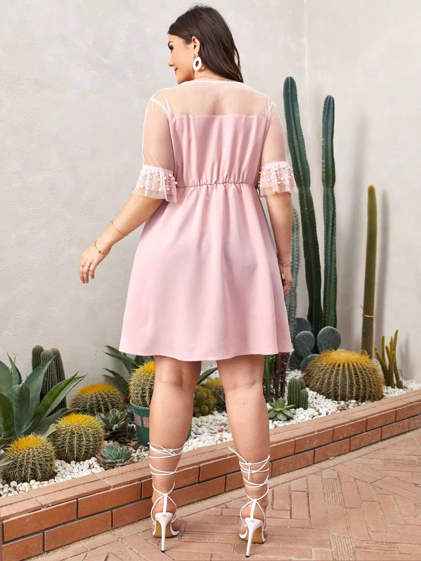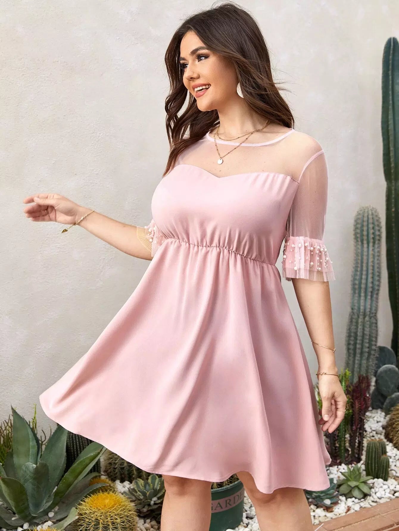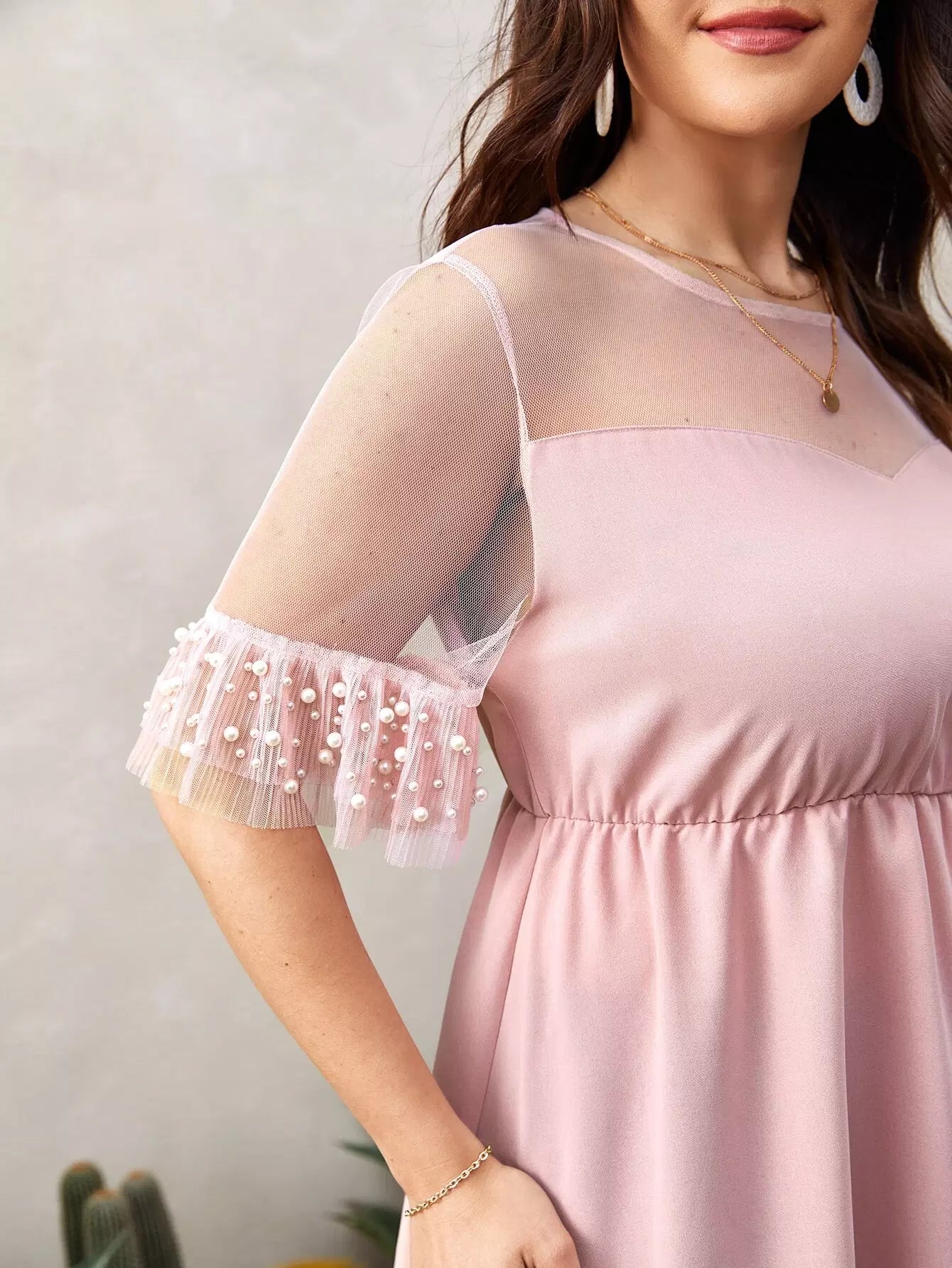 فستان على شكل لؤلؤة بلس شبكي على شكل حرف A