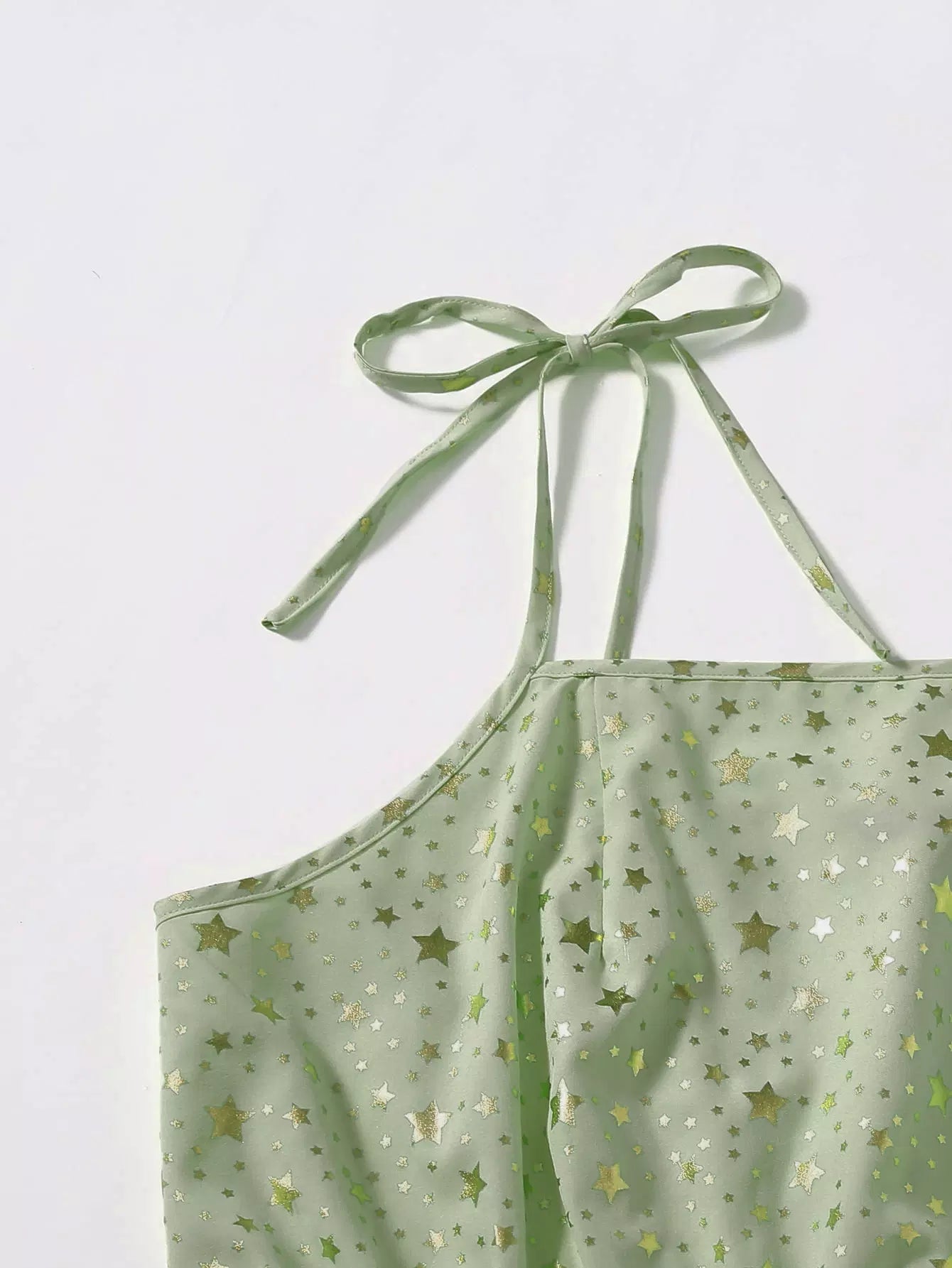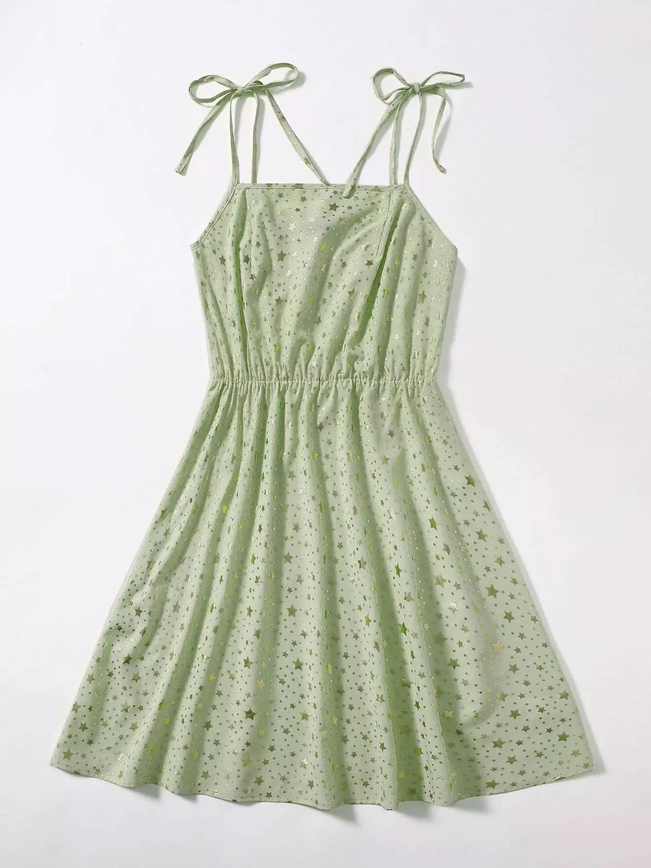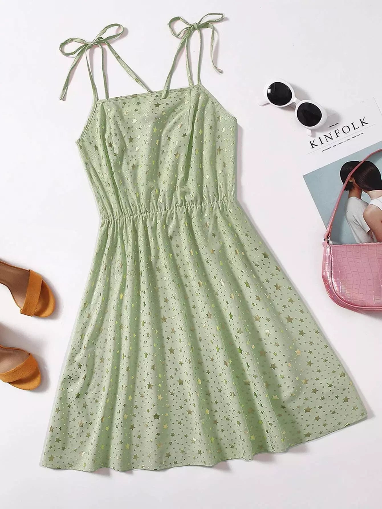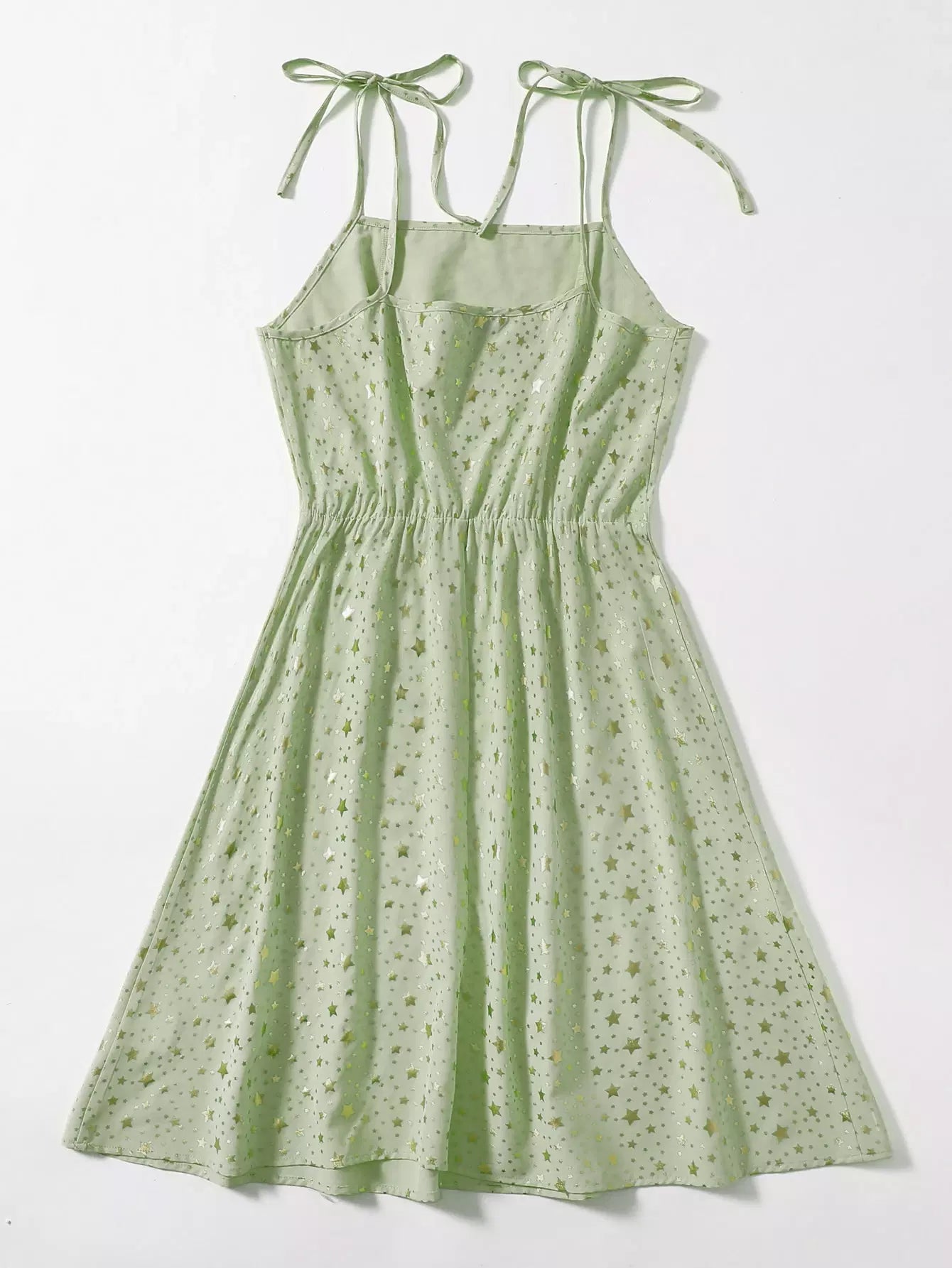 فستان كامي بنقشة نجوم ونقاط ذهبي معدني زائد