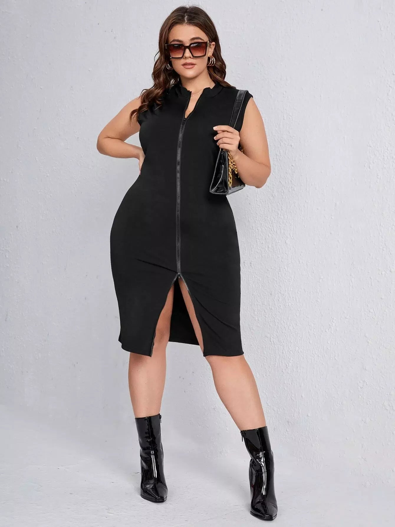 فستان برقبة زائد برقبة جورب بسحاب من الأمام