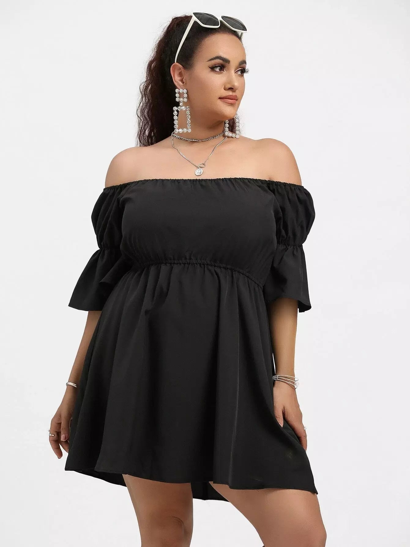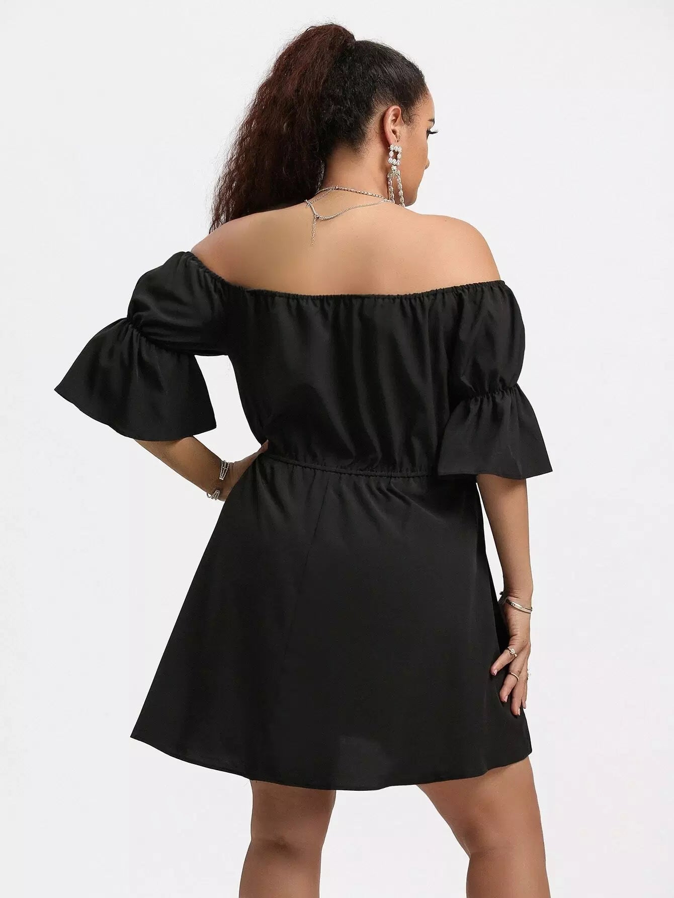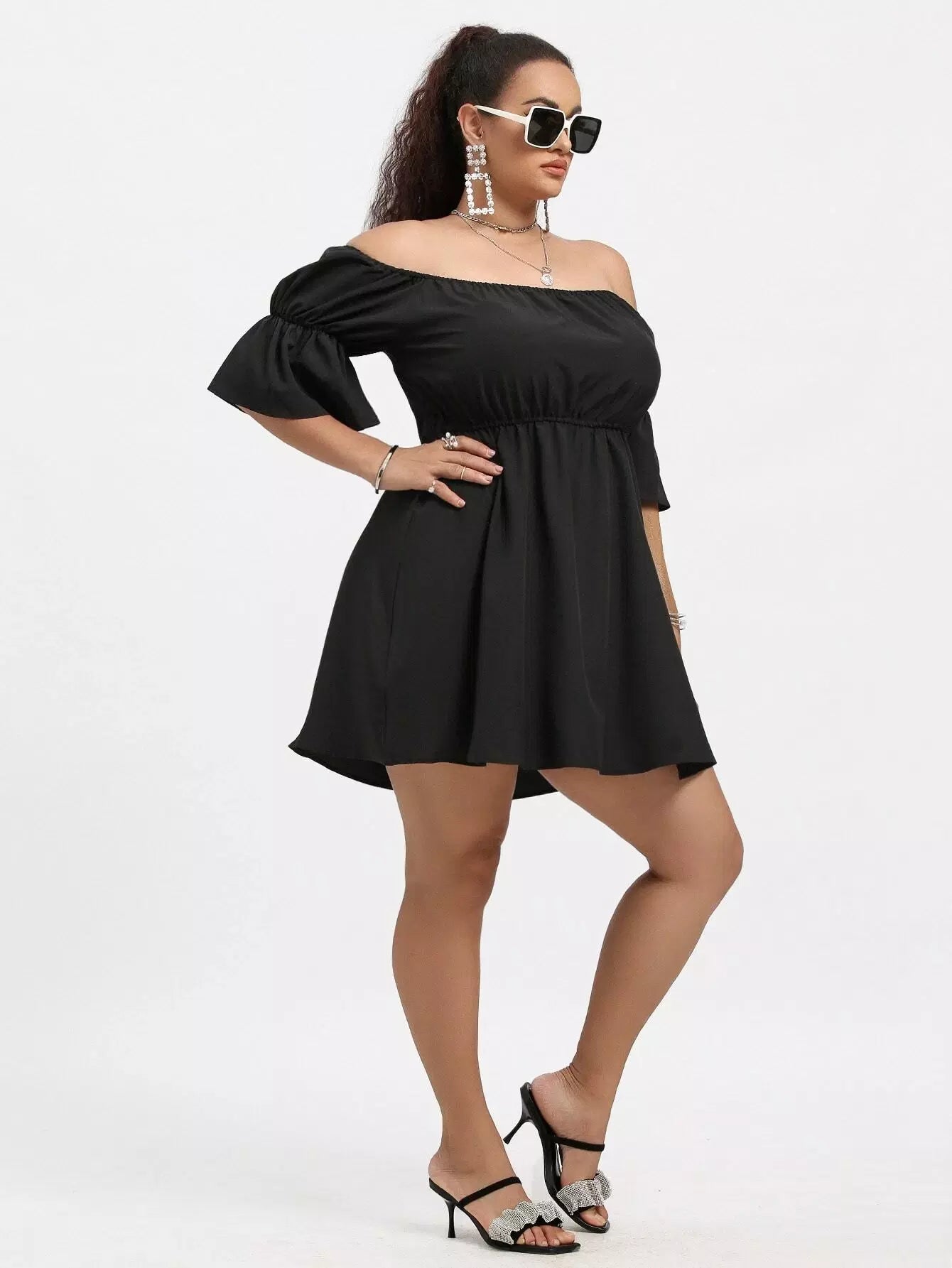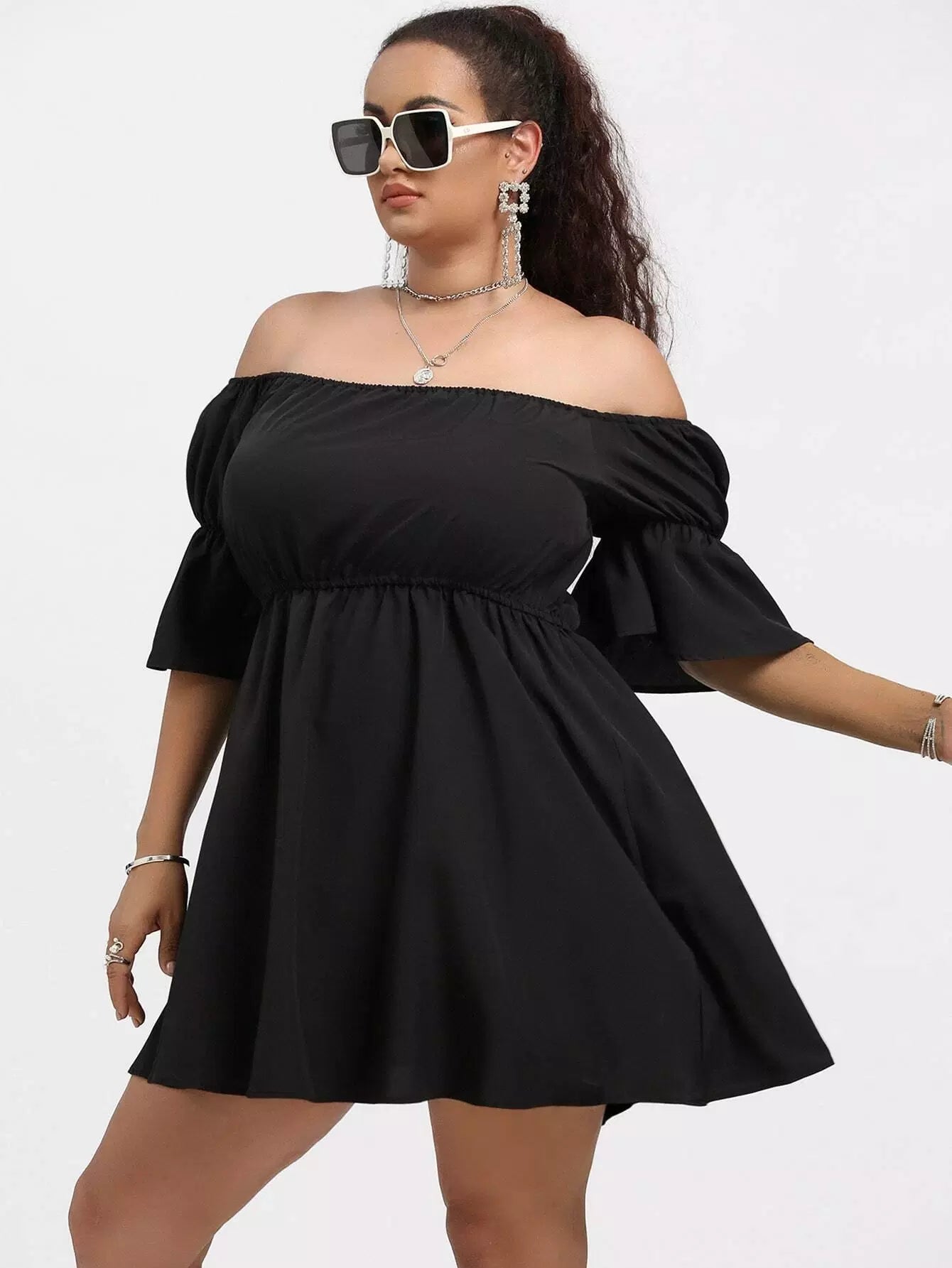 فستان بأكمام مكشوف الأكتاف مكشوف الأكمام