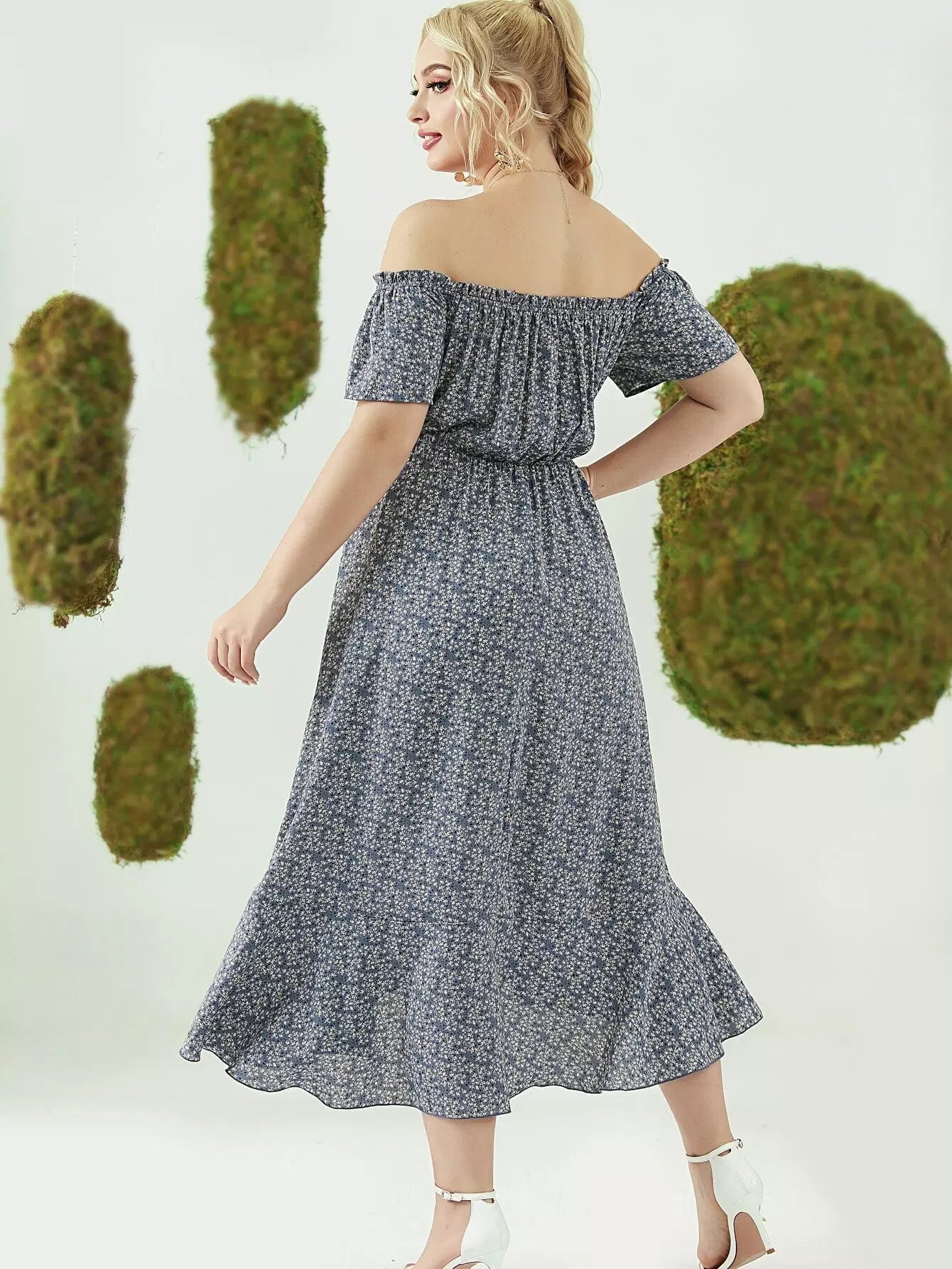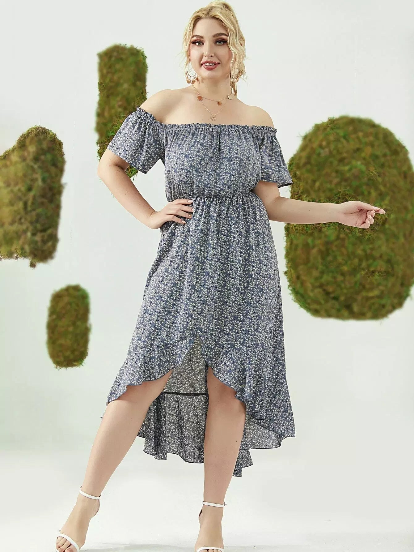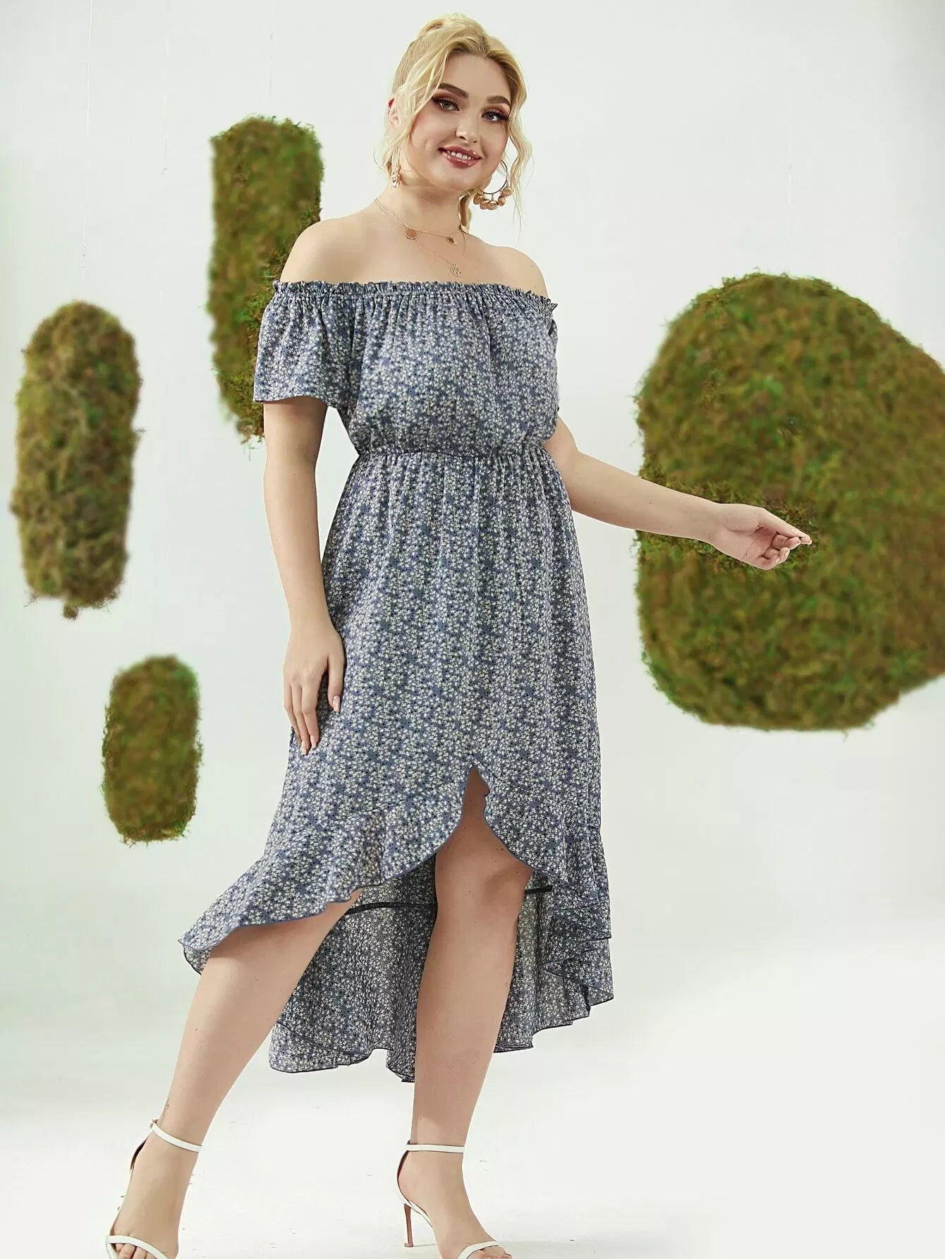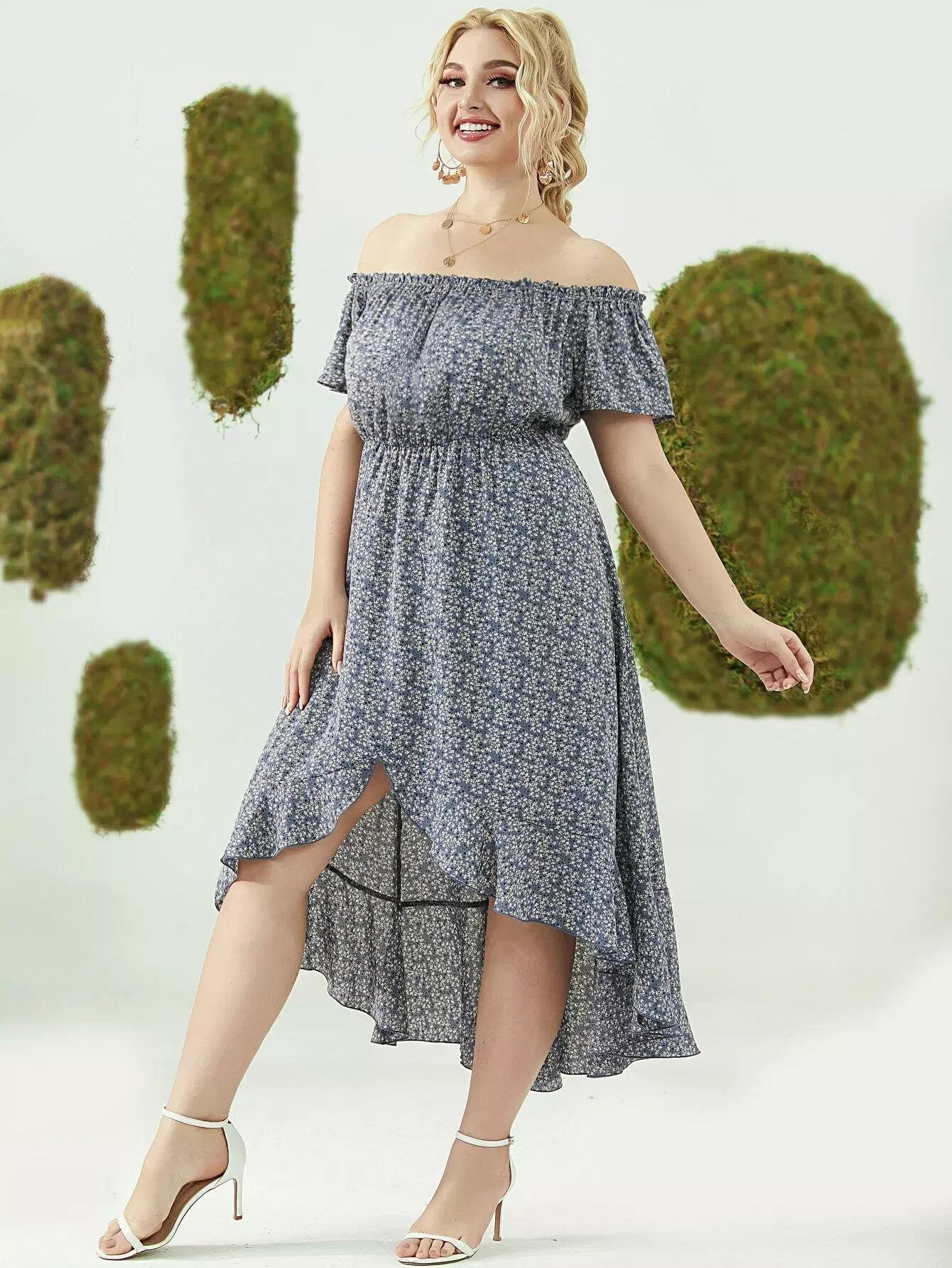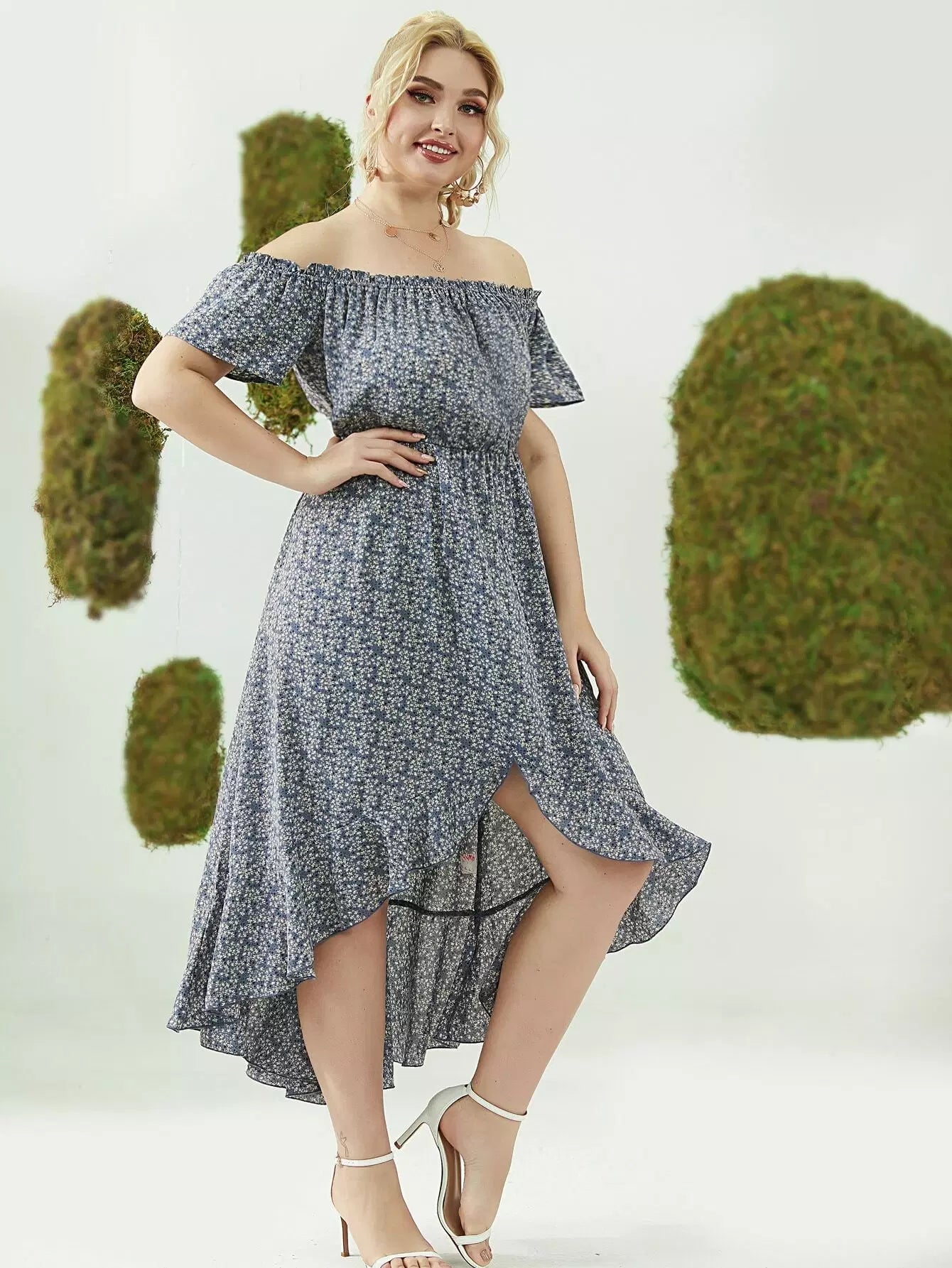 فستان بحافة عالية منخفضة وضيقة من دون أكتاف زائد فستان ديتسي فلورال