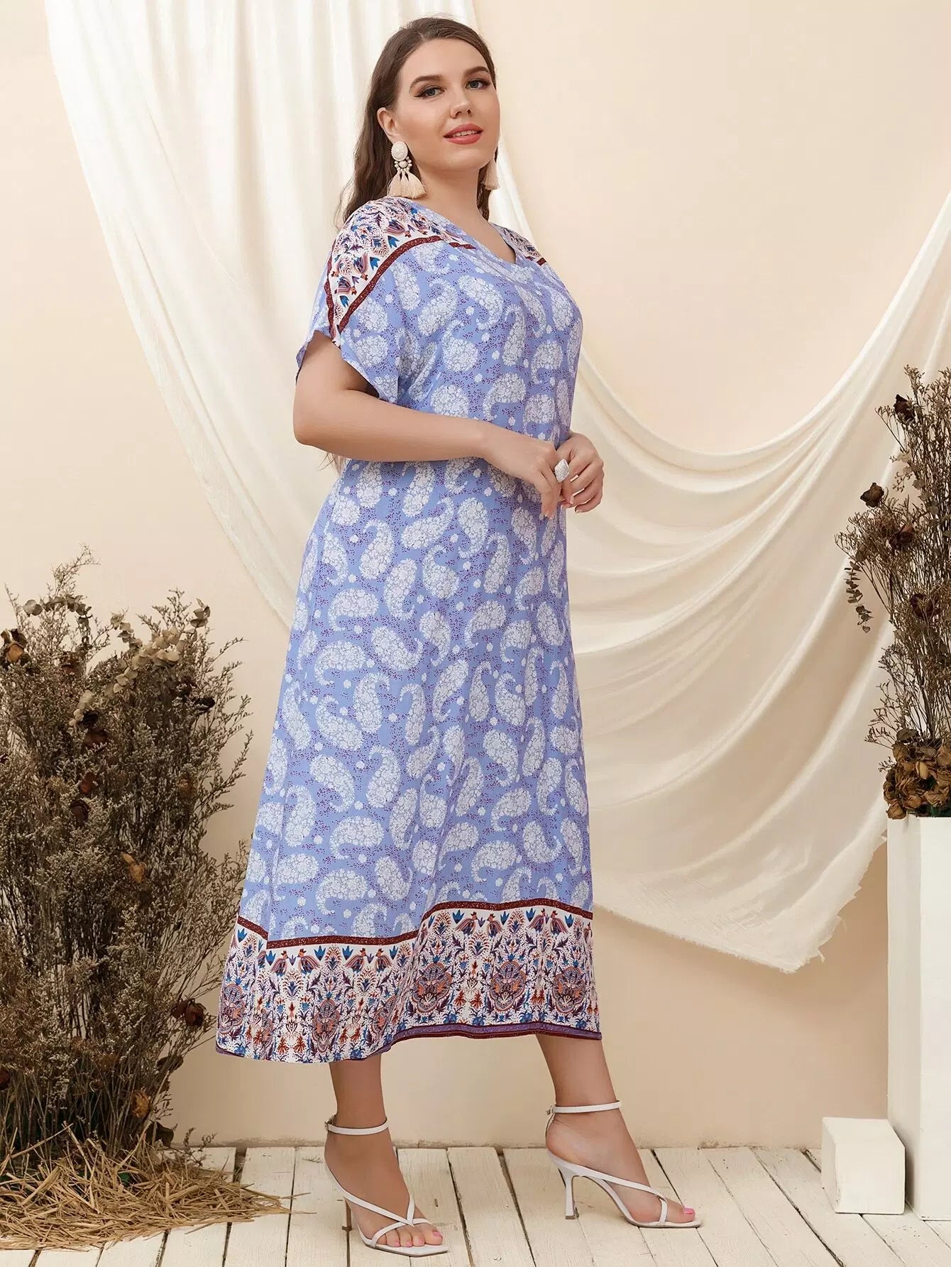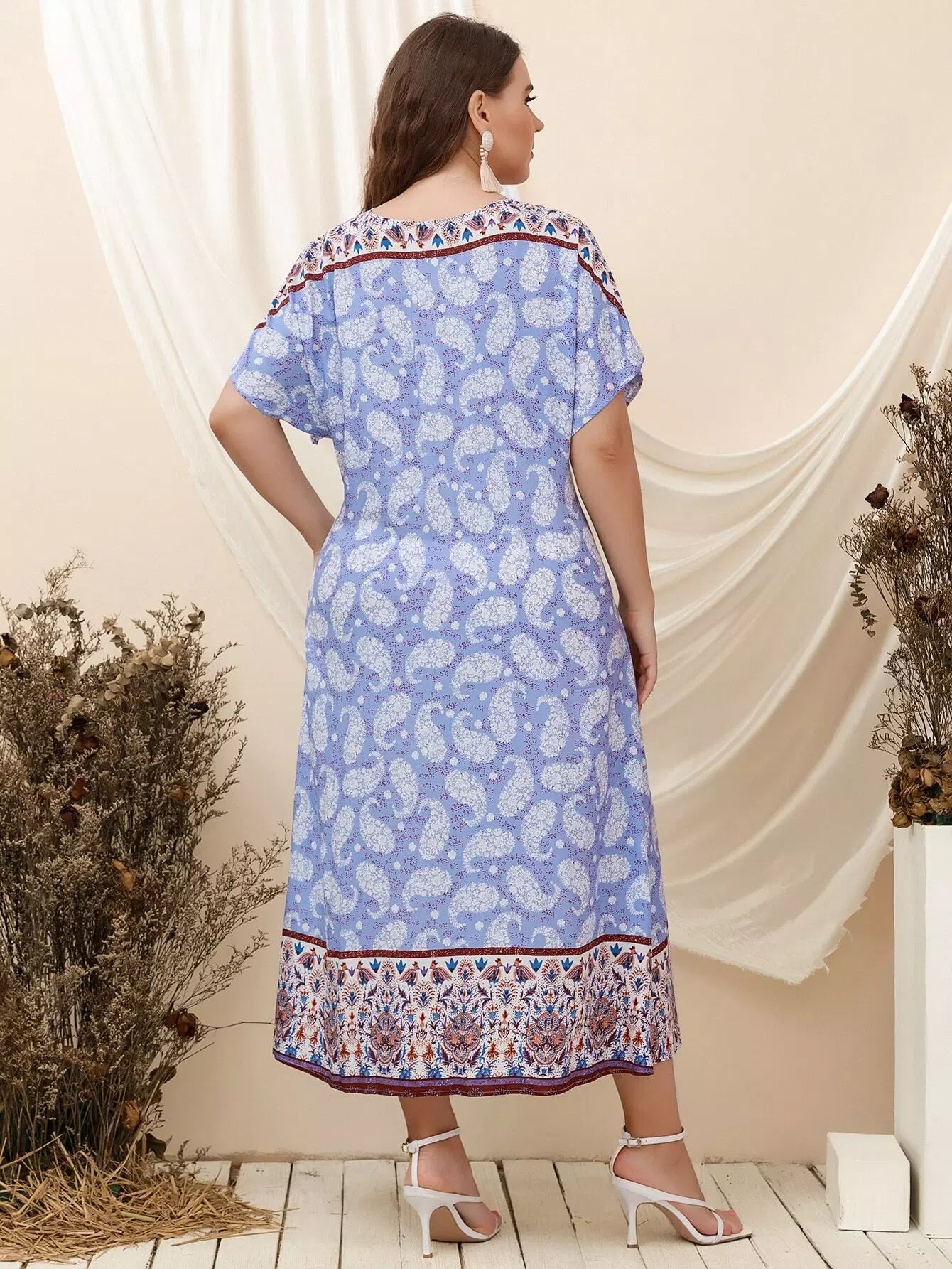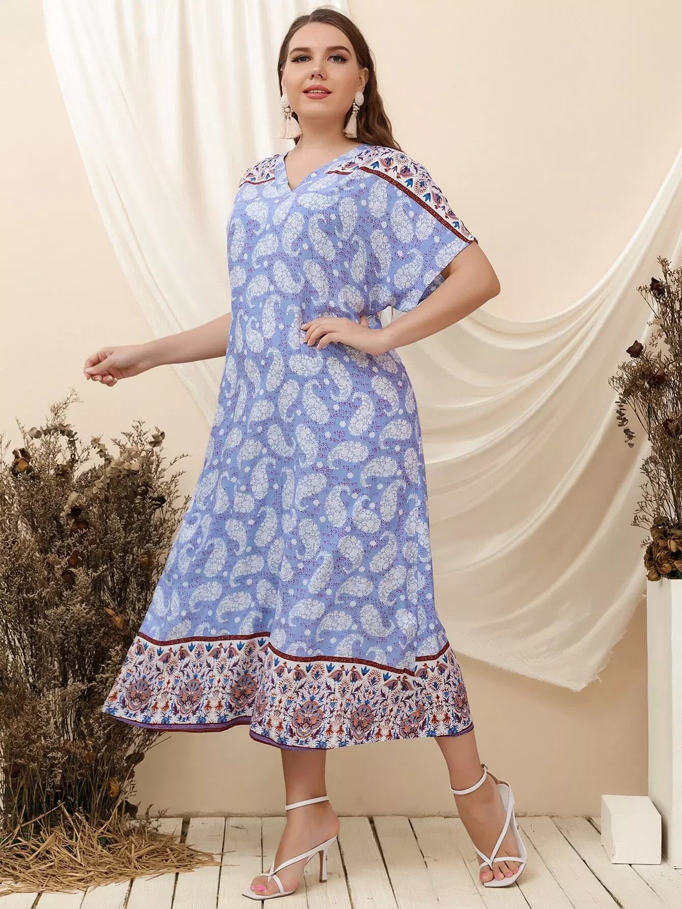 فستان بأكمام بطبعة بيزلي زائد بأكمام باتوينغ