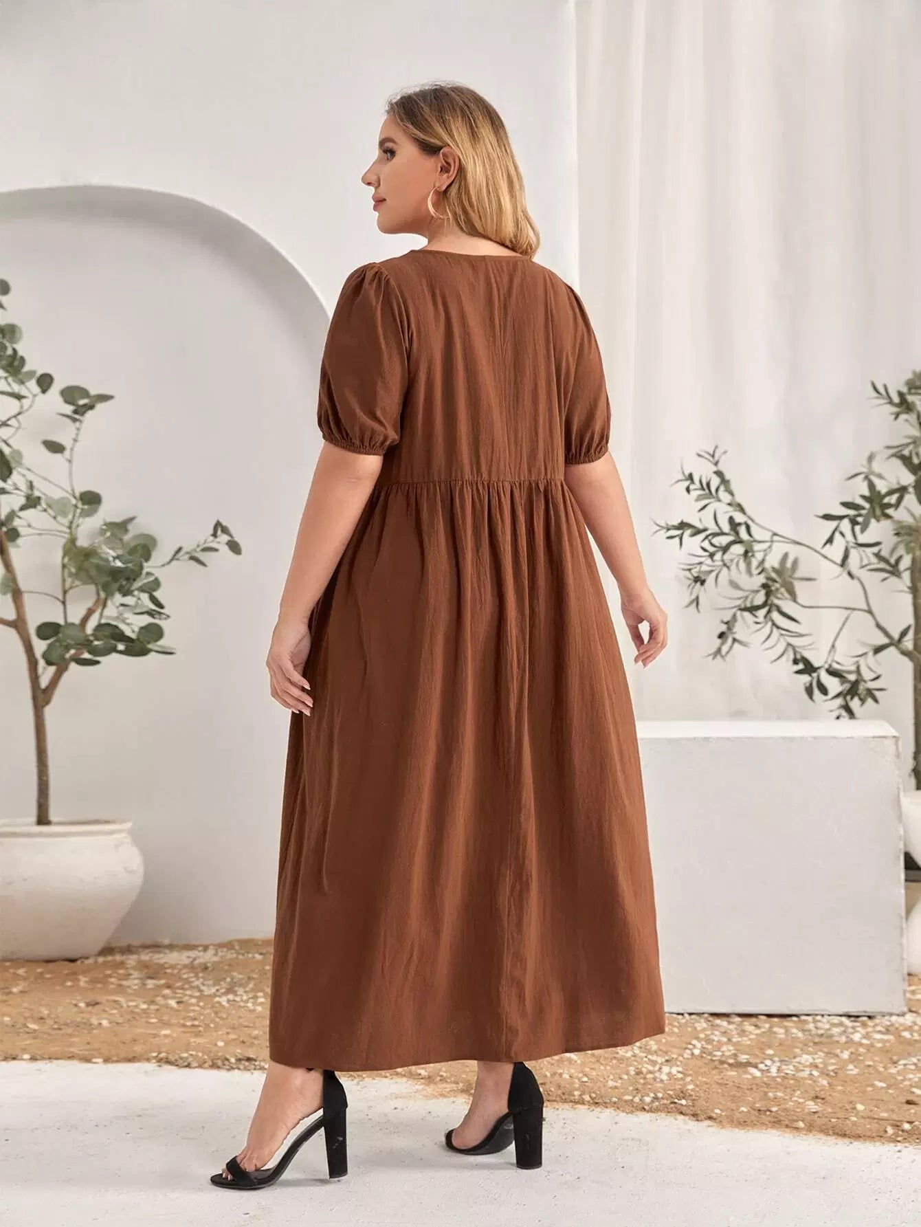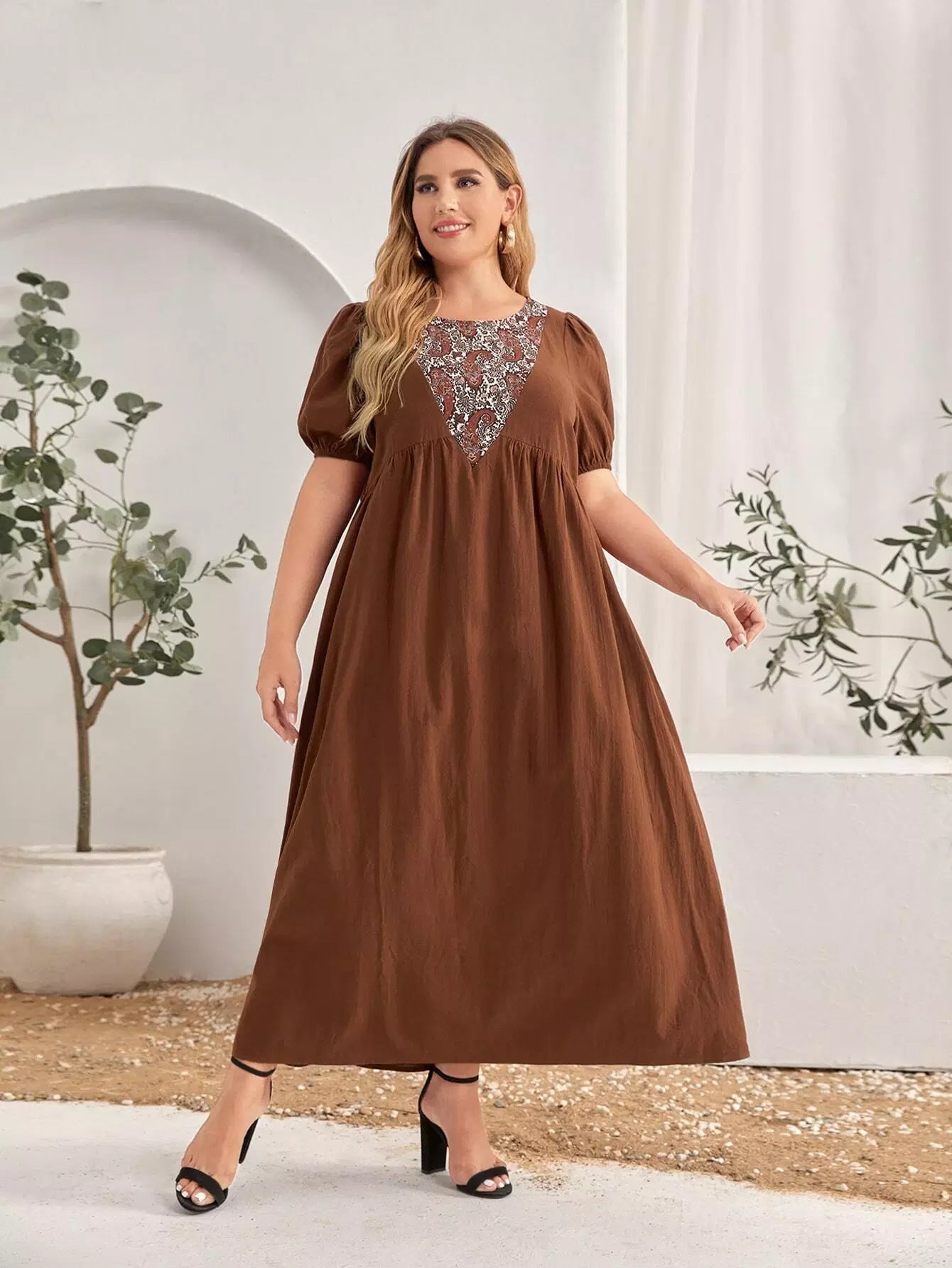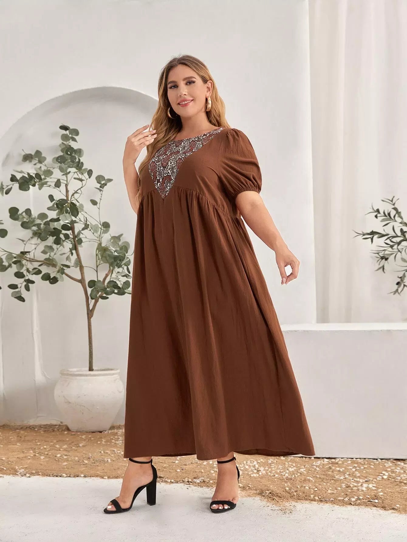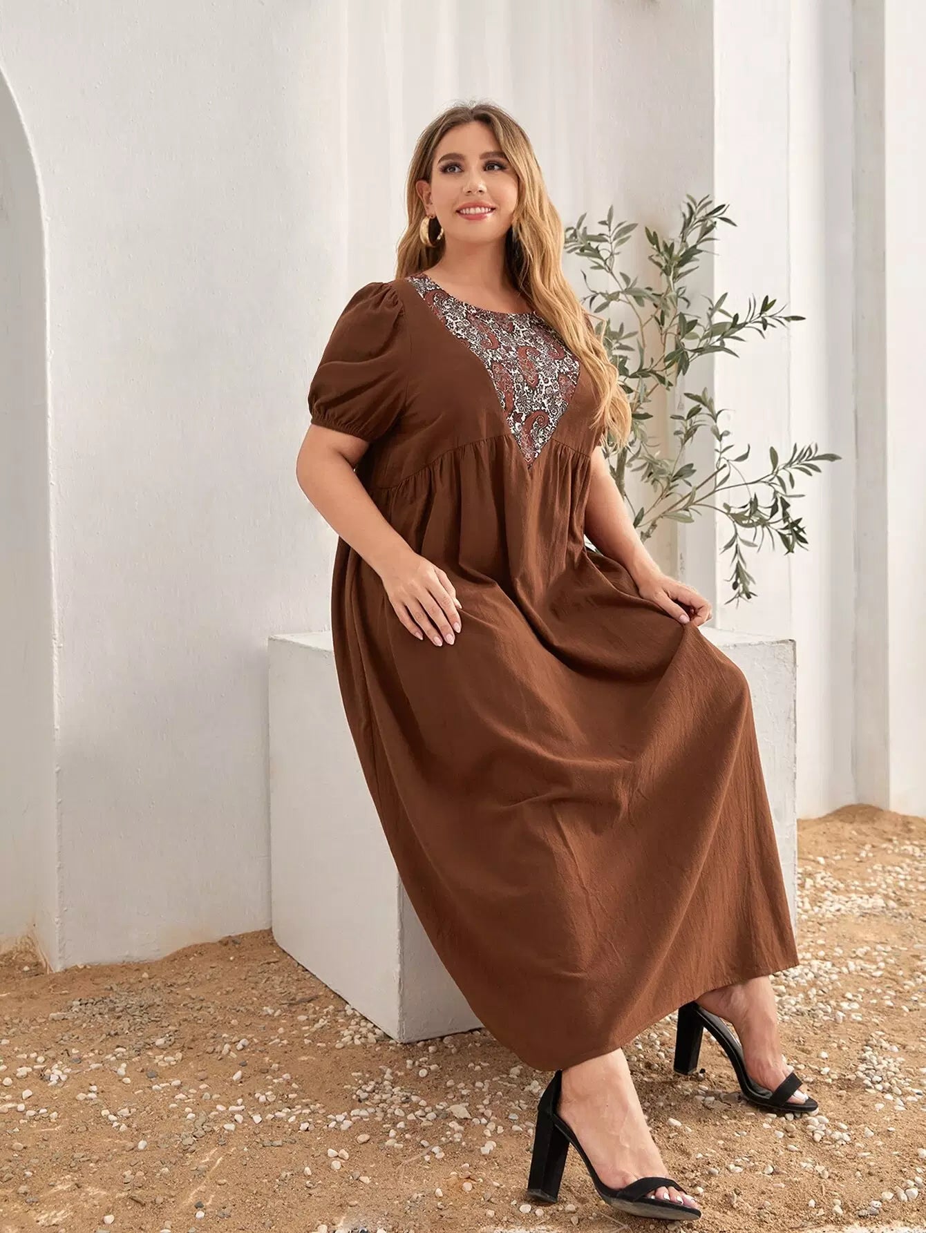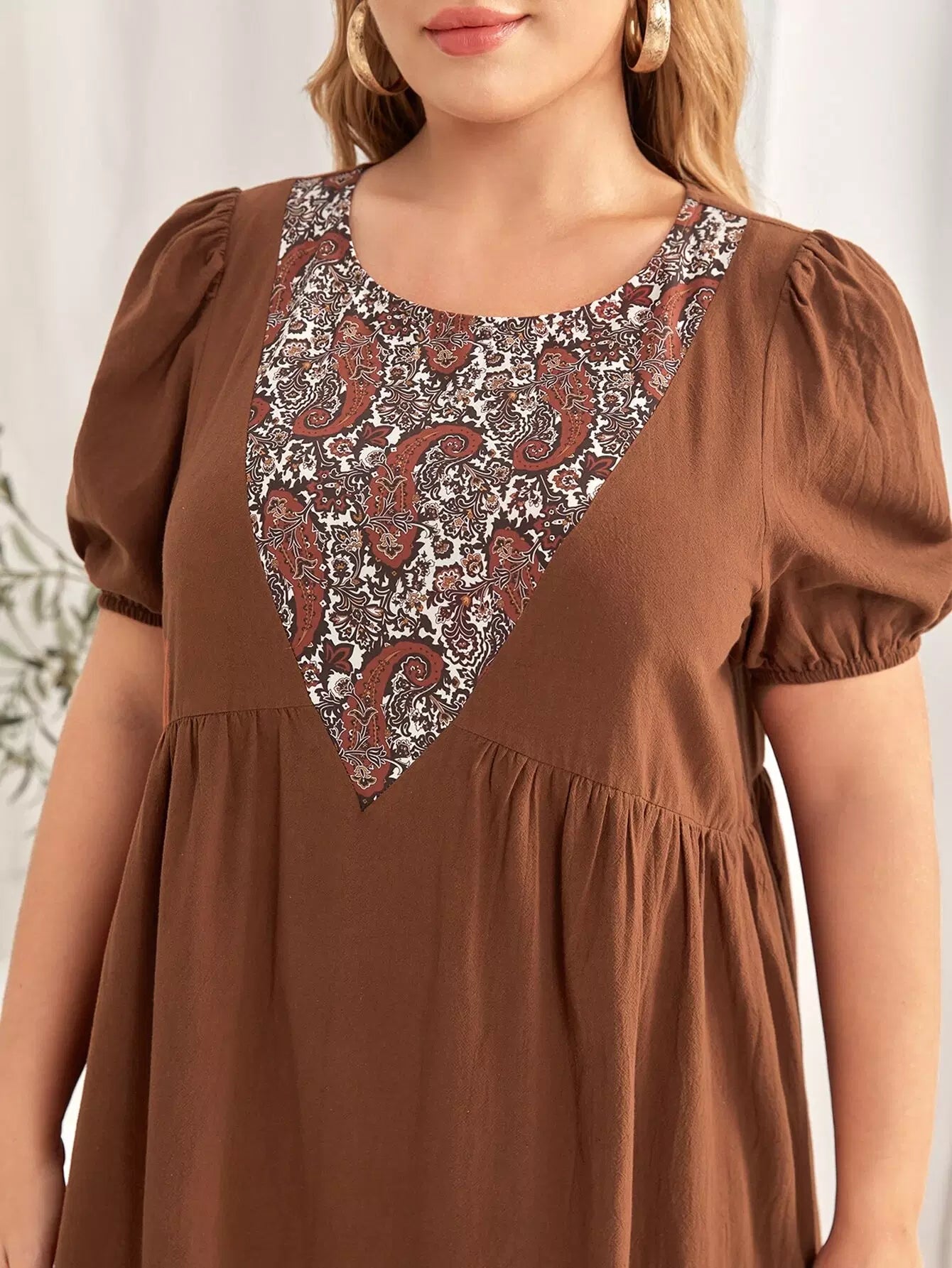 فستان سموك بأكمام منفوشة بطبعة بيزلي زائد