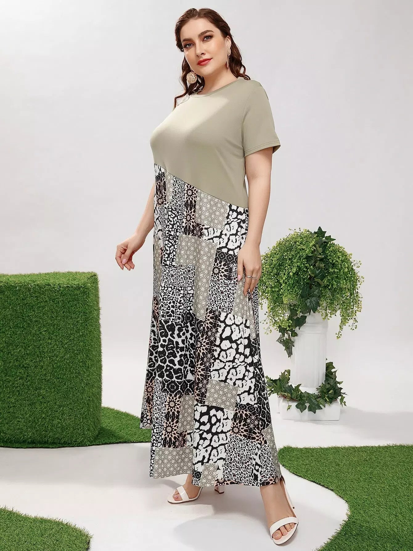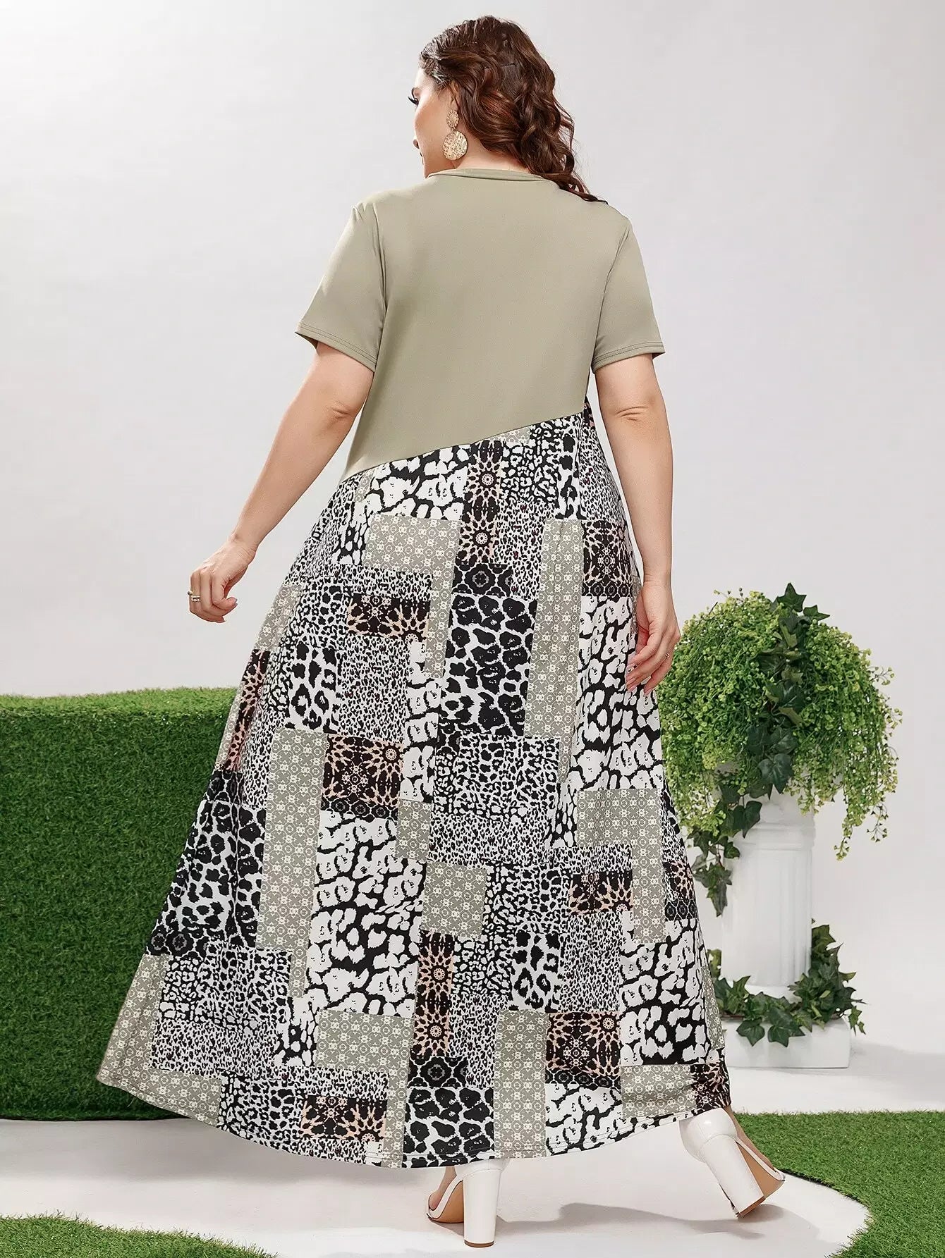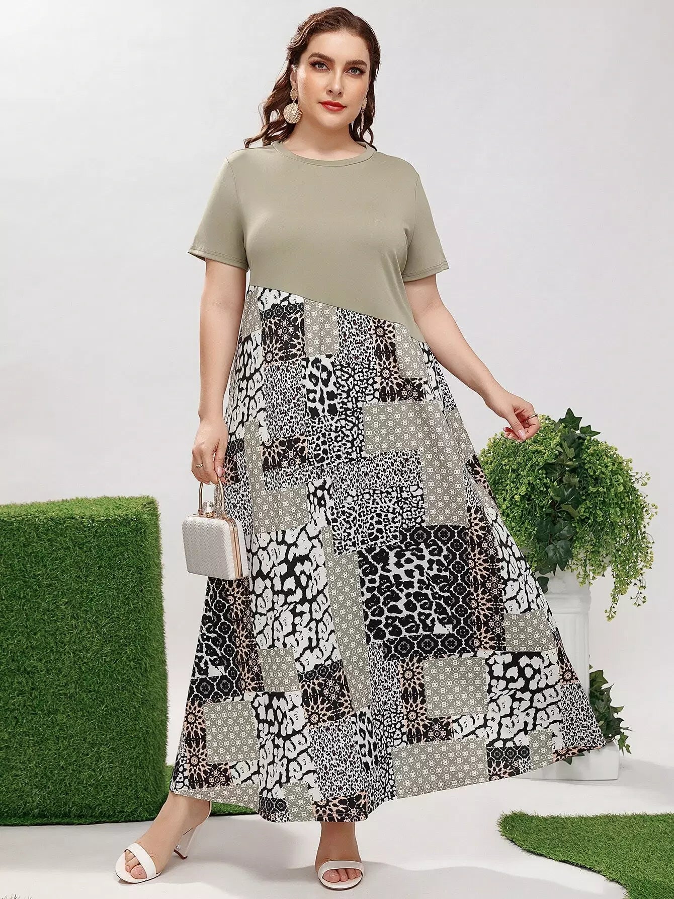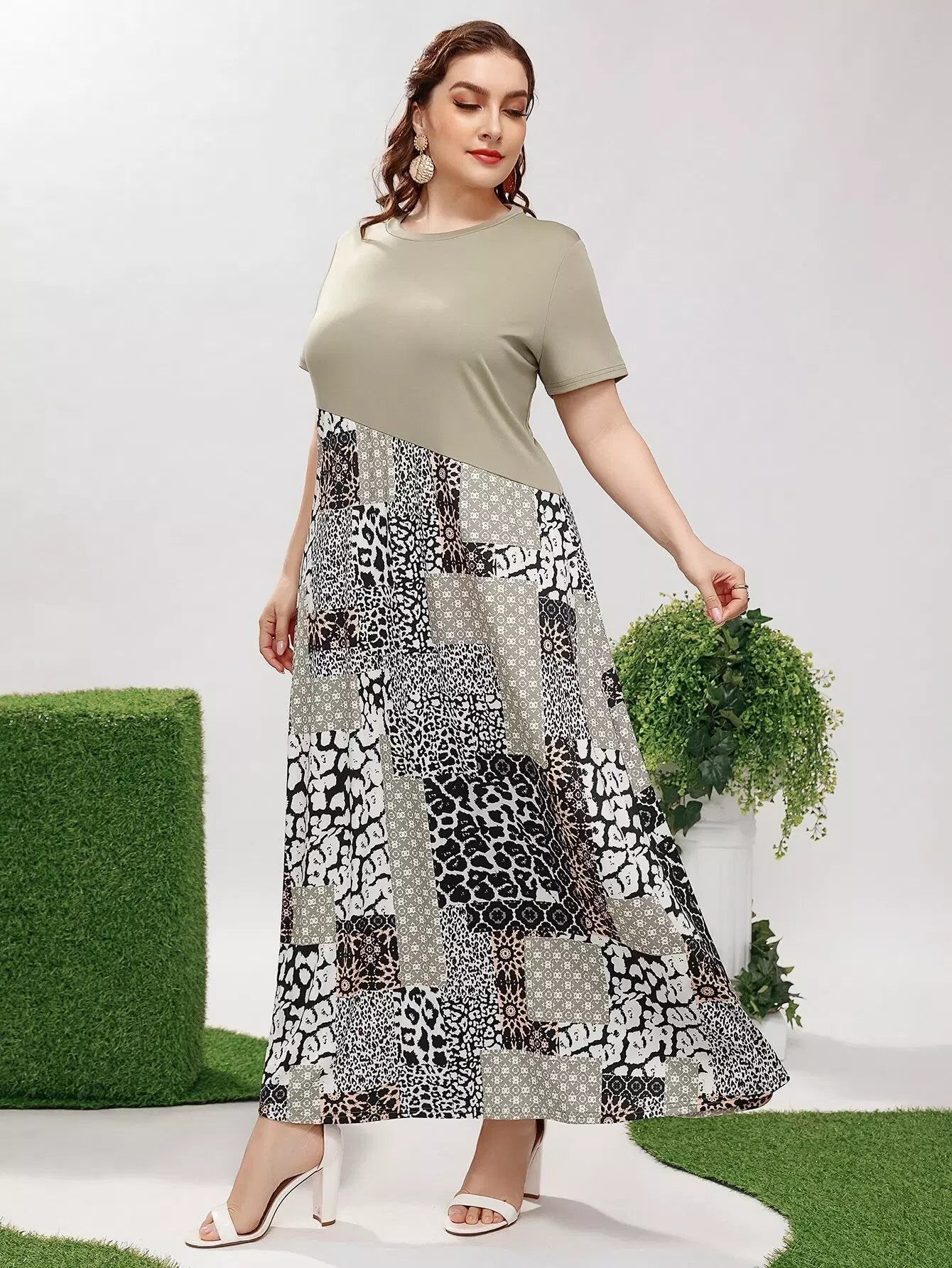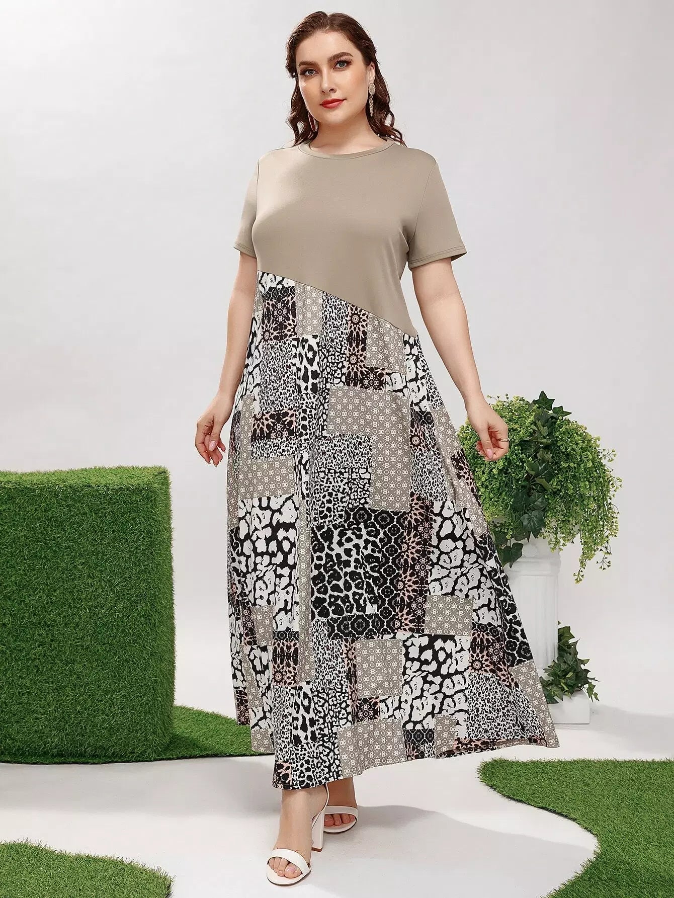 فستان مرقع بطبعة مرقعة زائد