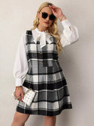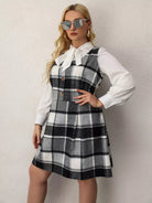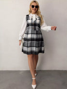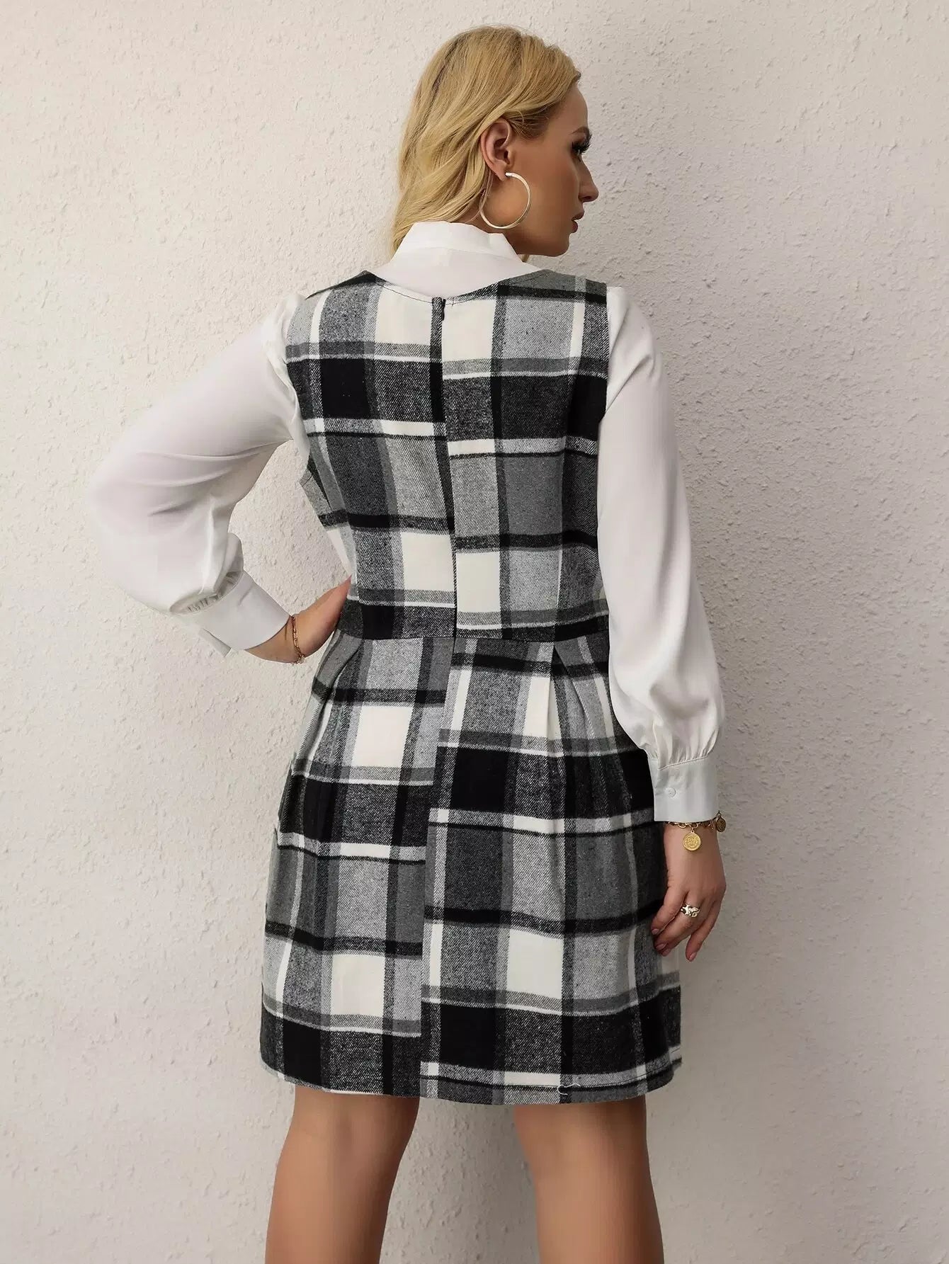 فستان منقوش بنقشة بلس منقوش بطيات مطوية من الصوف الممزوج بدون قميص