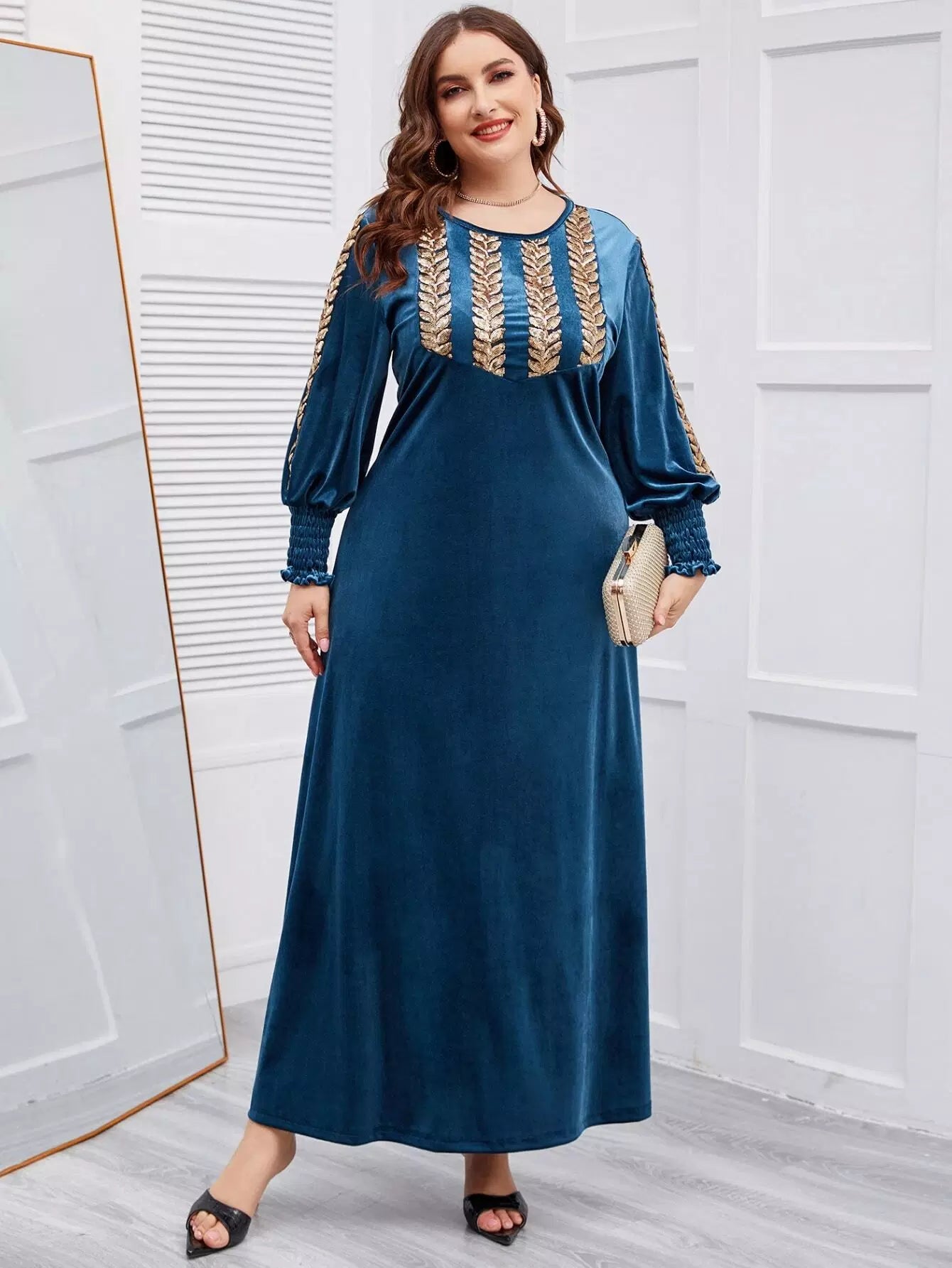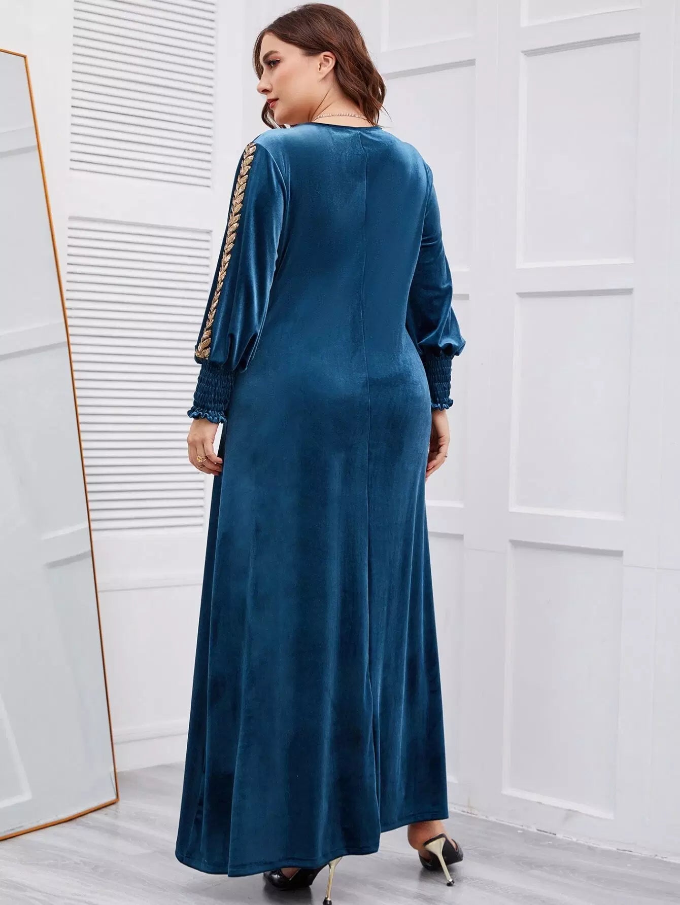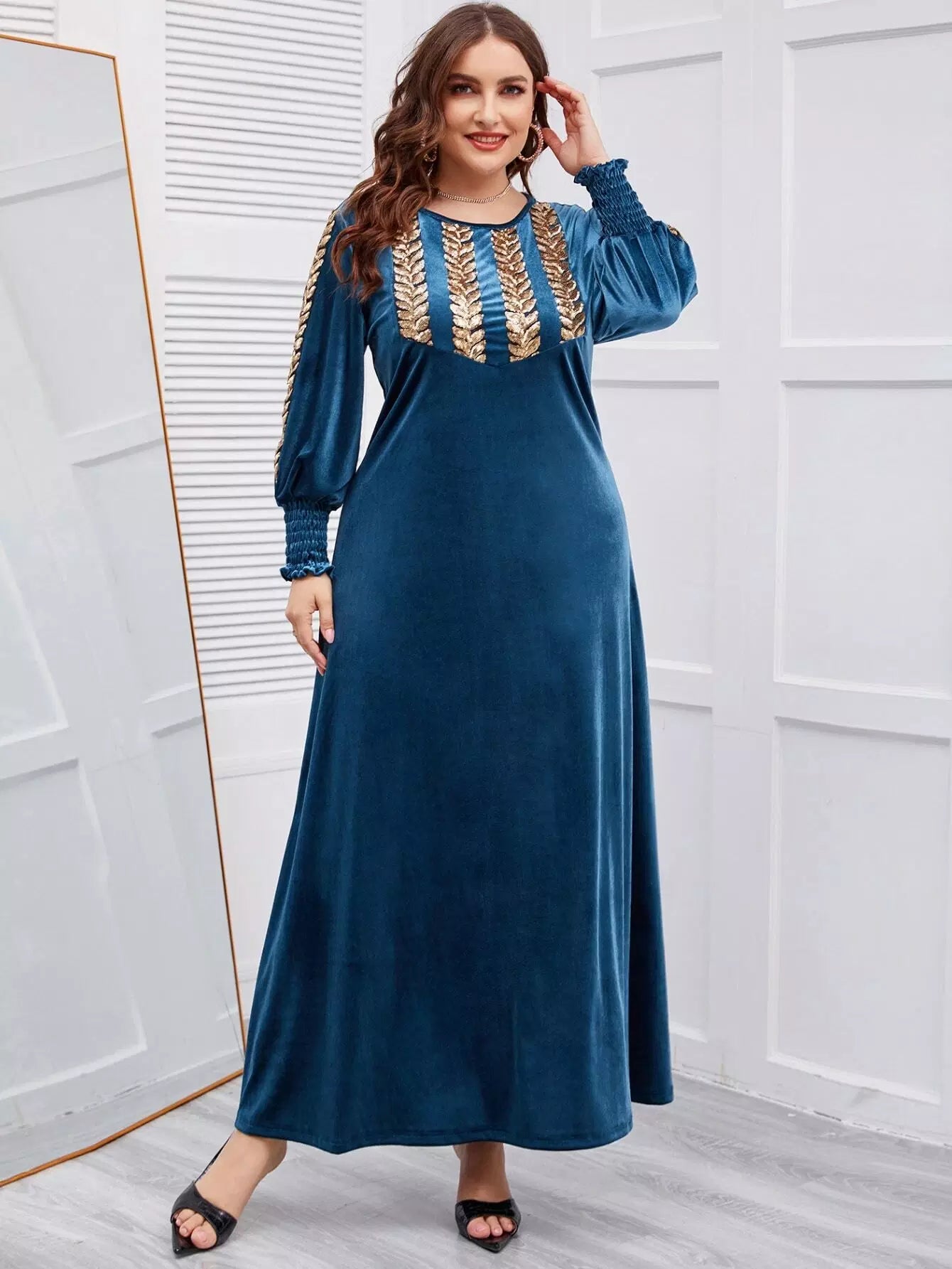 فستان مخملي بأكمام مخملية مطرز بشراشيب مطرزة بلس بلس بلانتر