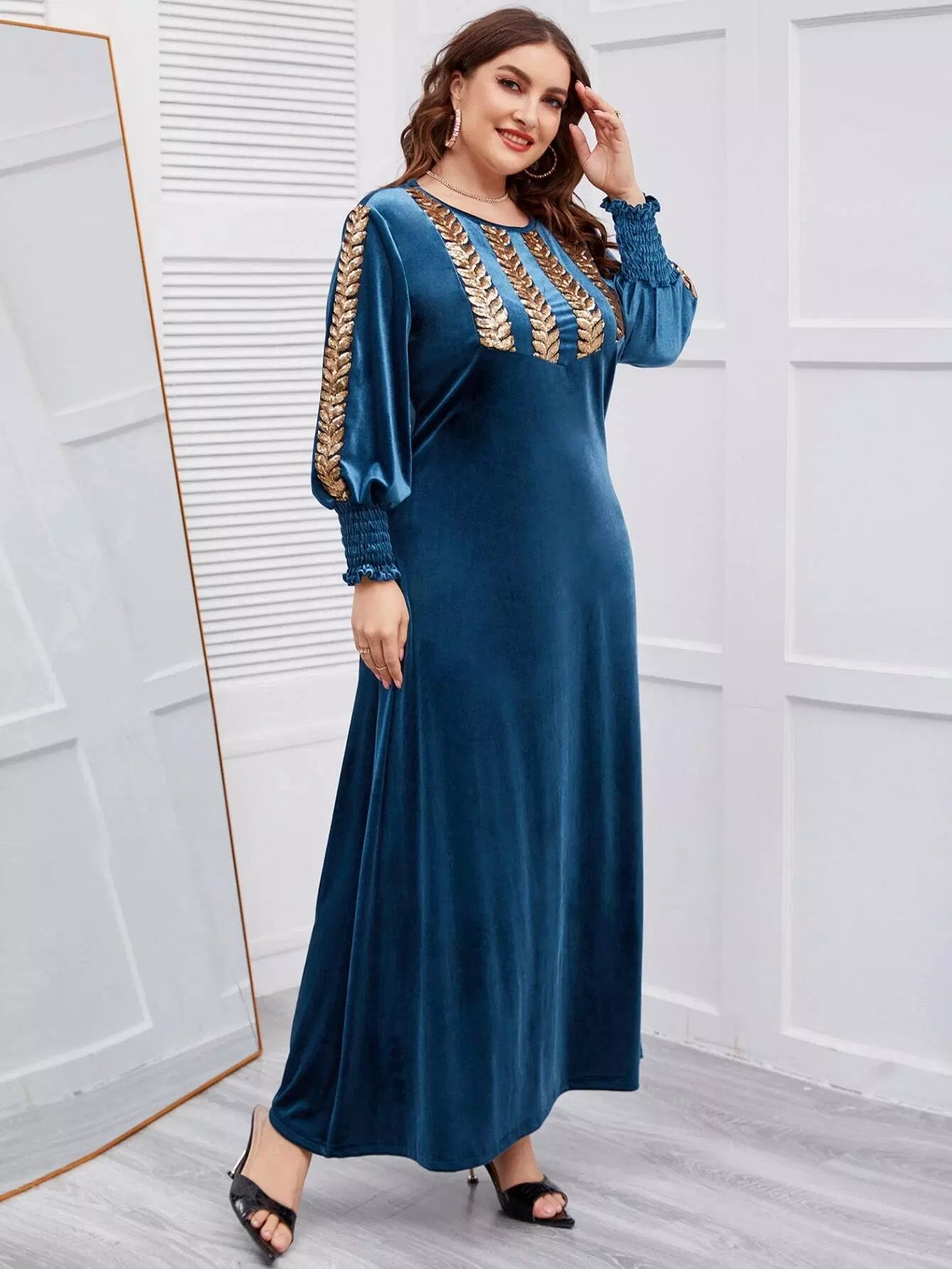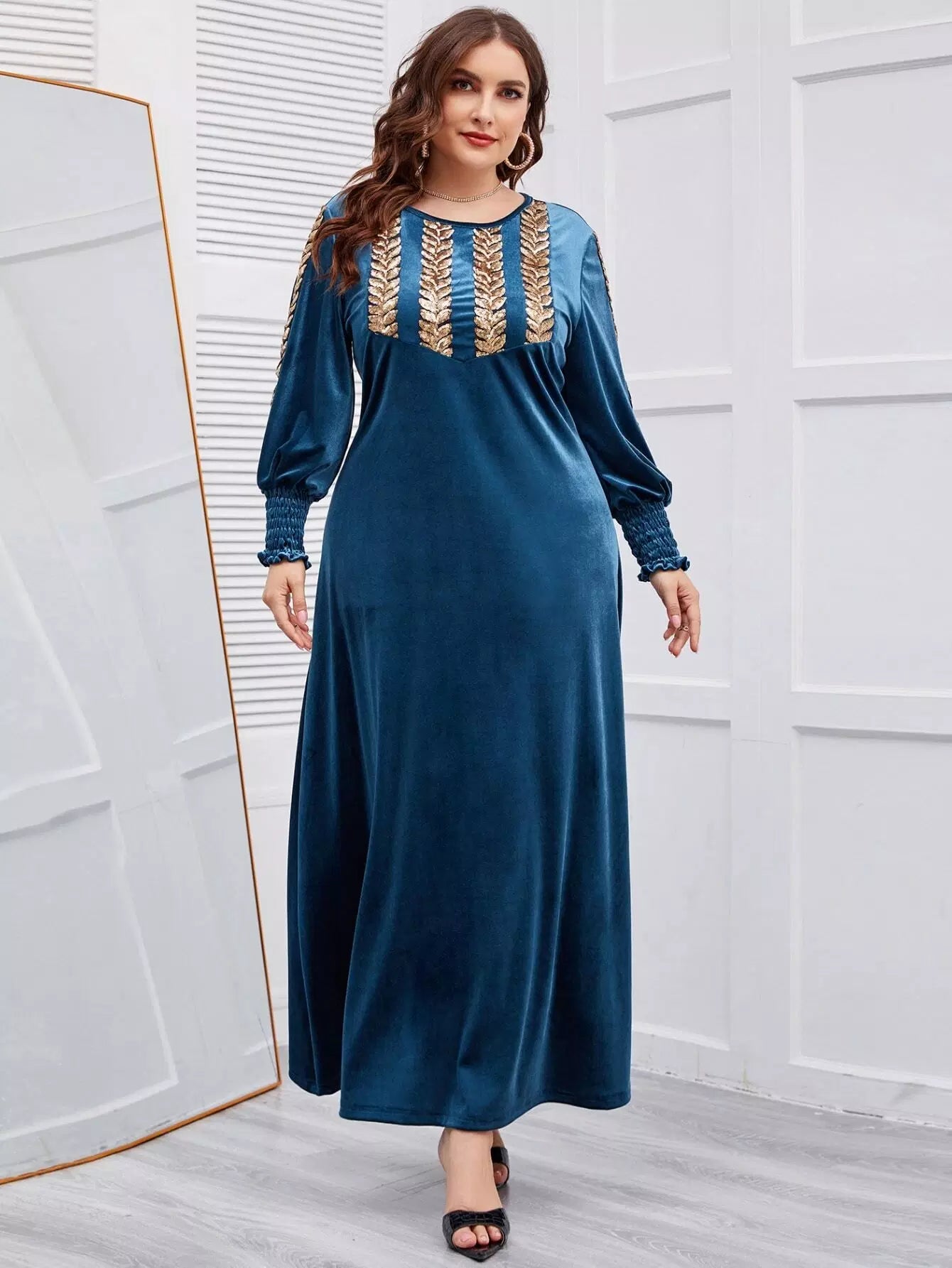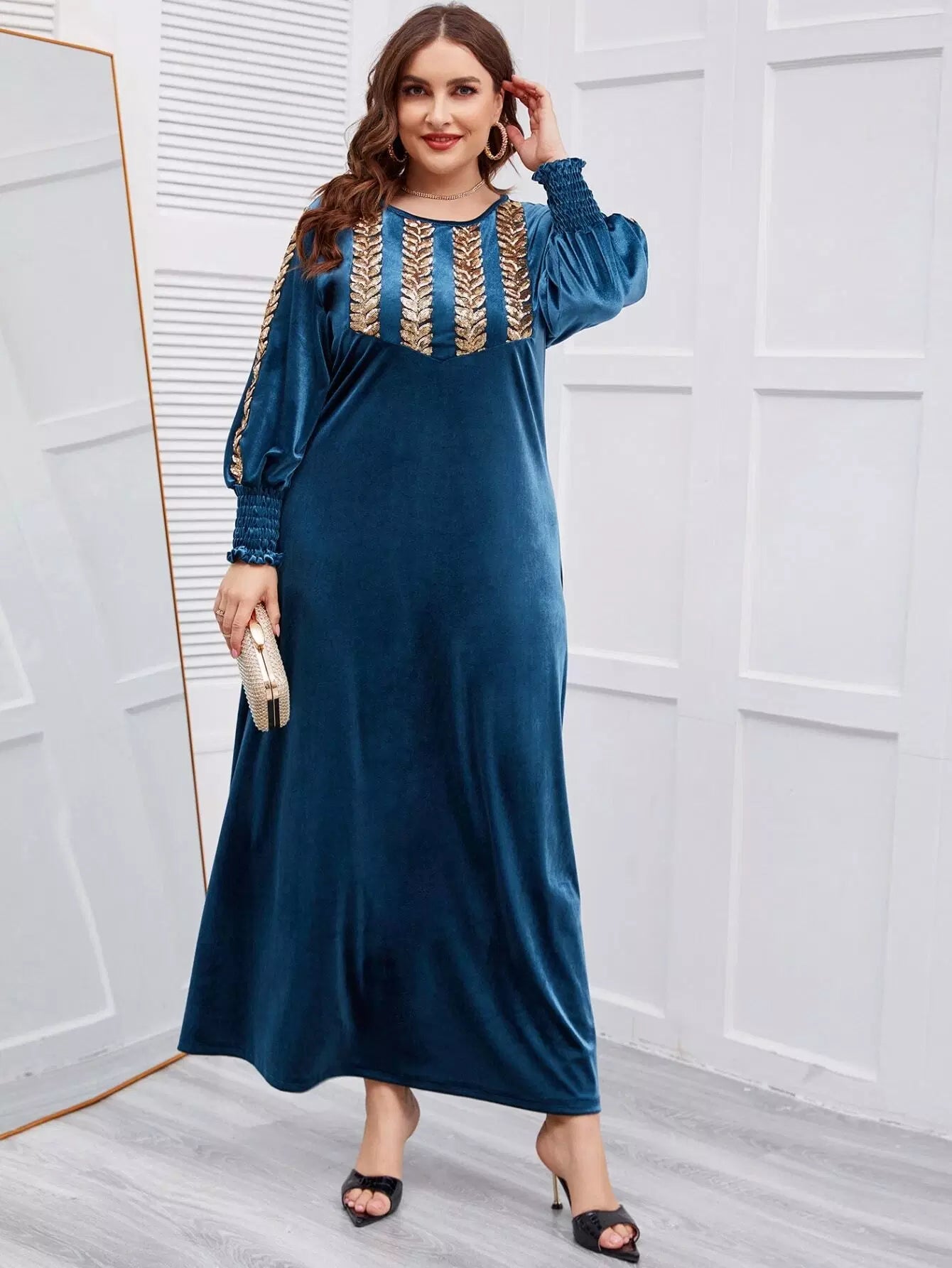 فستان مخملي بأكمام مخملية مطرز بشراشيب مطرزة بلس بلس بلانتر
