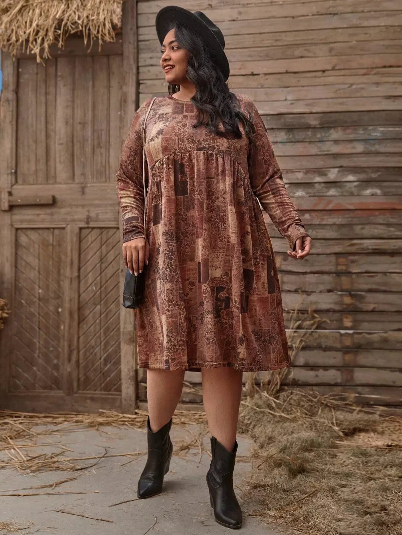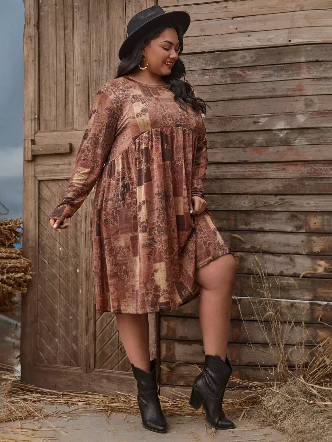 فستان قصير مطبوع بطبعة نباتات زائد