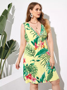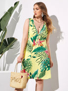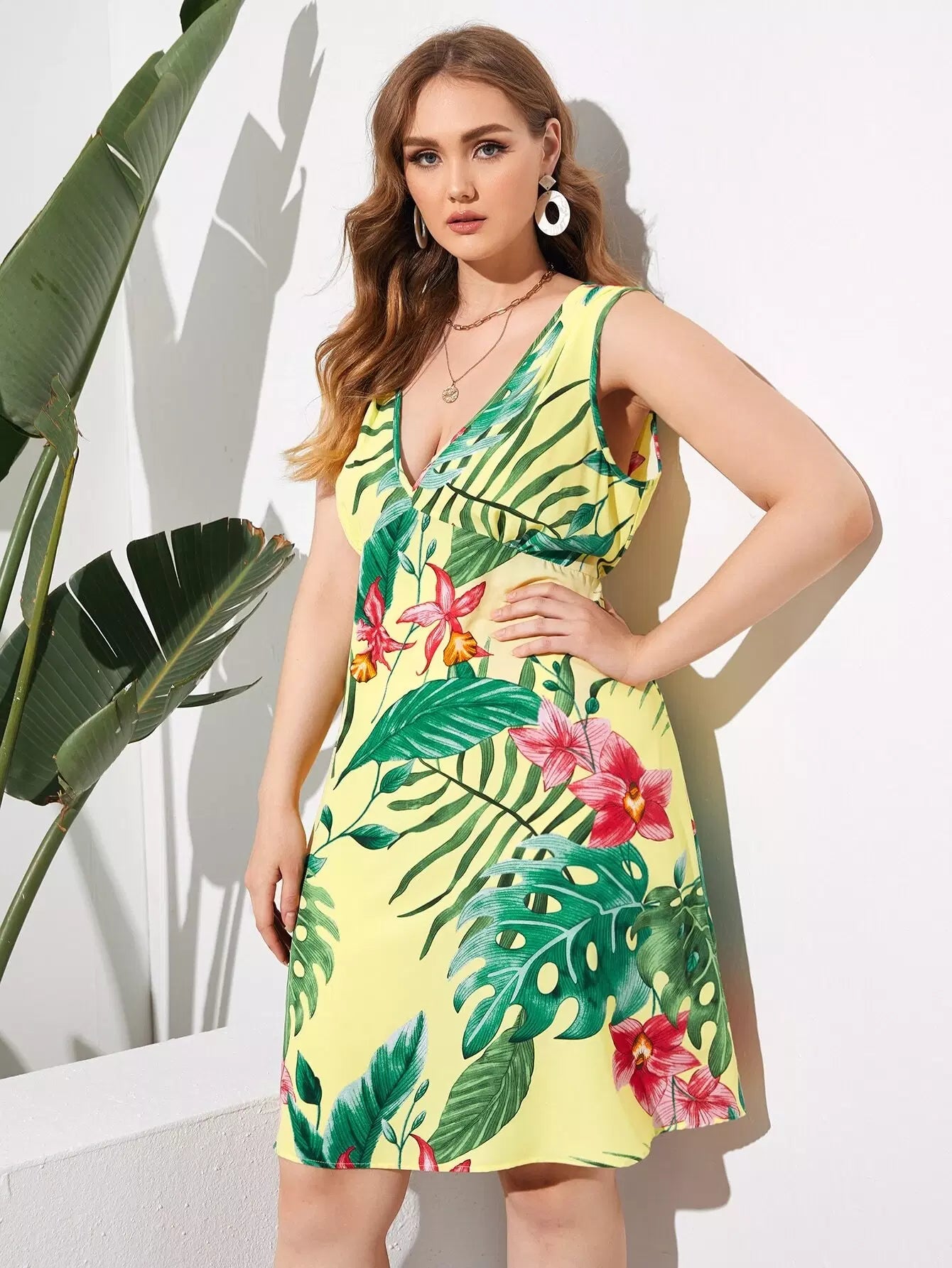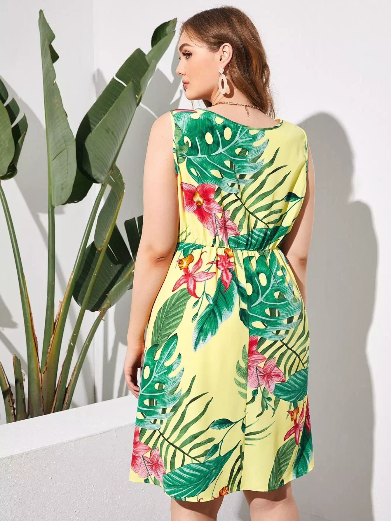 فستان بدون أكمام برقبة مكشوف بلا أكمام مطبوع بطبعة بلا أكمام