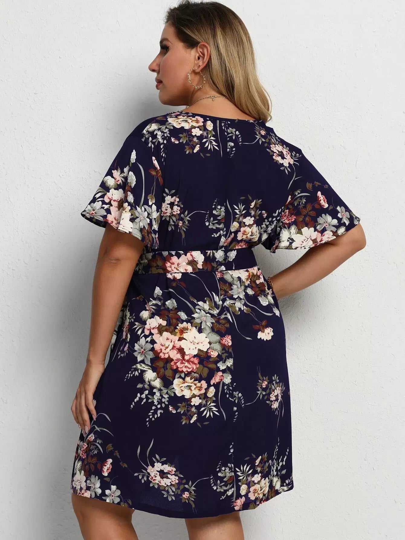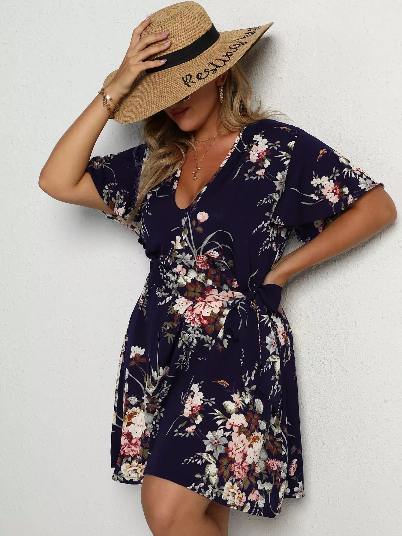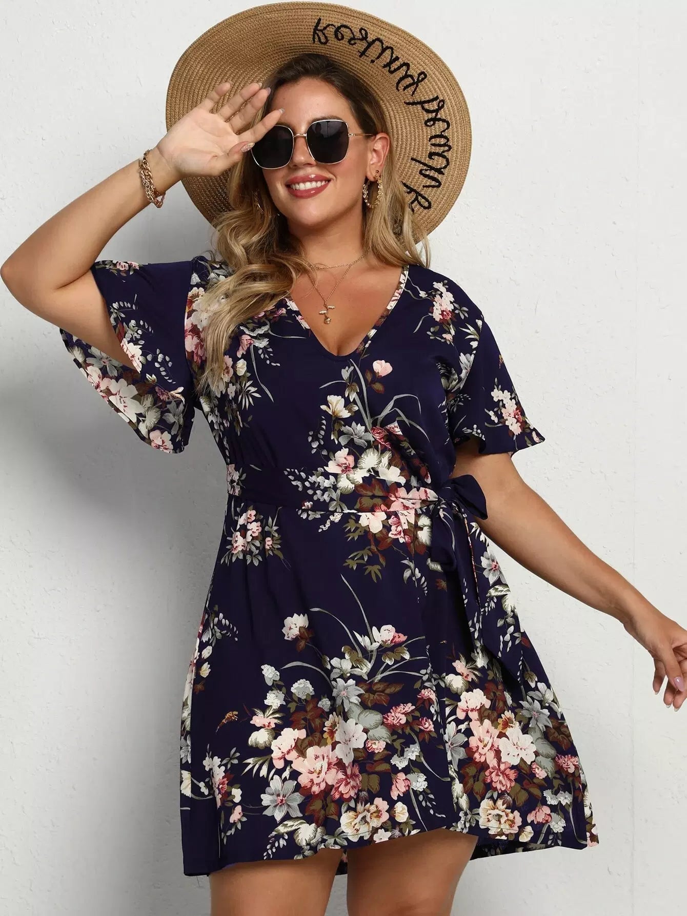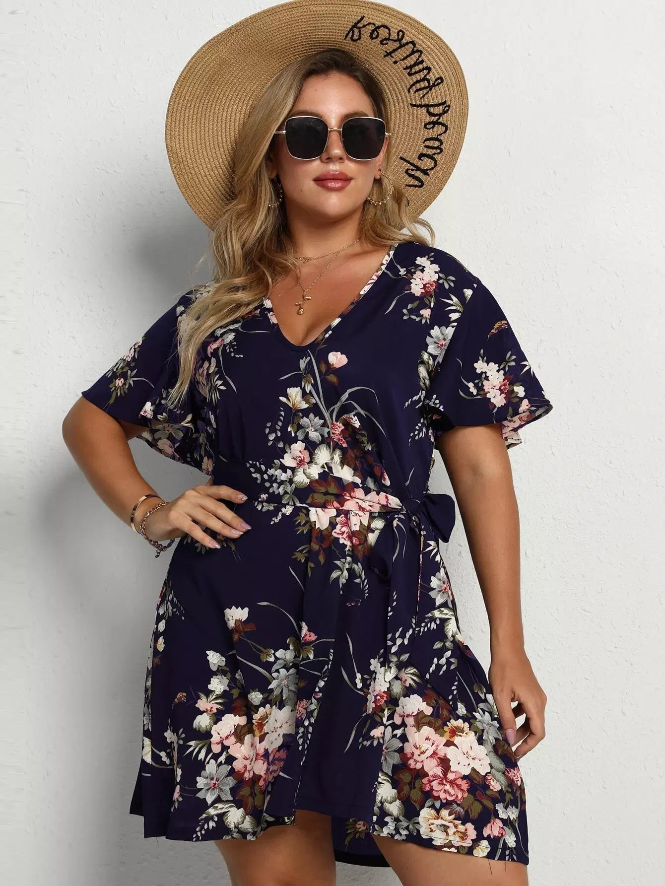 بالإضافة إلى فستان بطبعة زهور وياقة عميقة بدون حزام