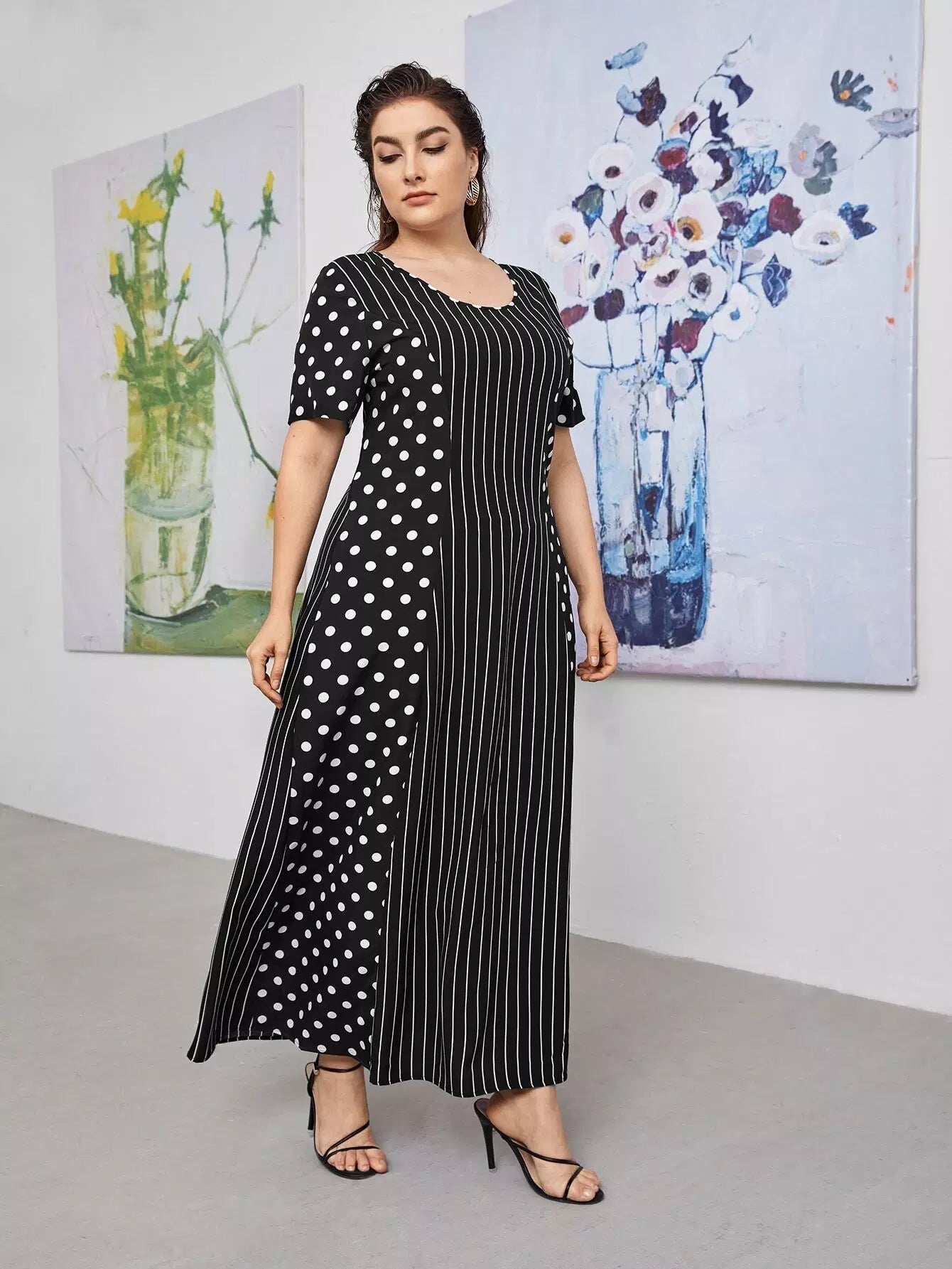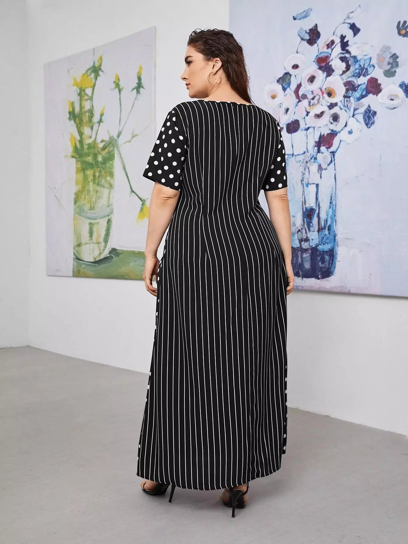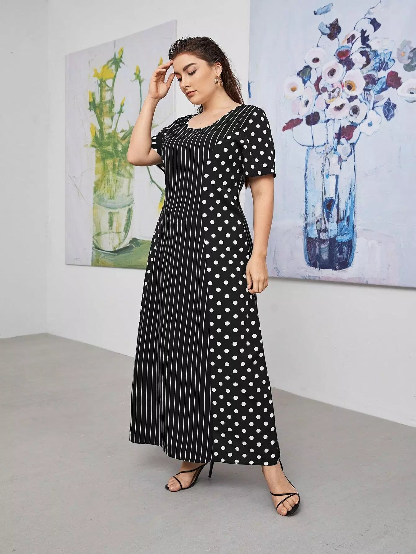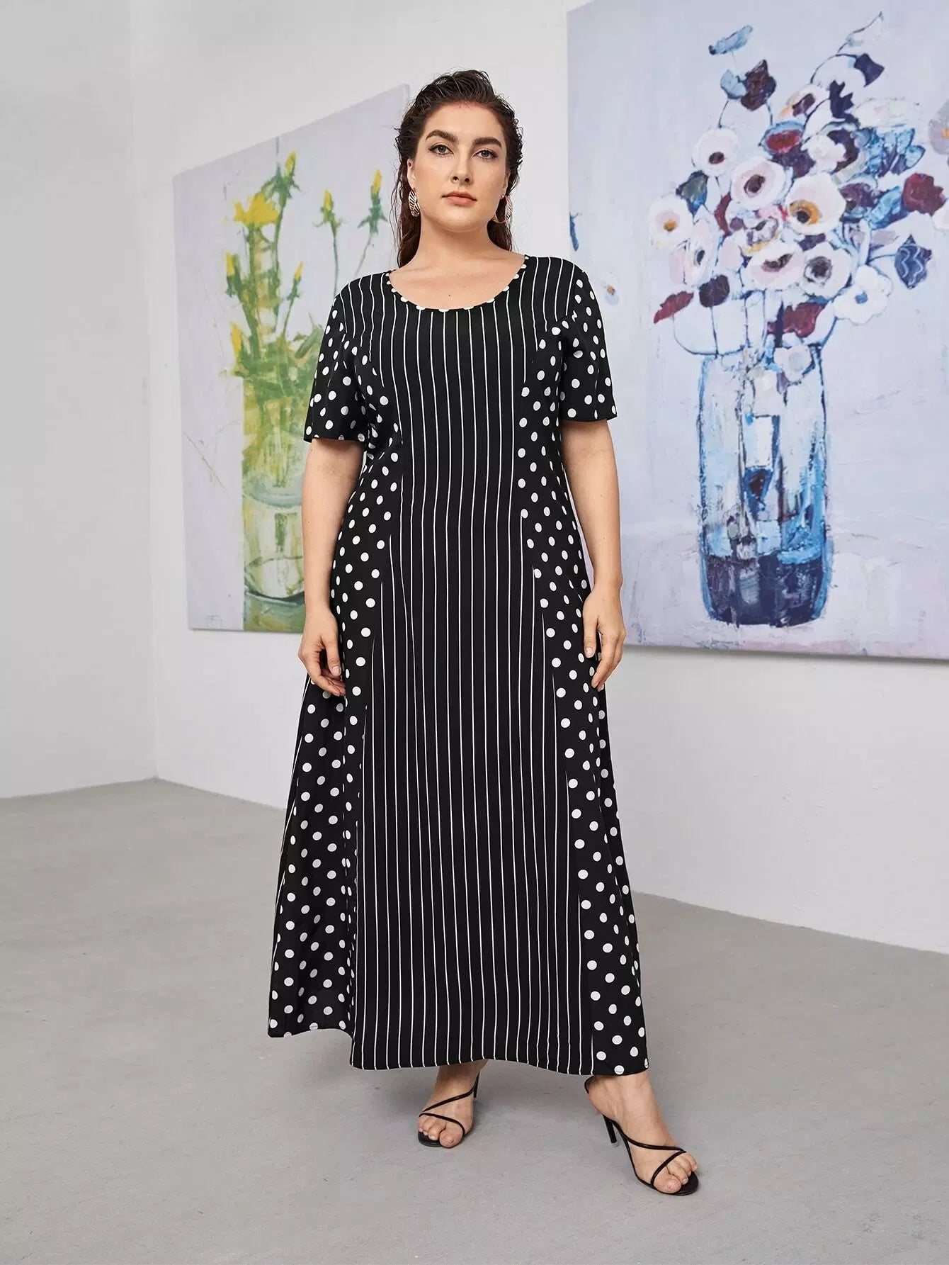 فستان ماكسي منقّط ومخطّط بلس بلس