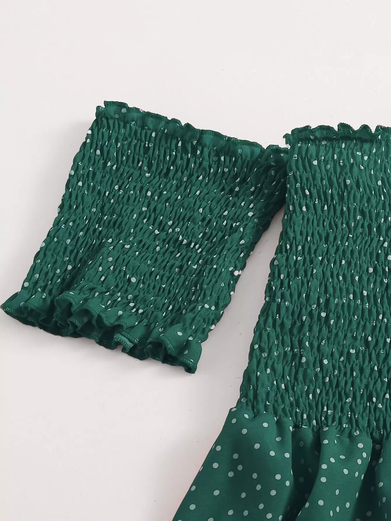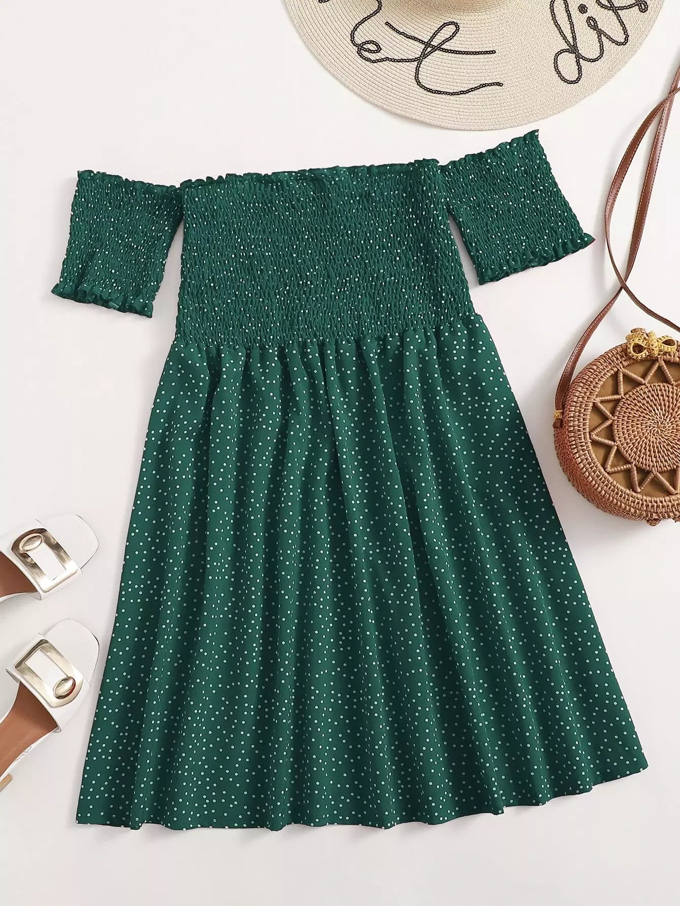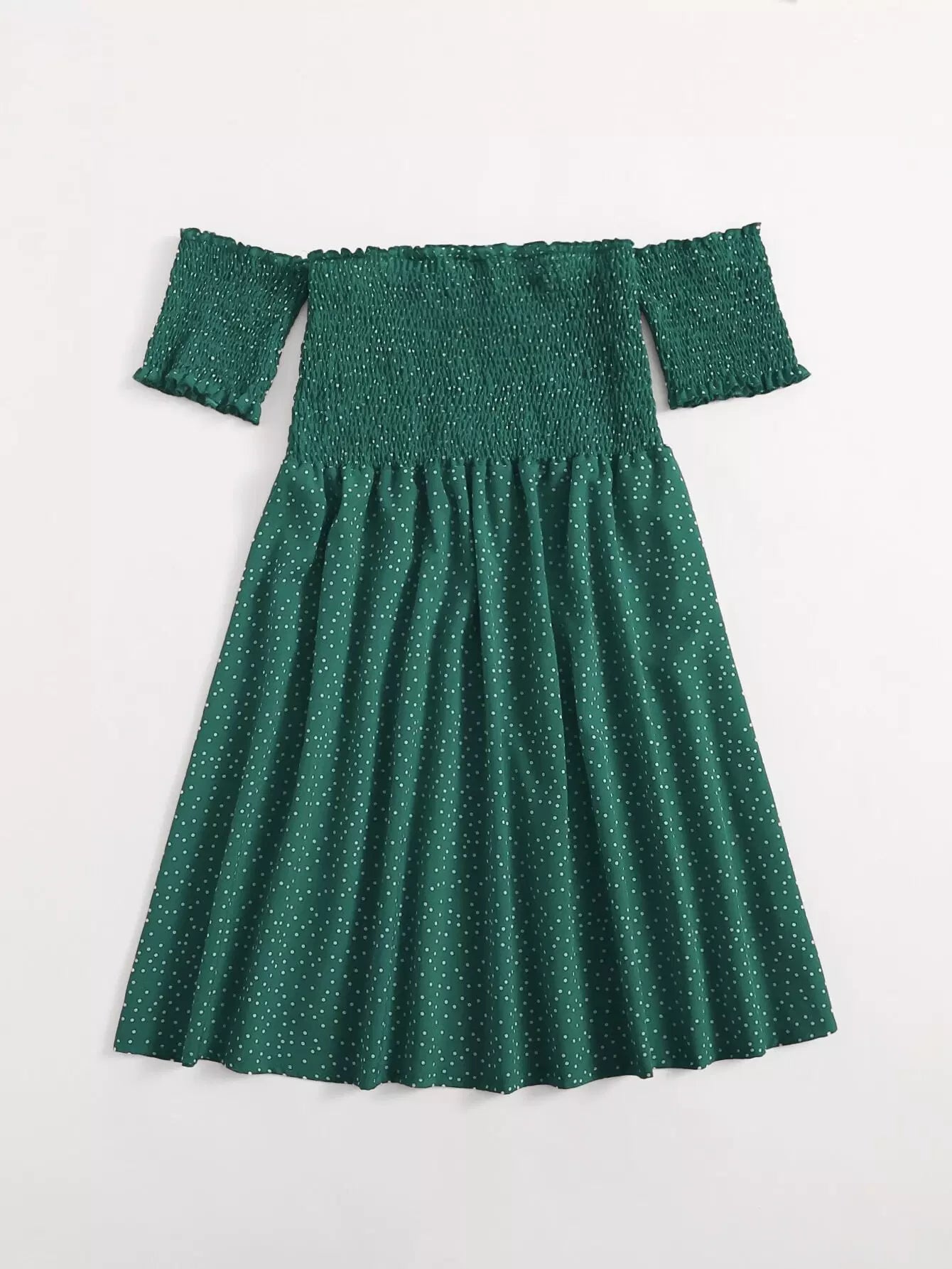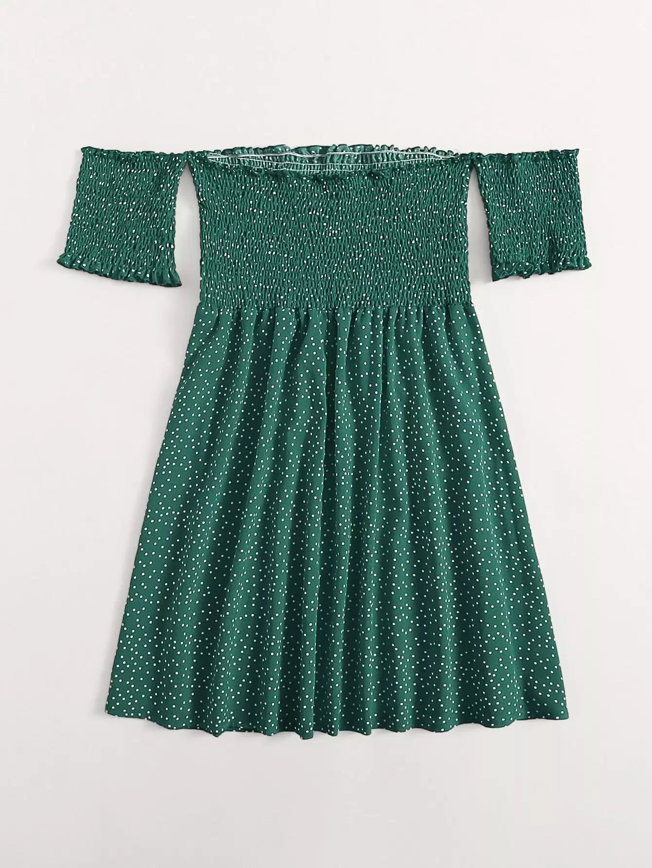 فستان كشكش منقّط منقّط زائد بحواف كشكش باردو
