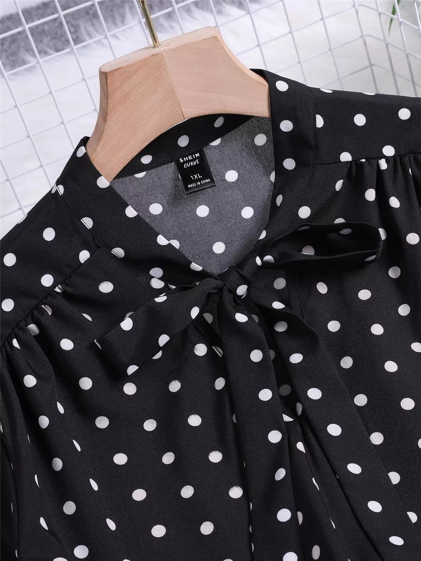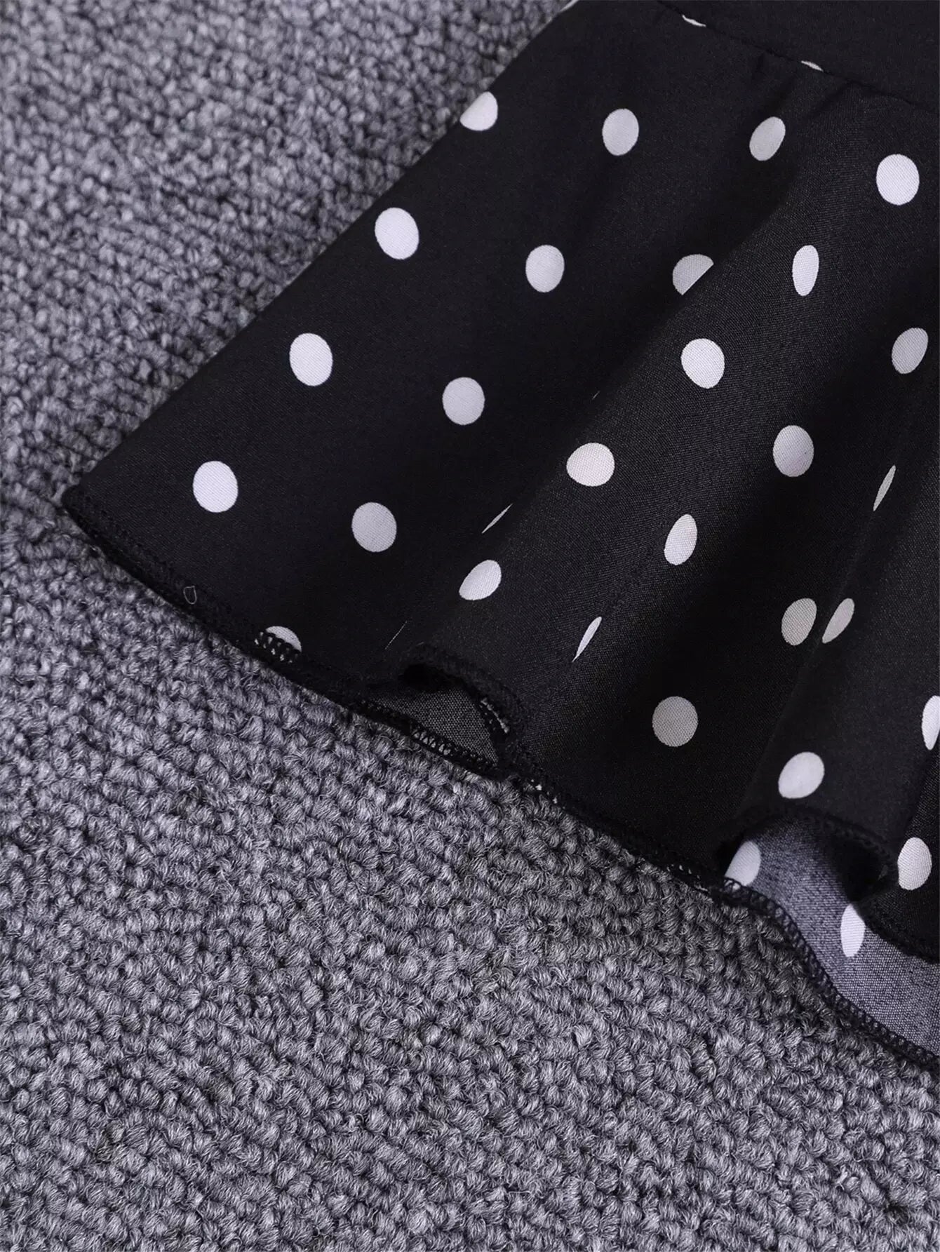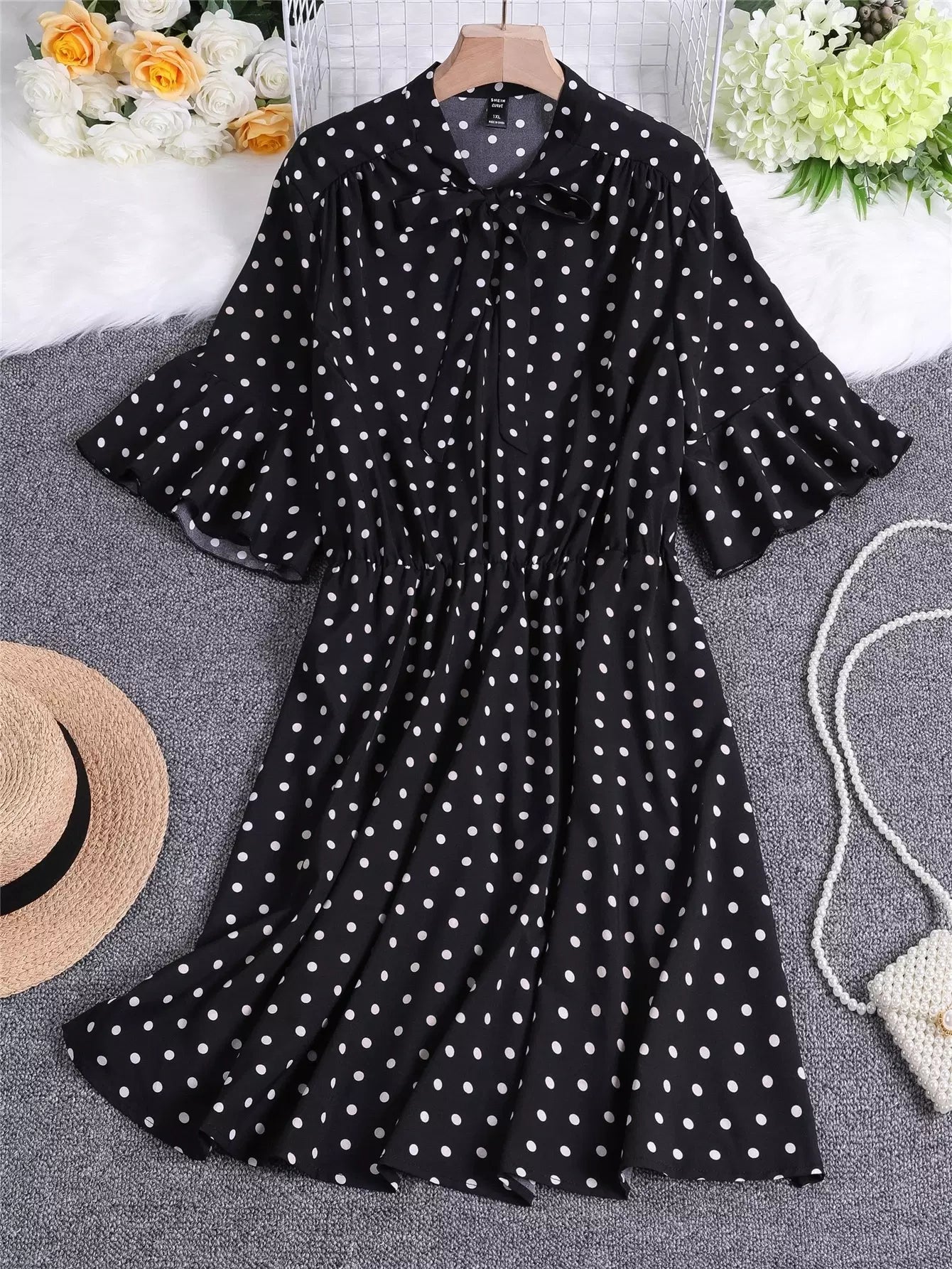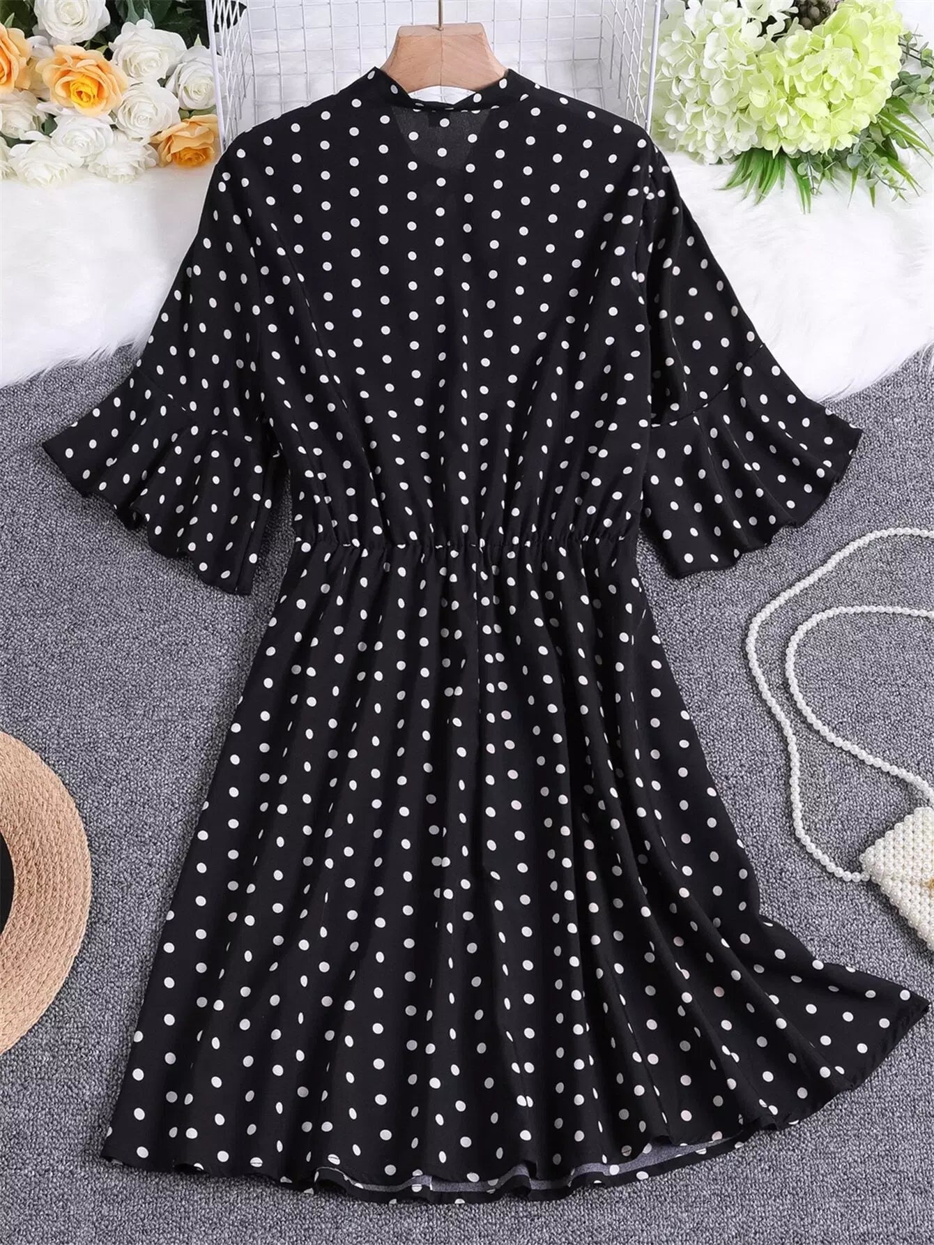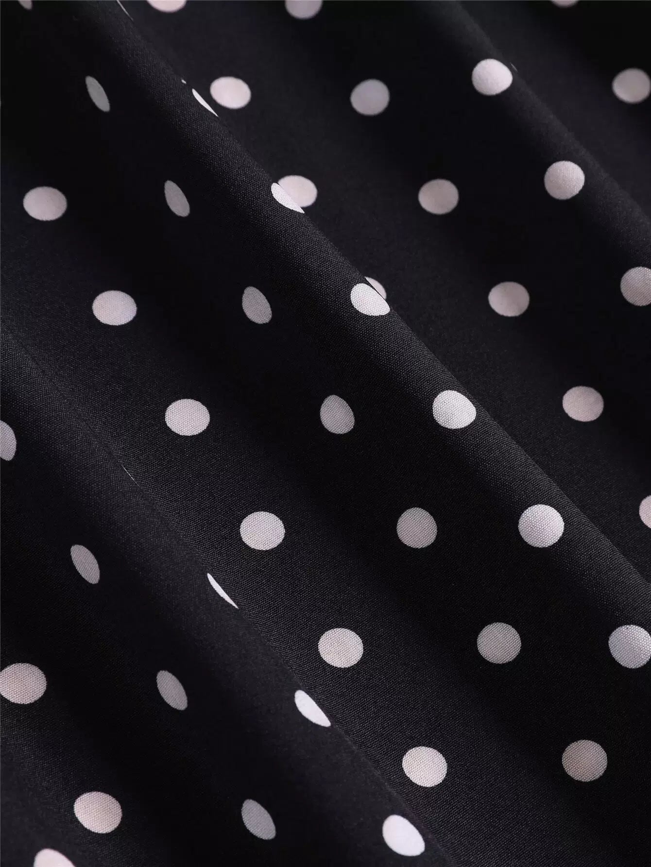فستان بياقة منقطة زائد بأكمام منفوشة على شكل حرف A