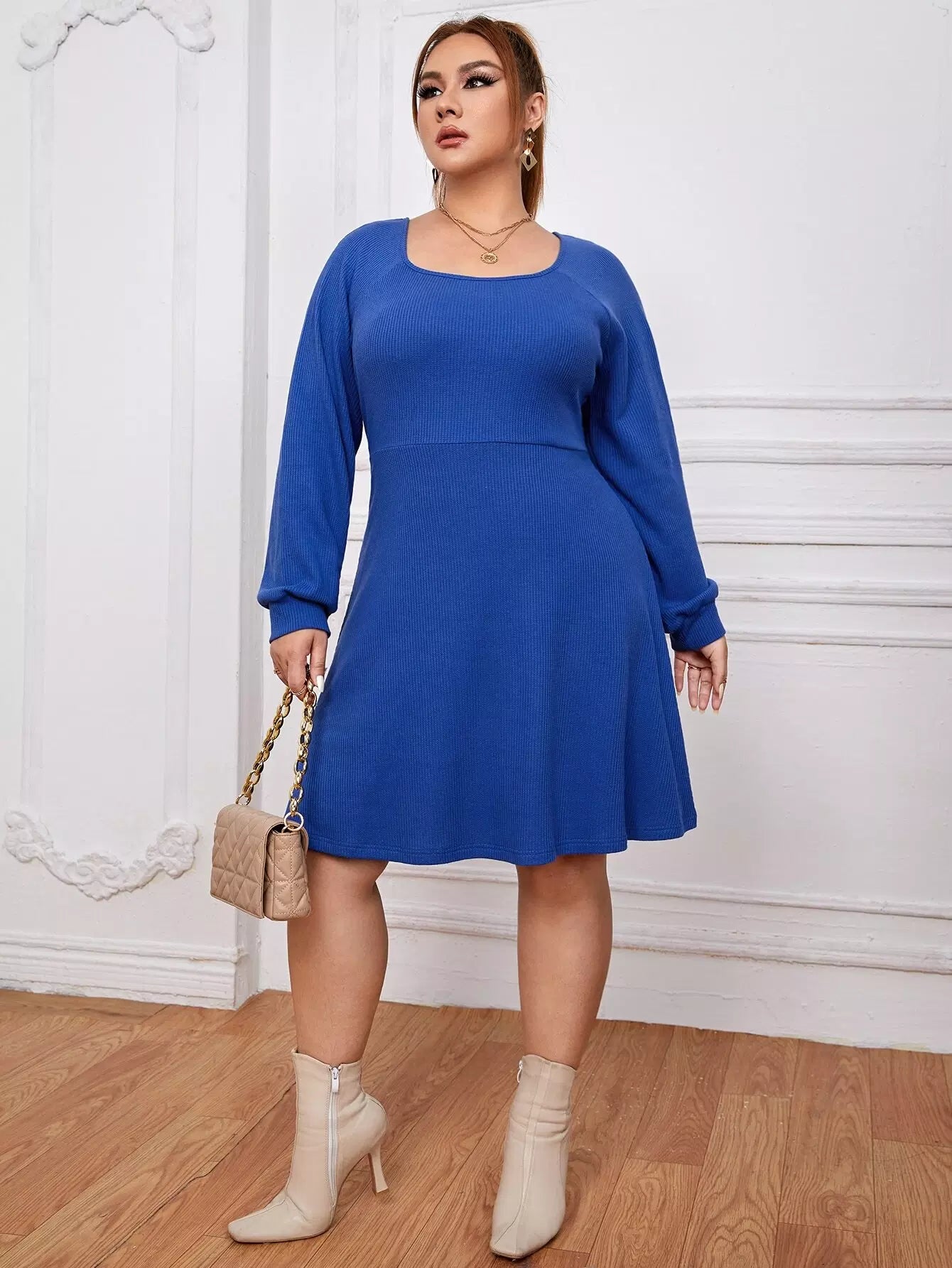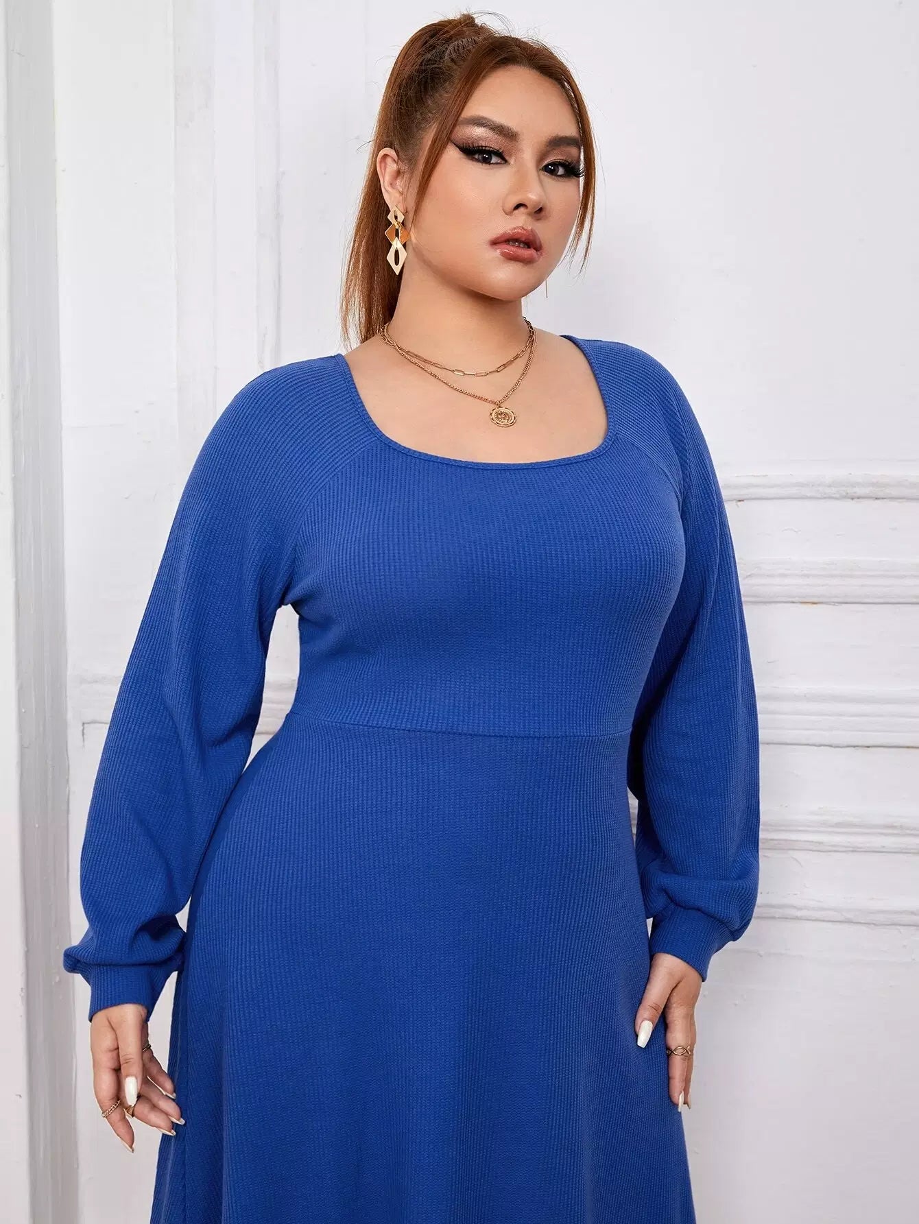 فستان بأكمام مضلعة مضلعة بأضلاع مضلعة زائد