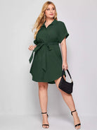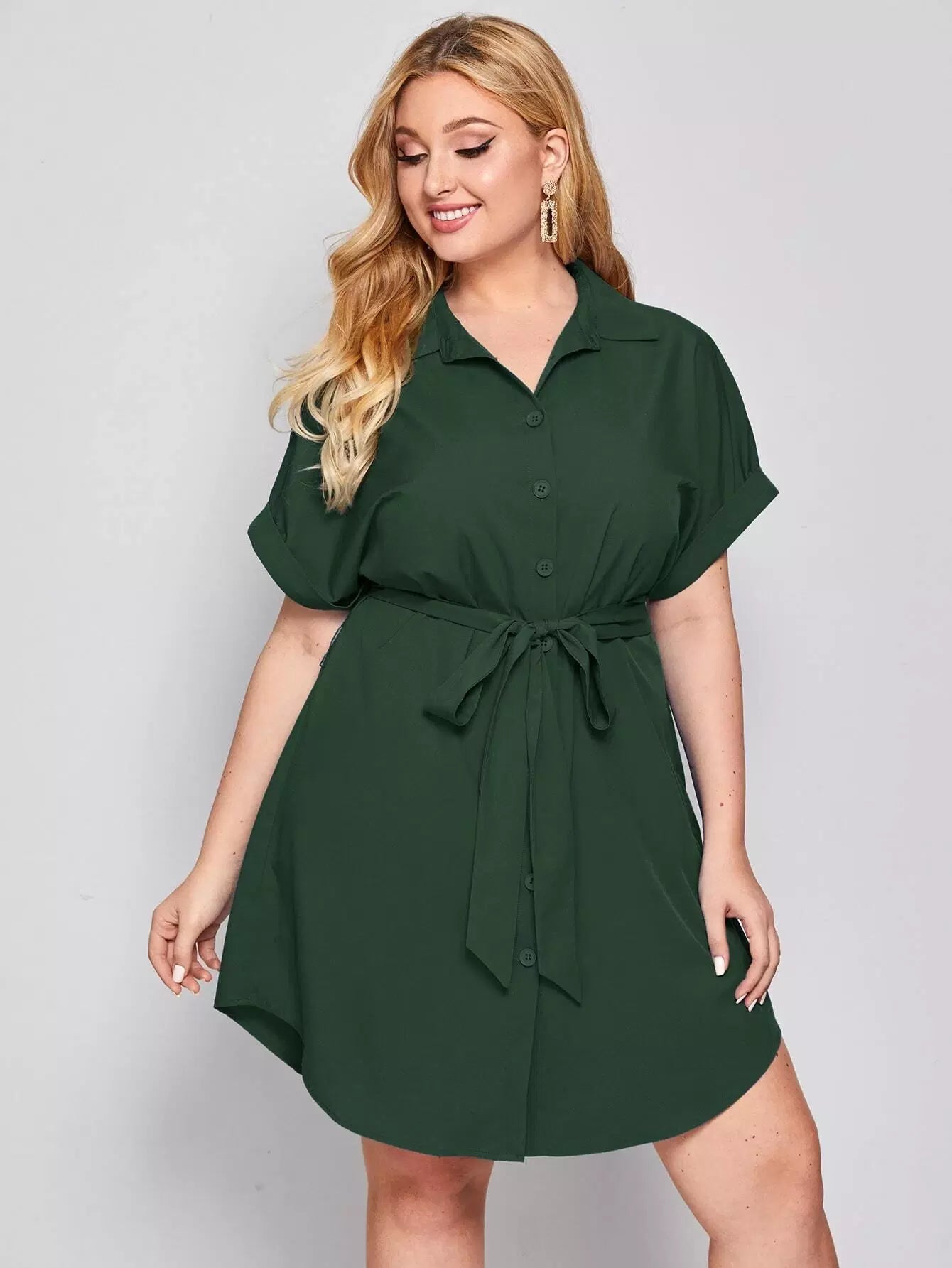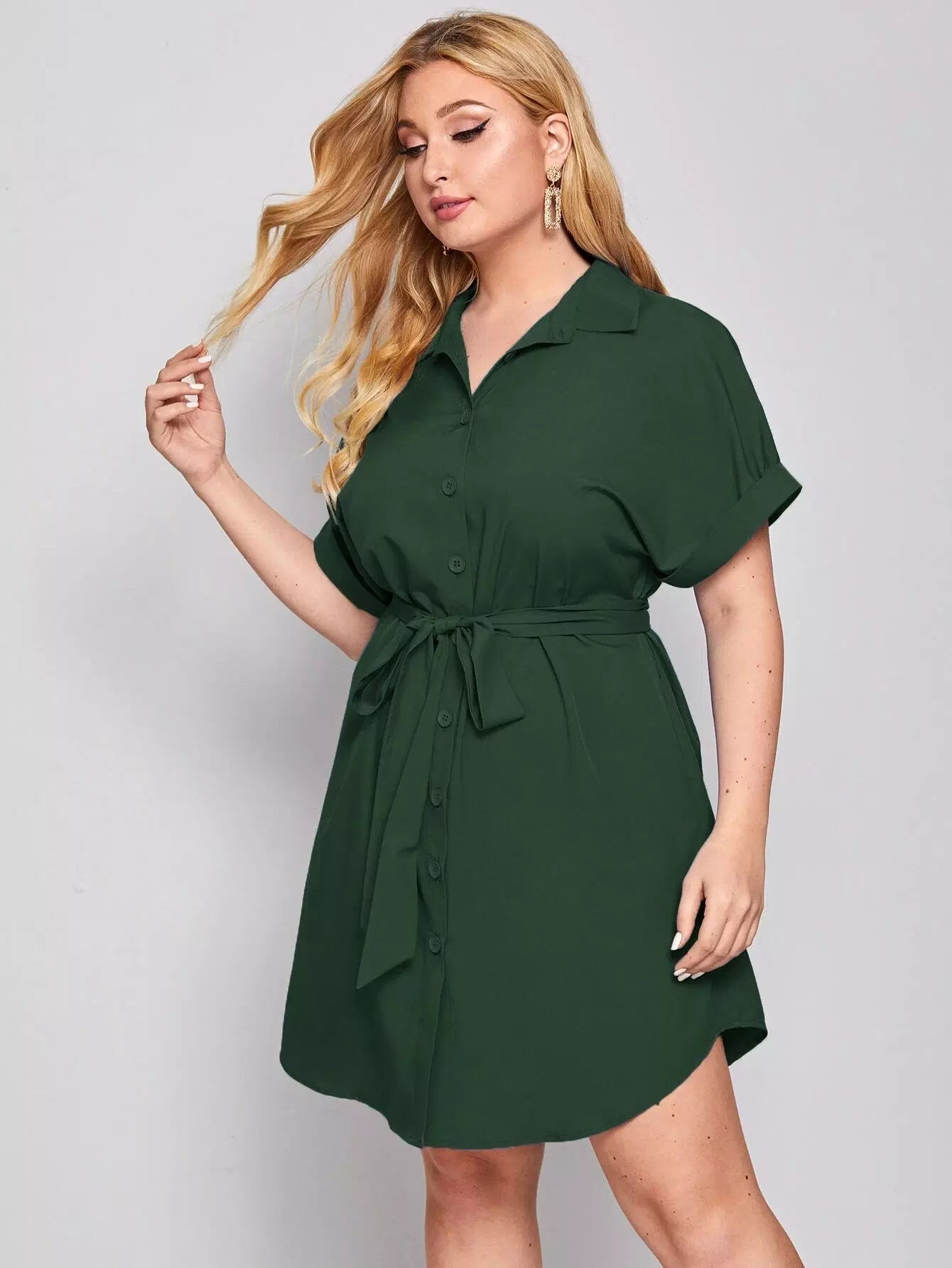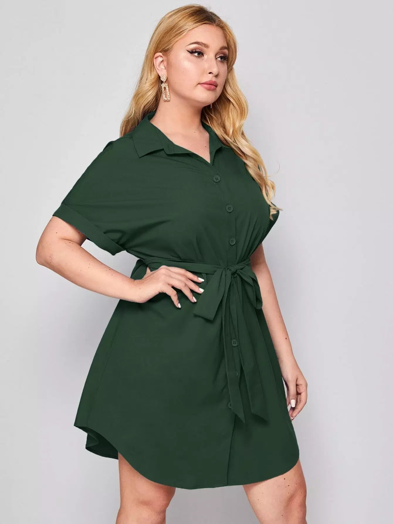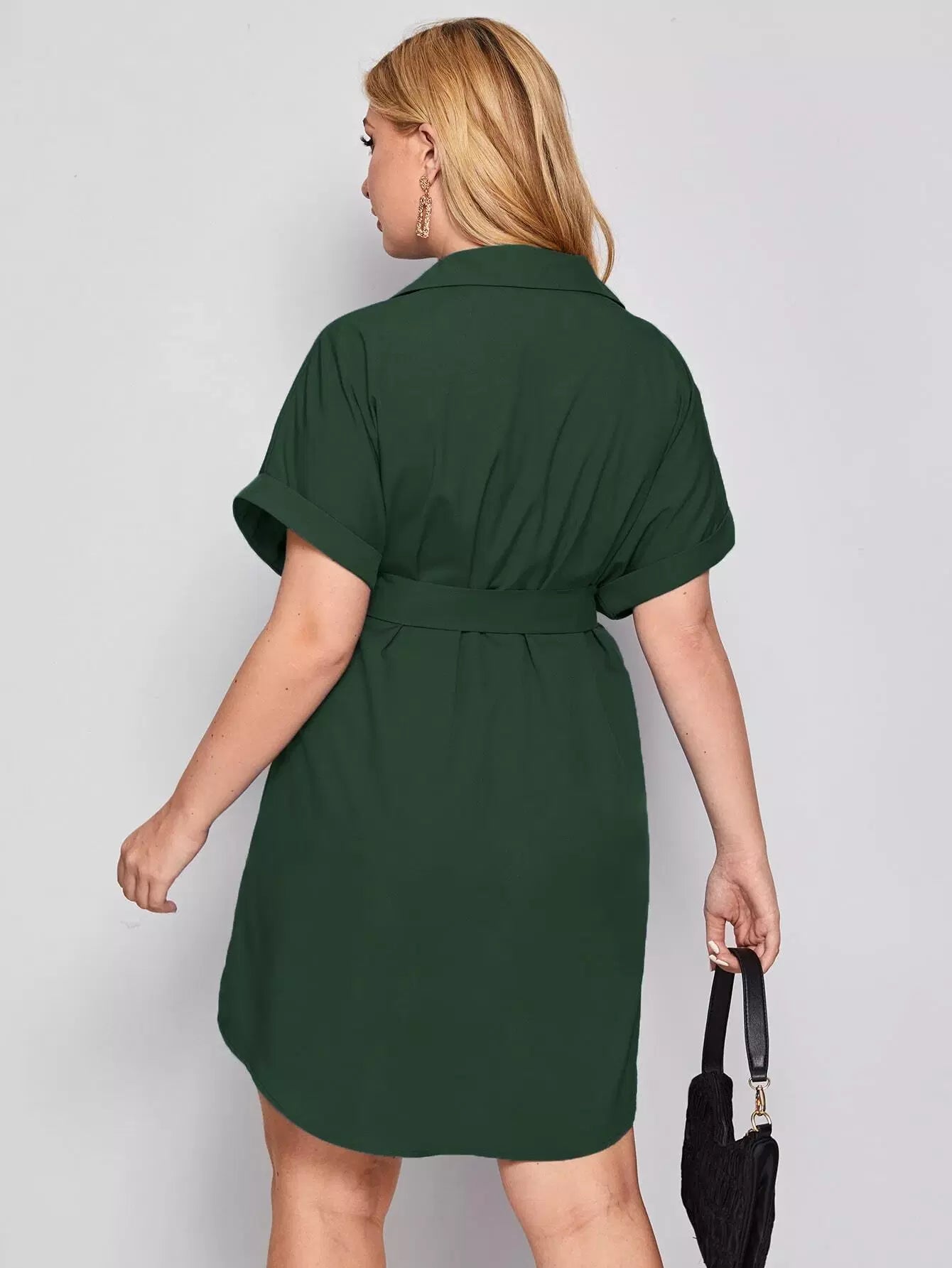 فستان قميص بأكمام دولمان بأكمام ملفوفة ومنحنية الحاشية