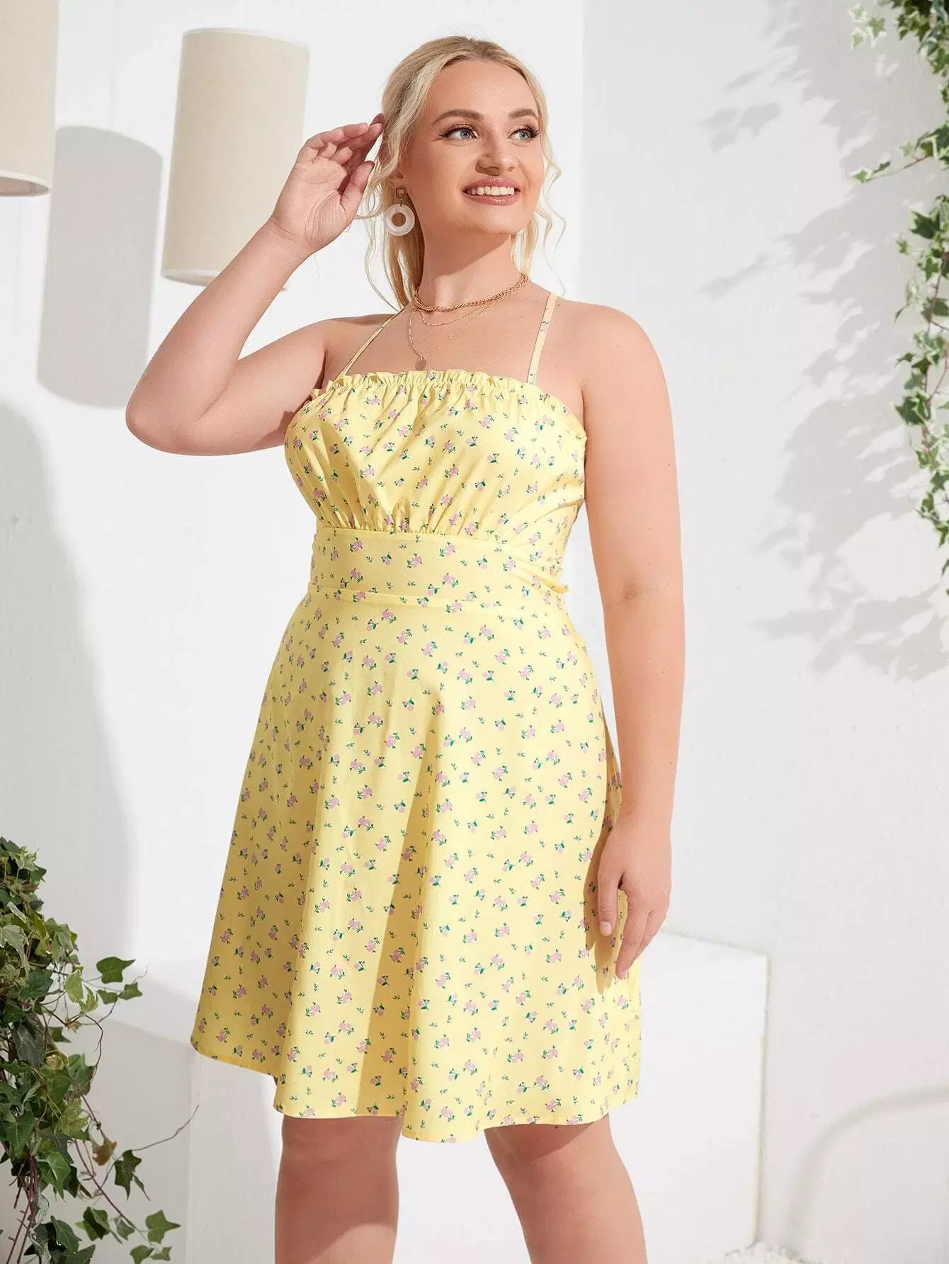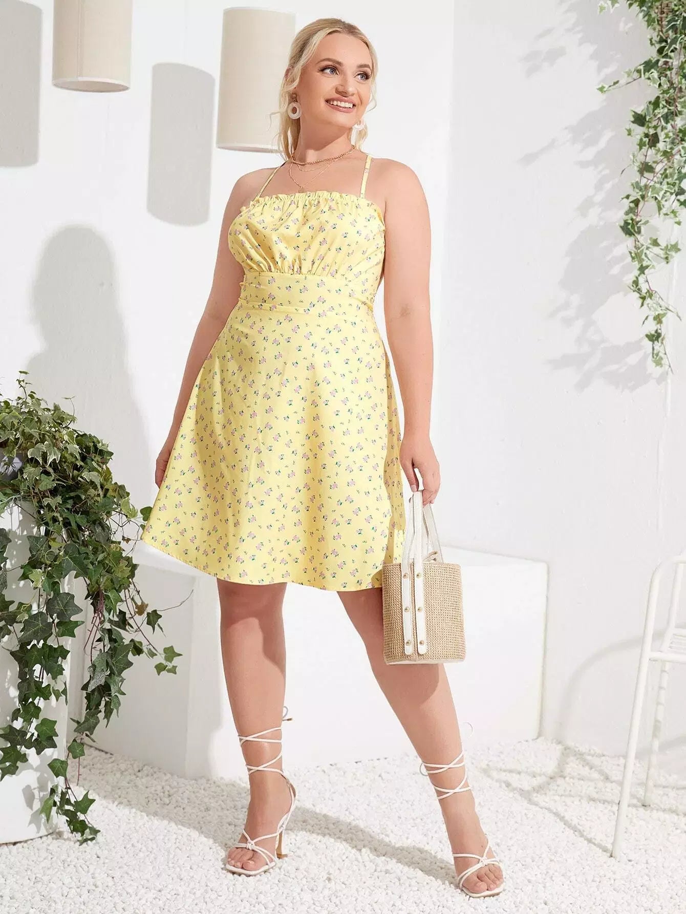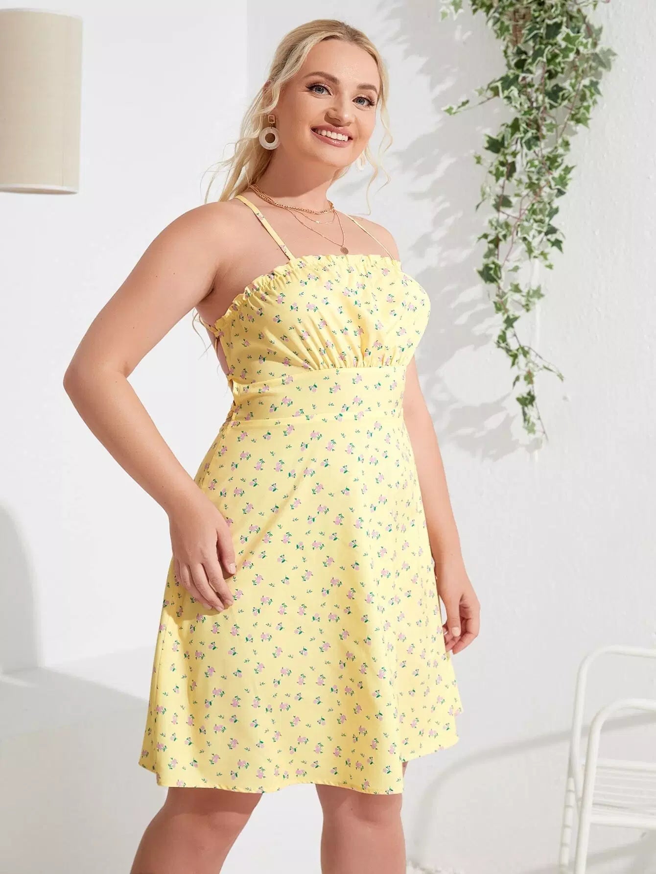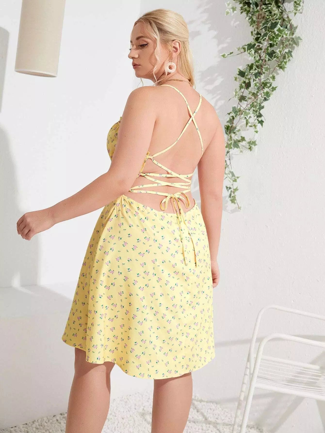 فستان قصير مكشكش الصدر مكشوف الصدر مكشوف الظهر دانتيل لأعلى فستان قصير مكشوف الظهر مزين بالورود