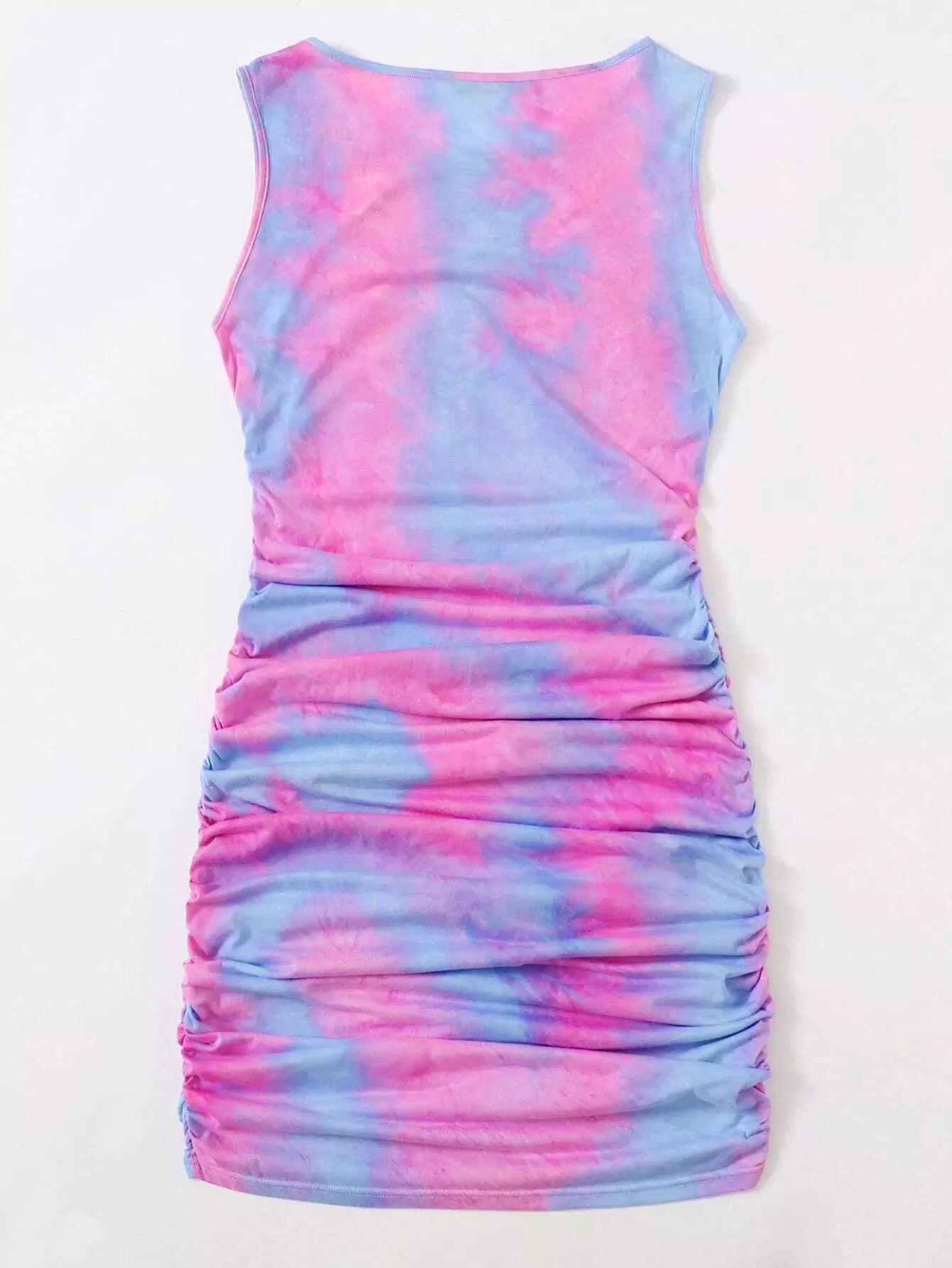 فستان بوديكون مصبوغ بتفاصيل مكشكشة زائد