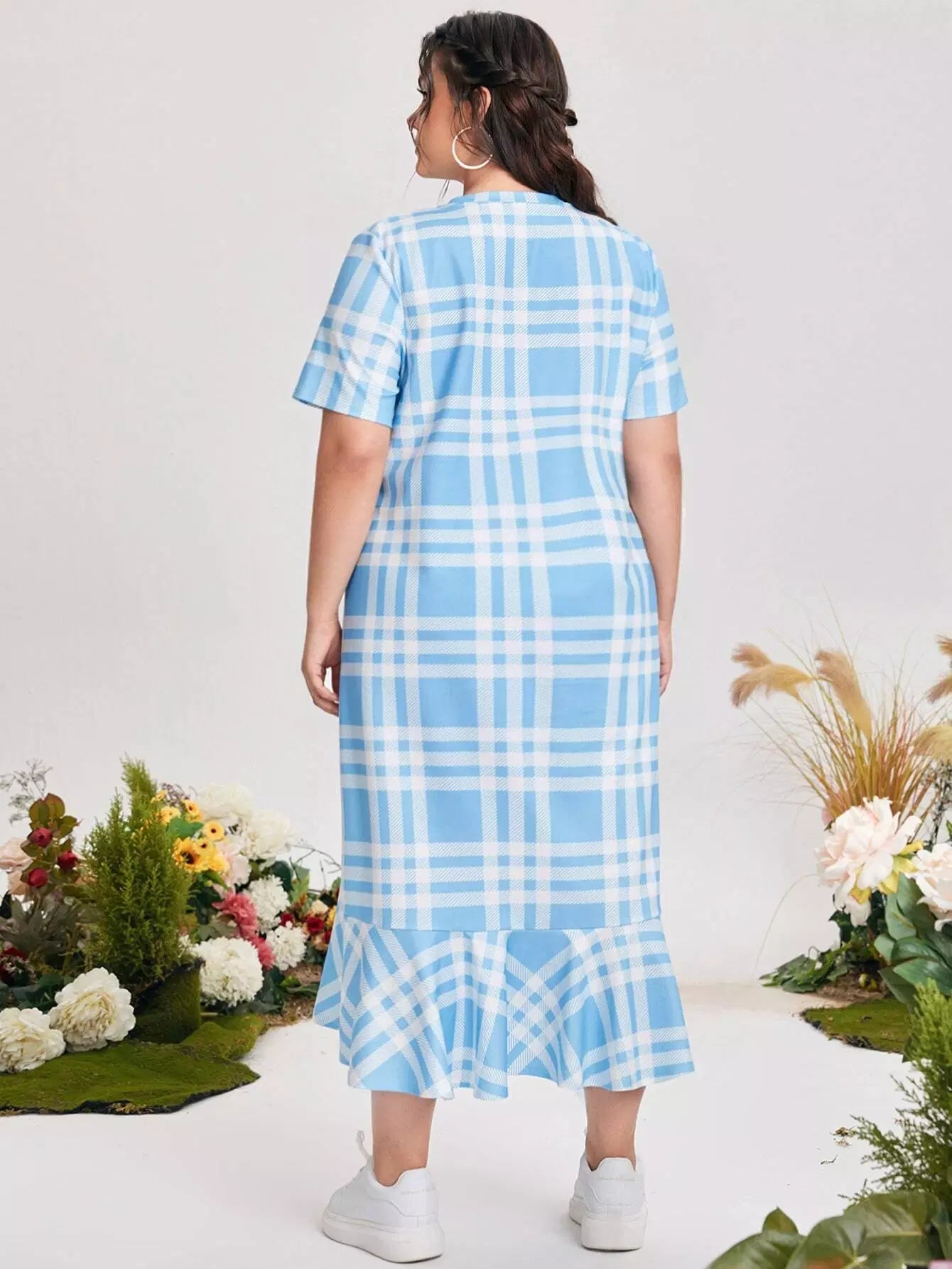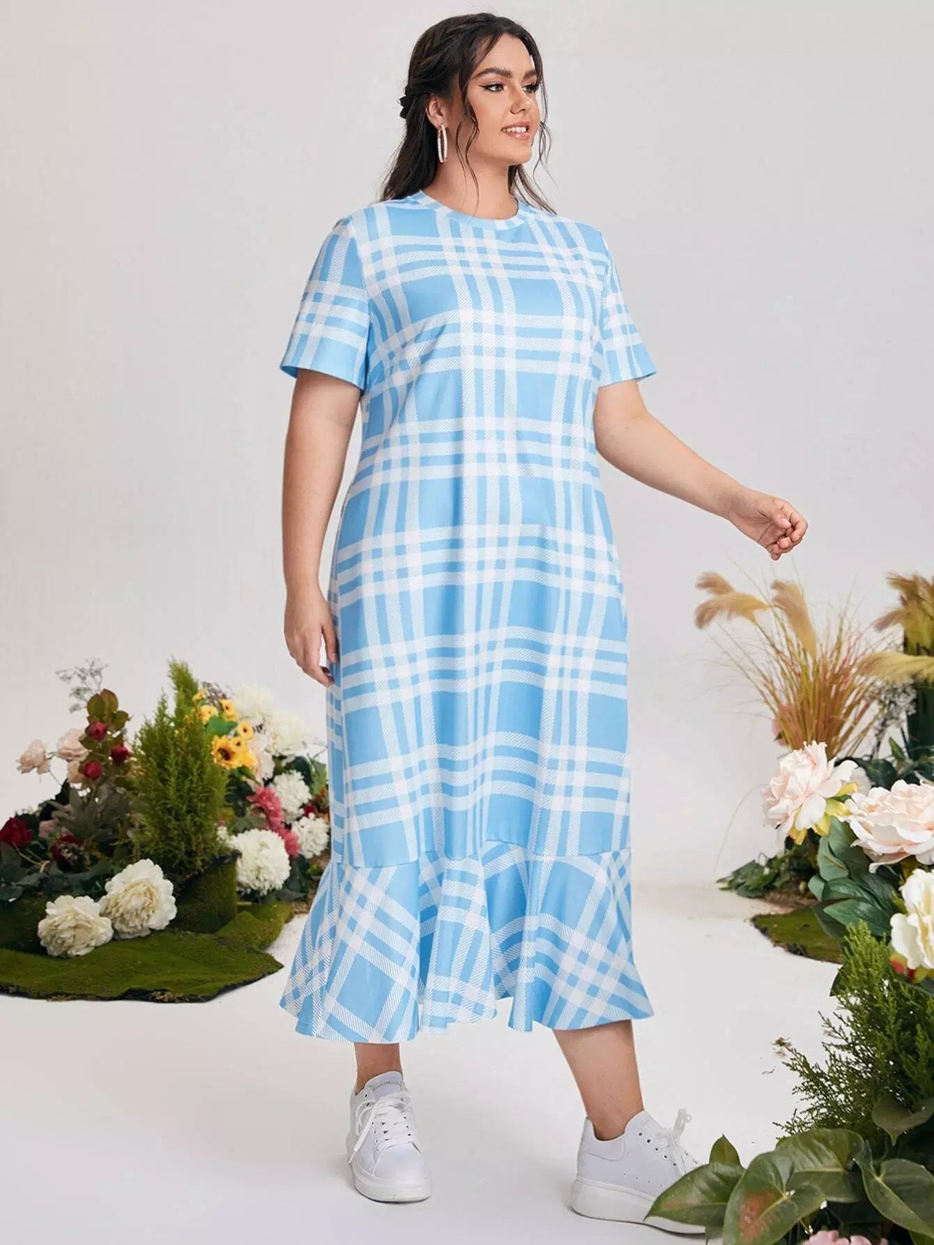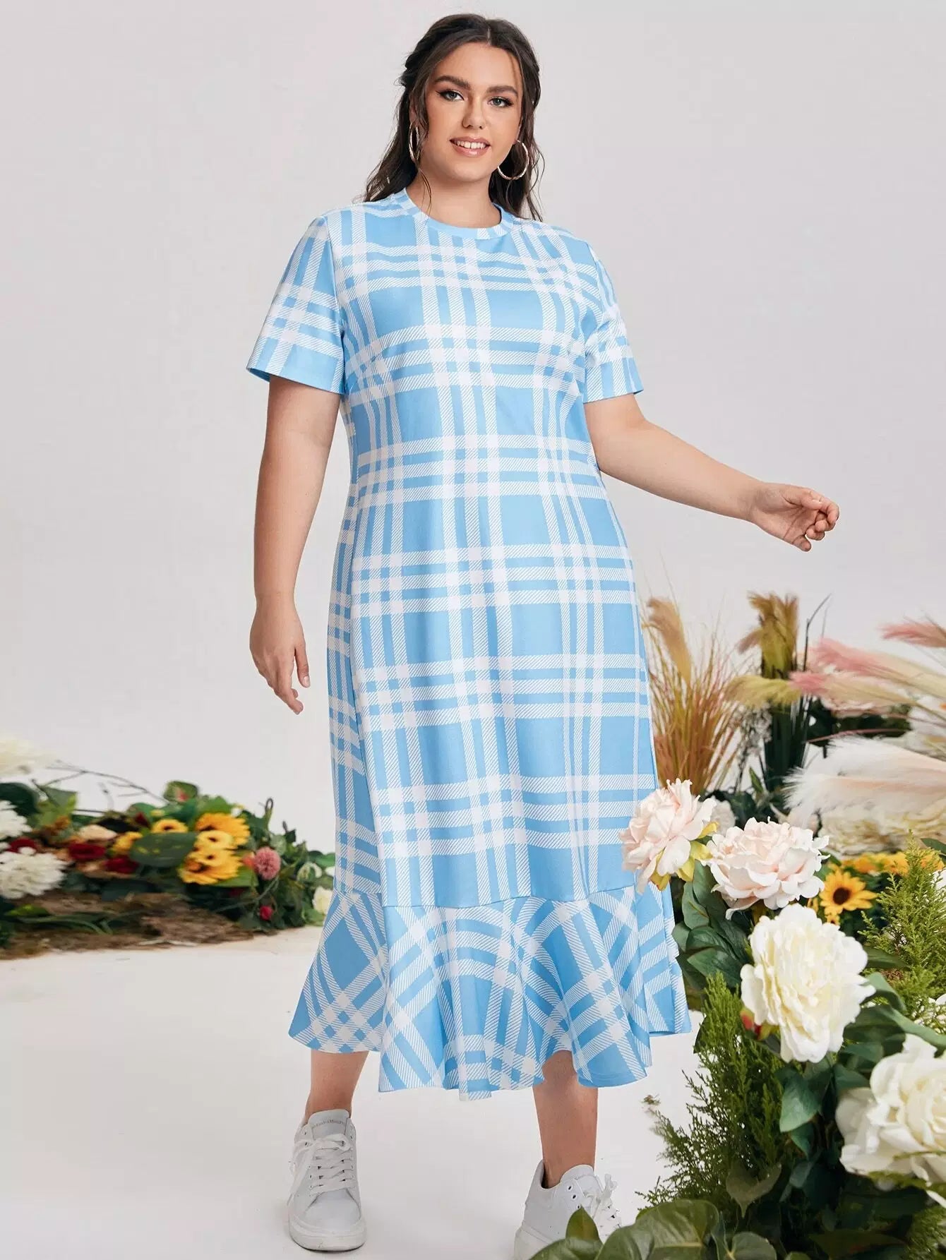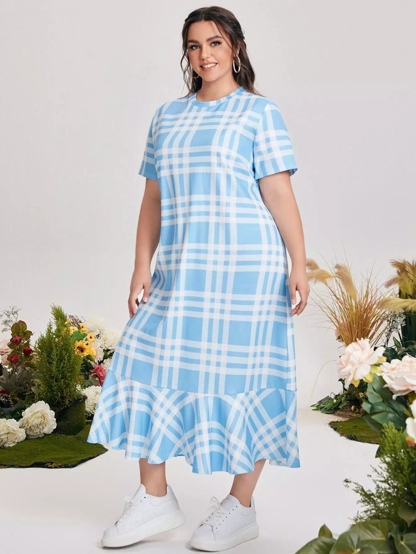 فستان بطبعة كشكش منقوش بحافة زائد