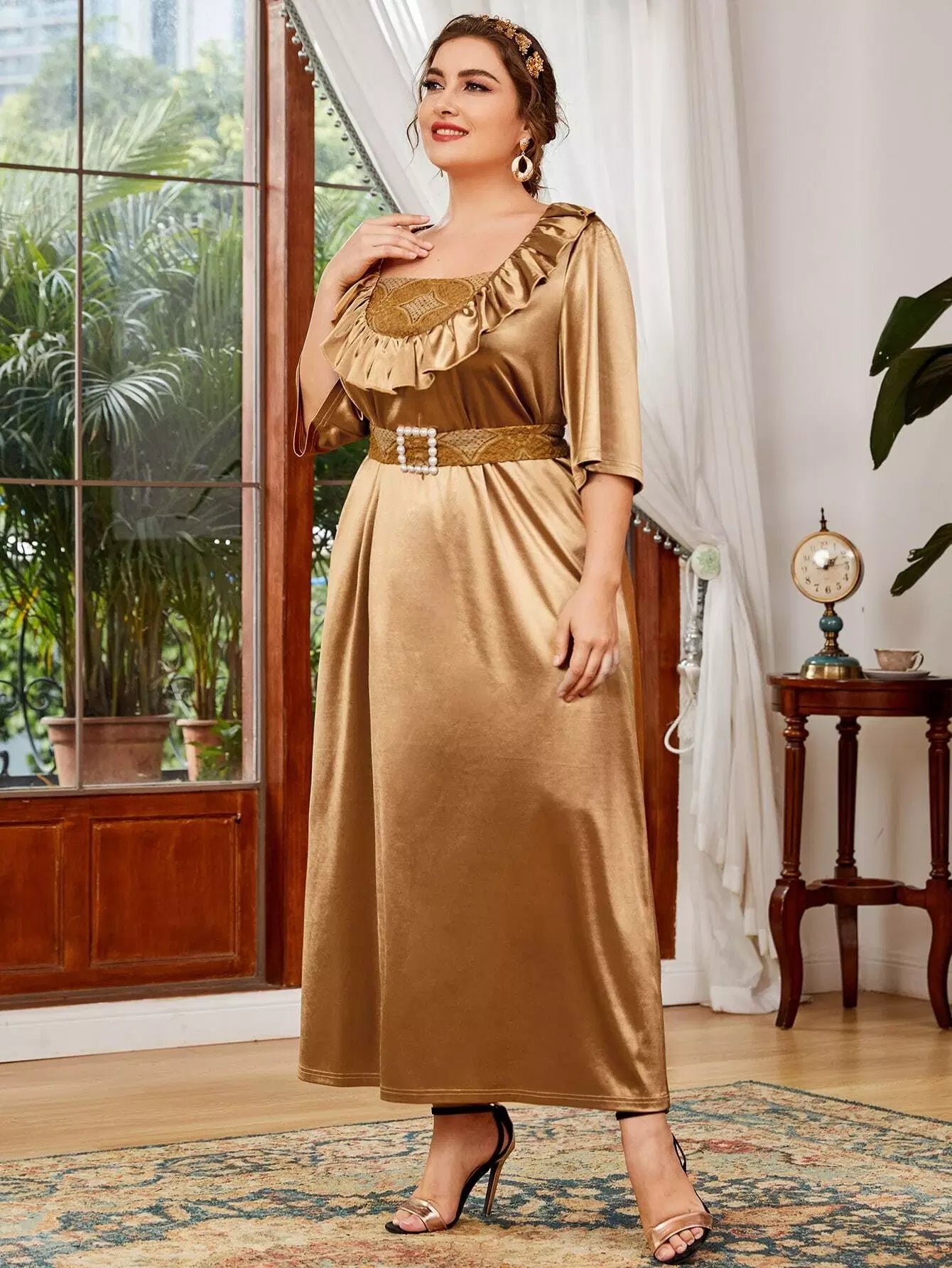 بالإضافة إلى فستان مزين بكشكشة بدون حزام