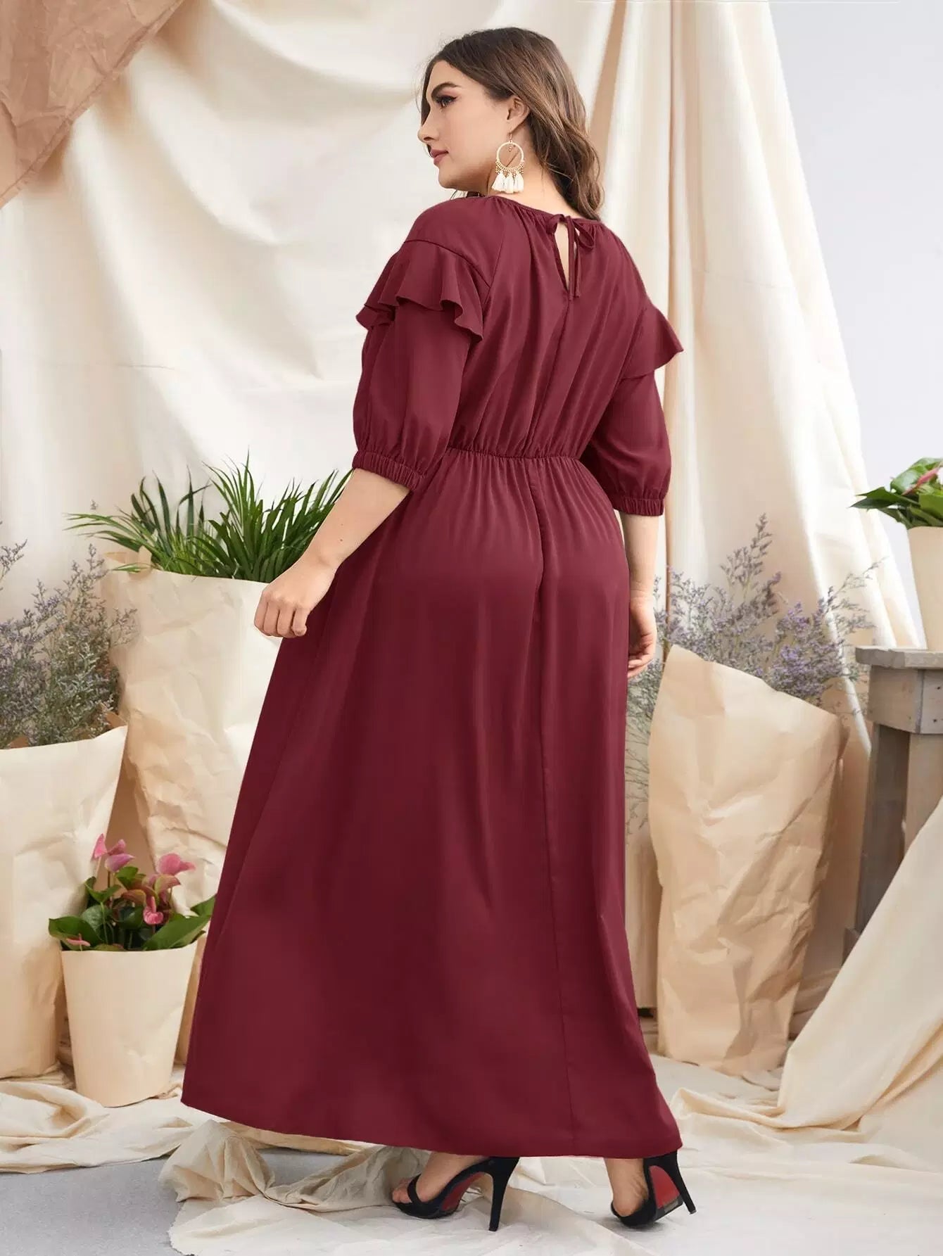 فستان مزين بكشكش مزين بربطة عنق على شكل حرف A