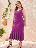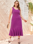 فستان سادة بحافة مكشكشة برقبة مكشكشة برقبة مكشكشة زائد