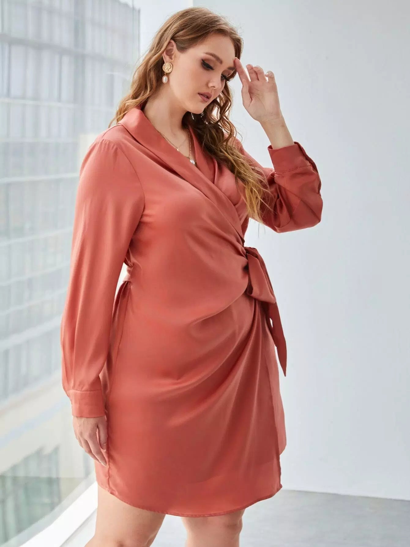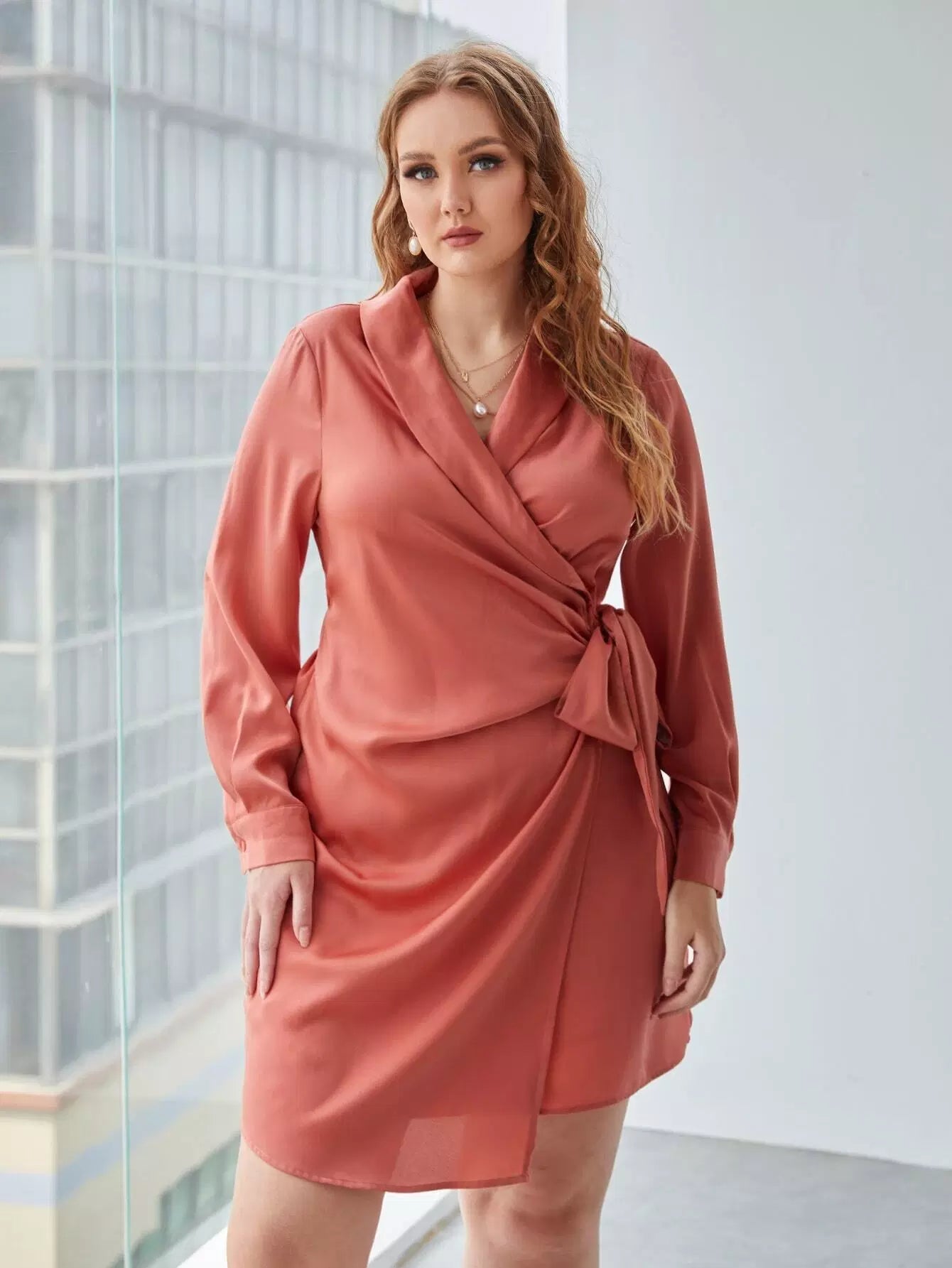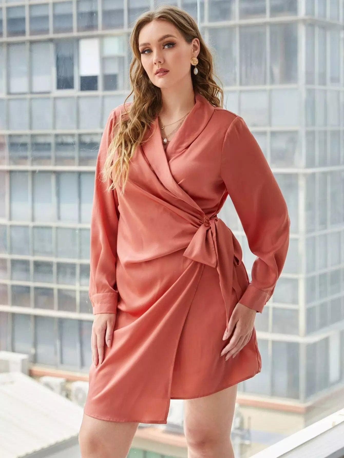 فستان بياقة شال بلس بياقة شال ملفوف بربطة جانبية