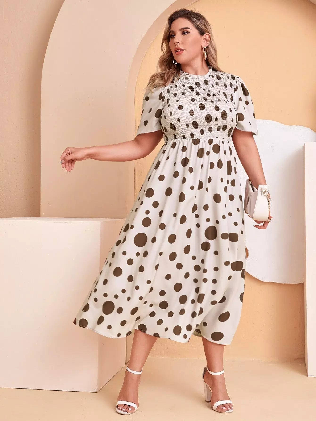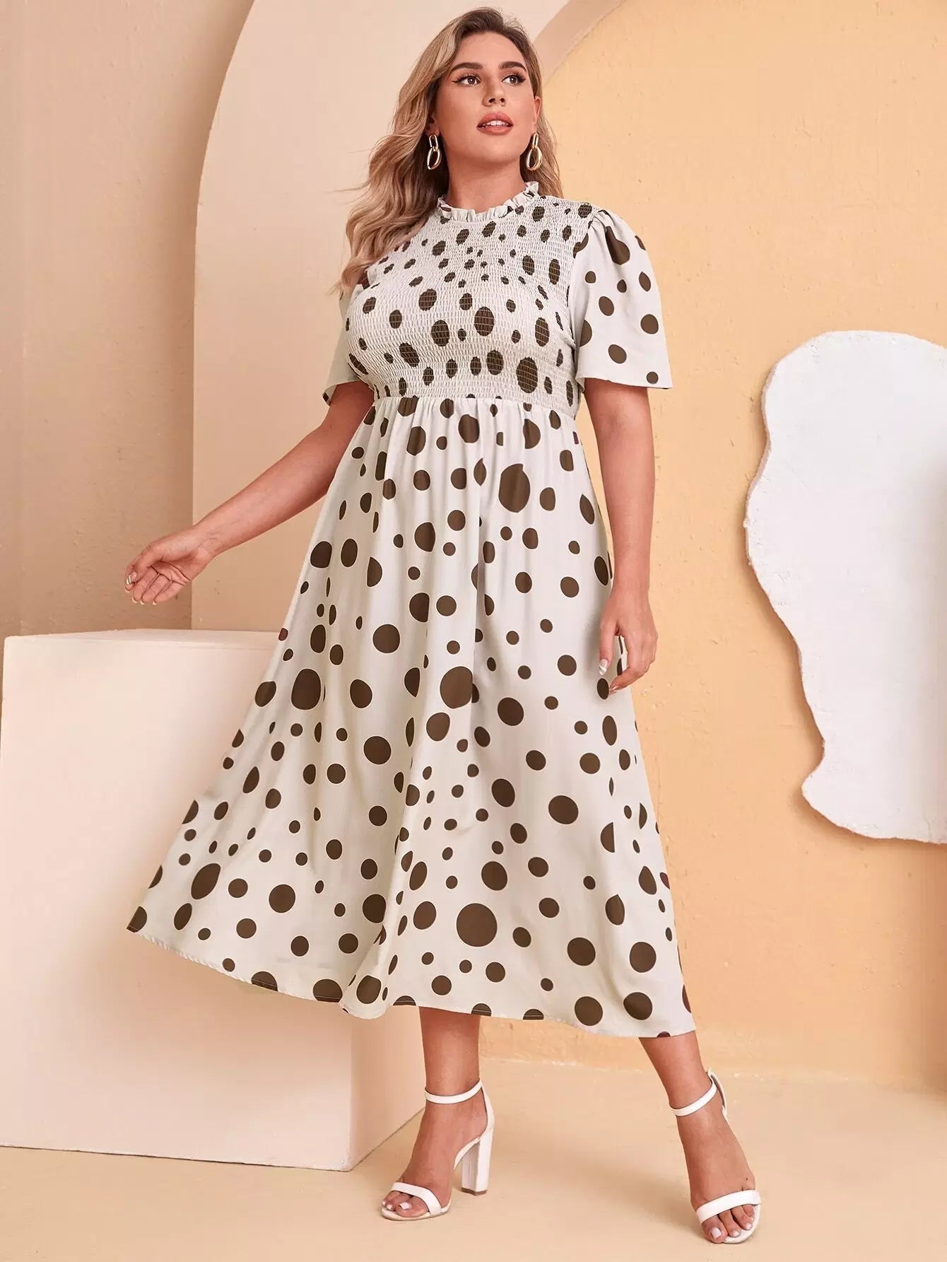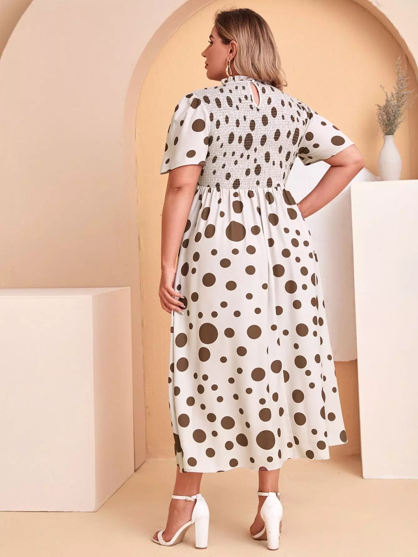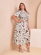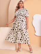 فستان منقّط منقّط بخصر شيرد زائد