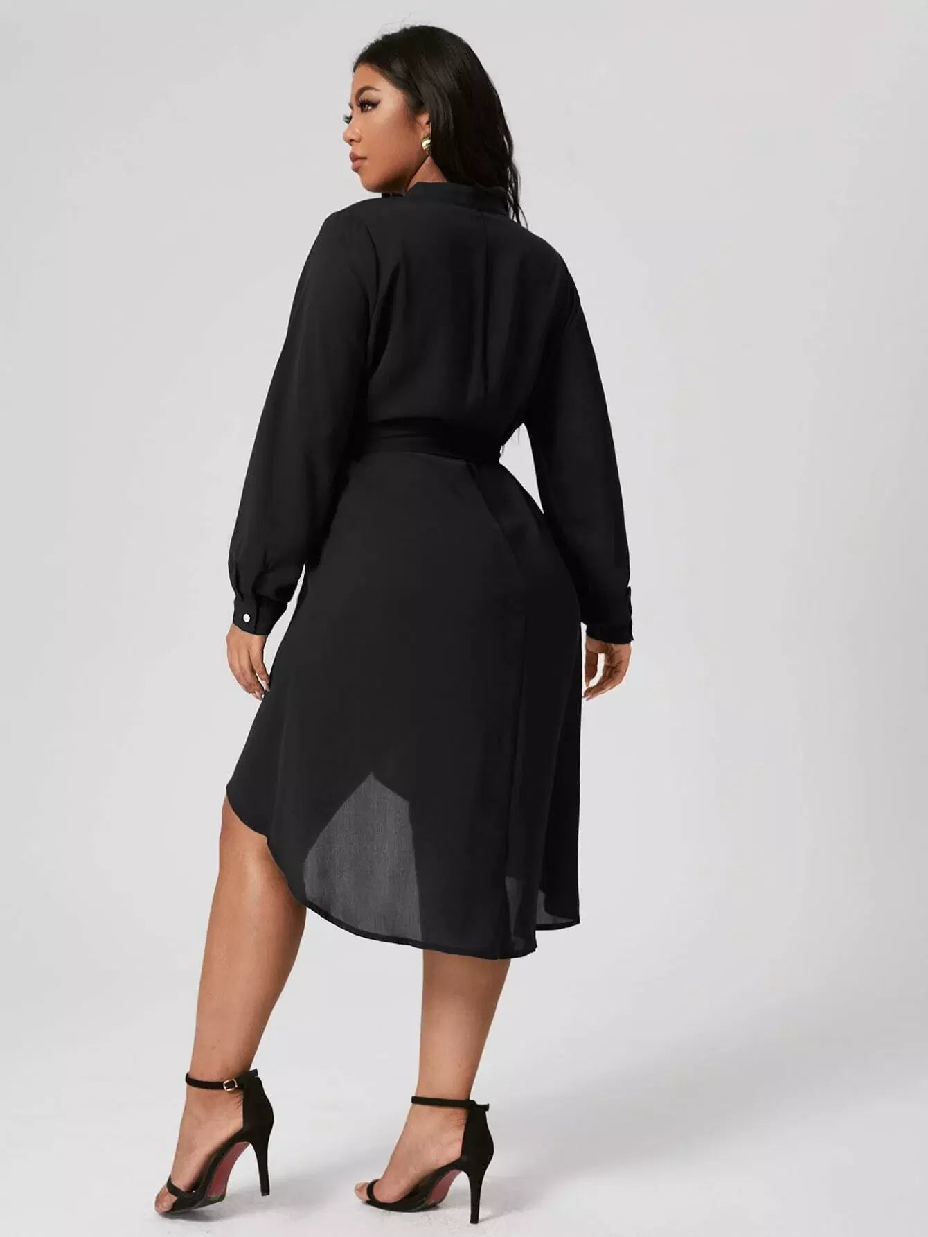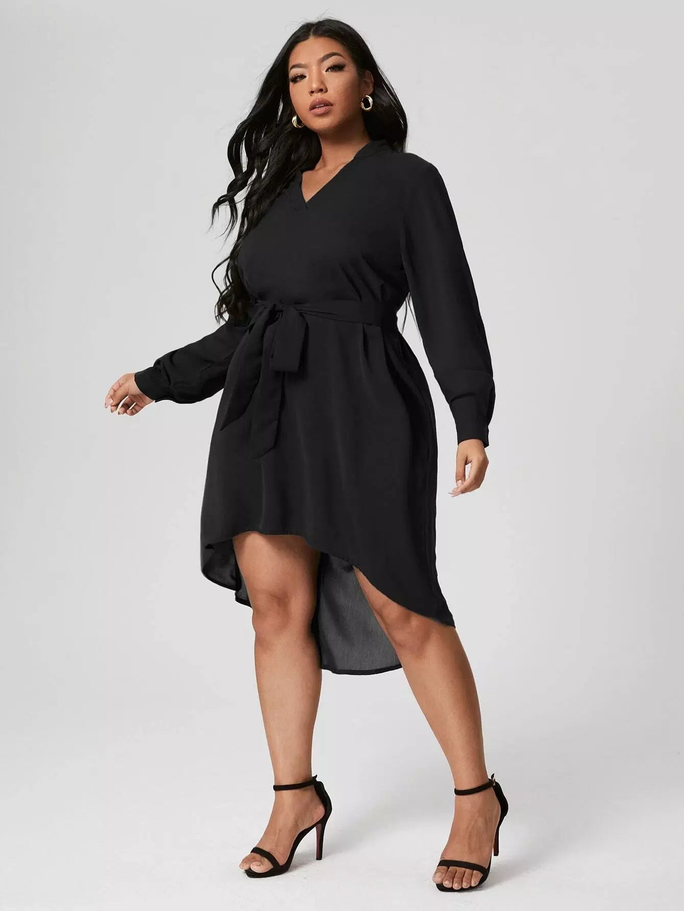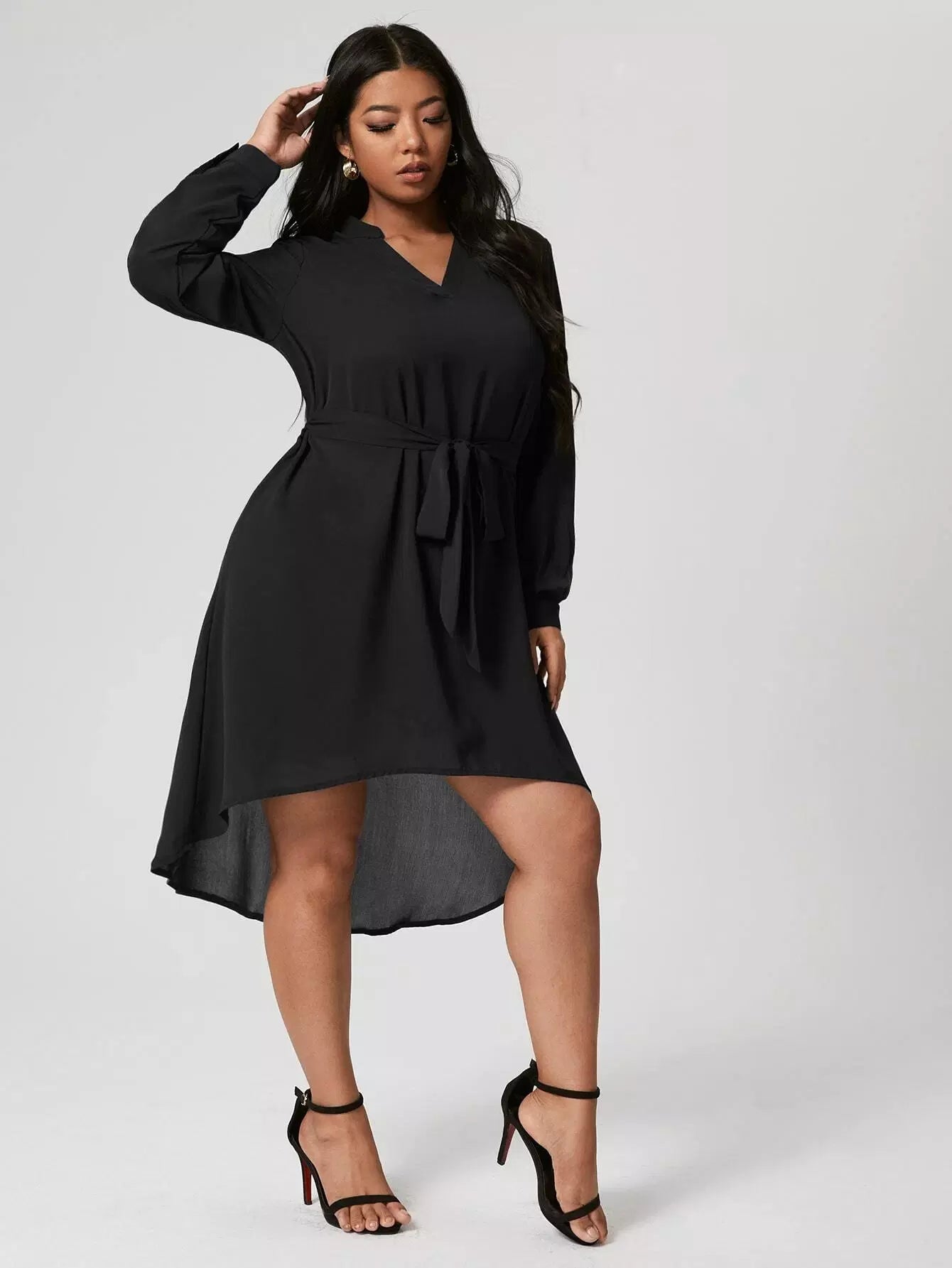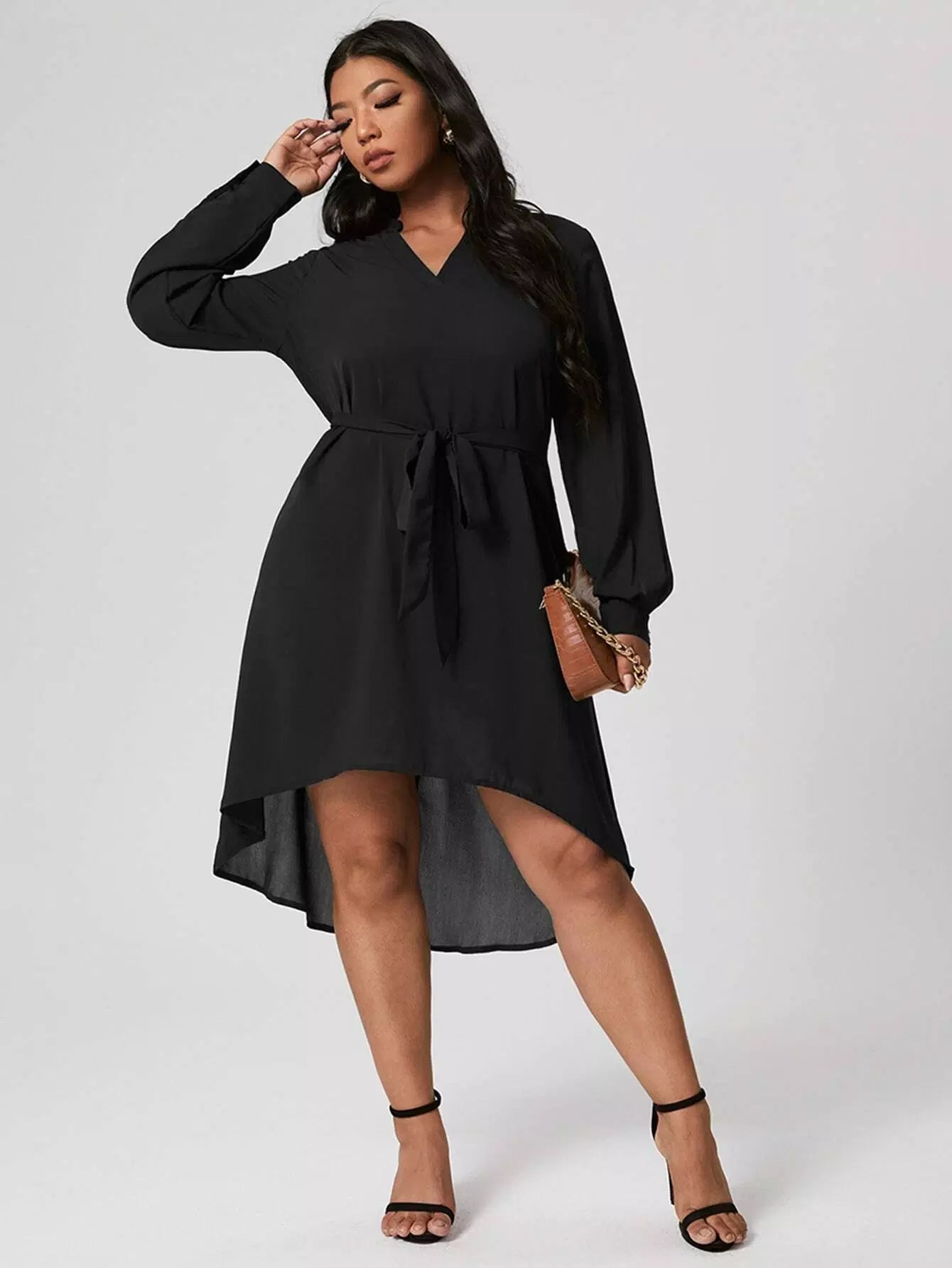 بالإضافة إلى فستان متين مرتفع ومنخفض بدون حزام