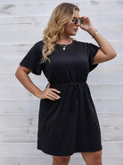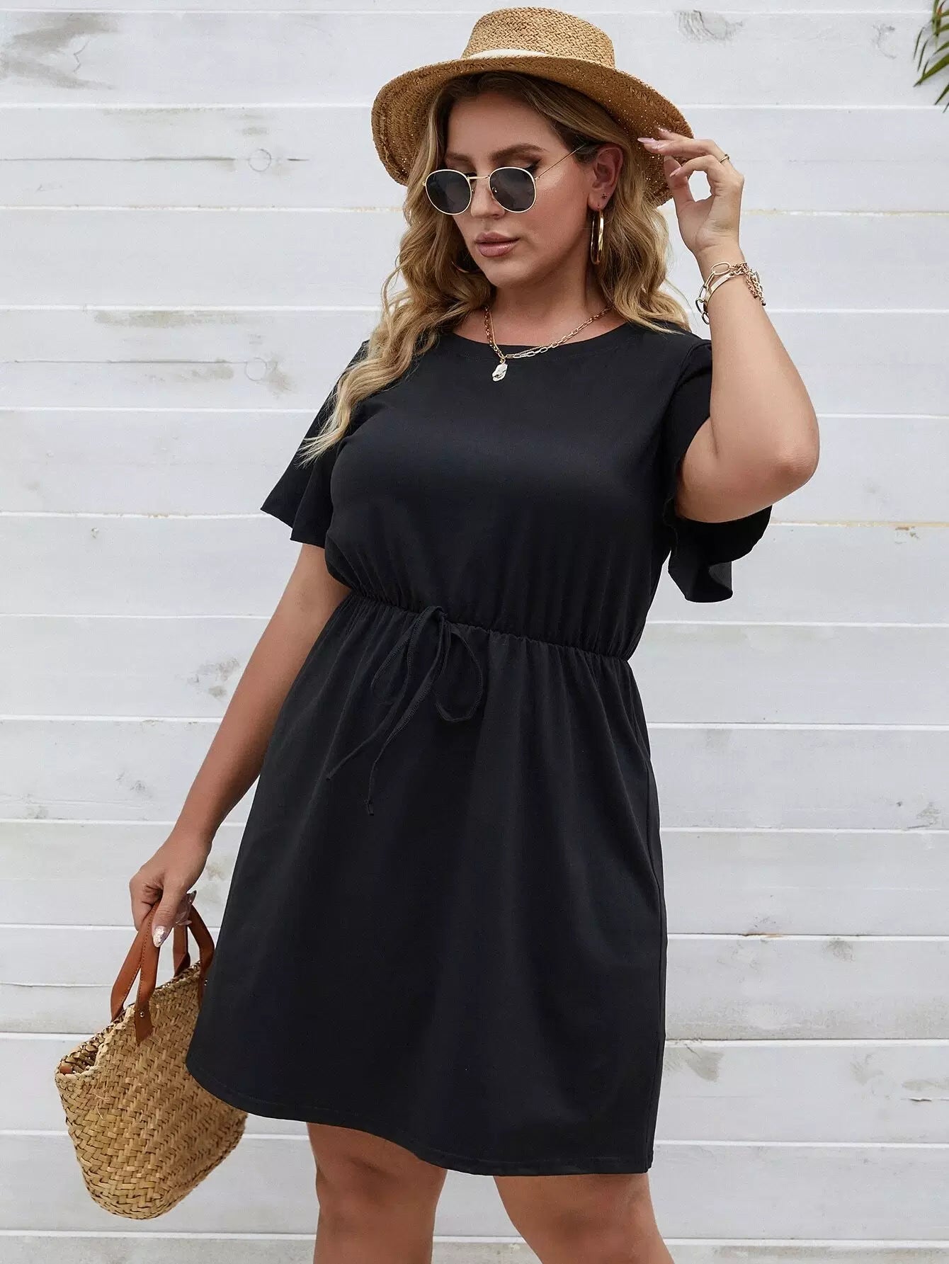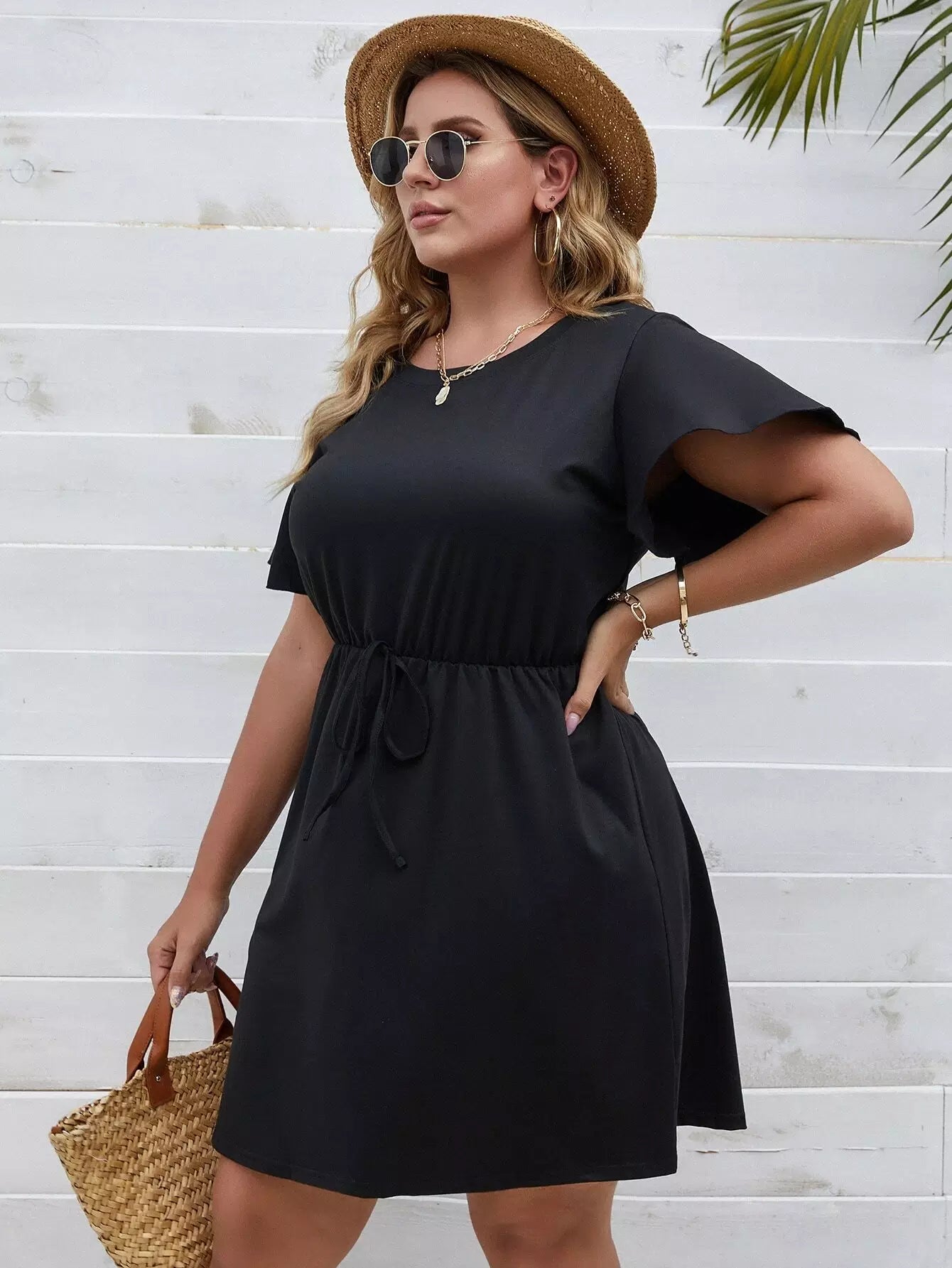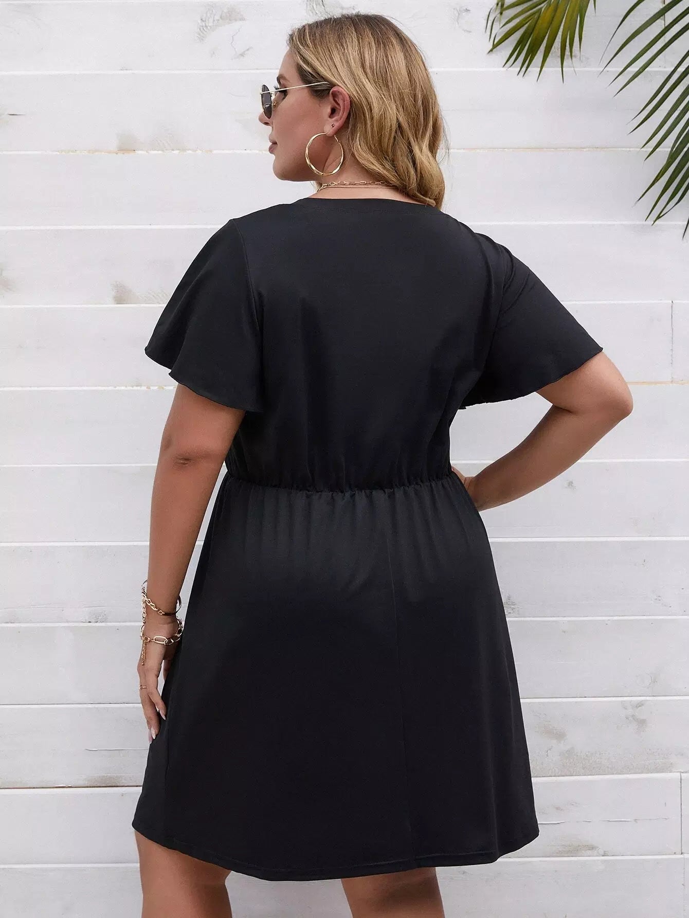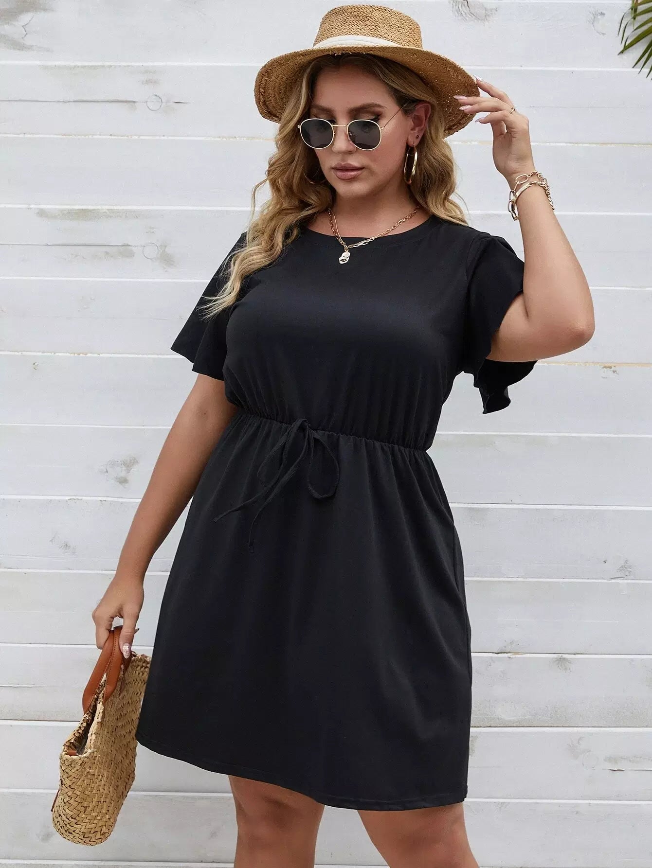 فستان بأكمام فراشة سادة بأربطة بأكمام زائد