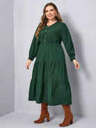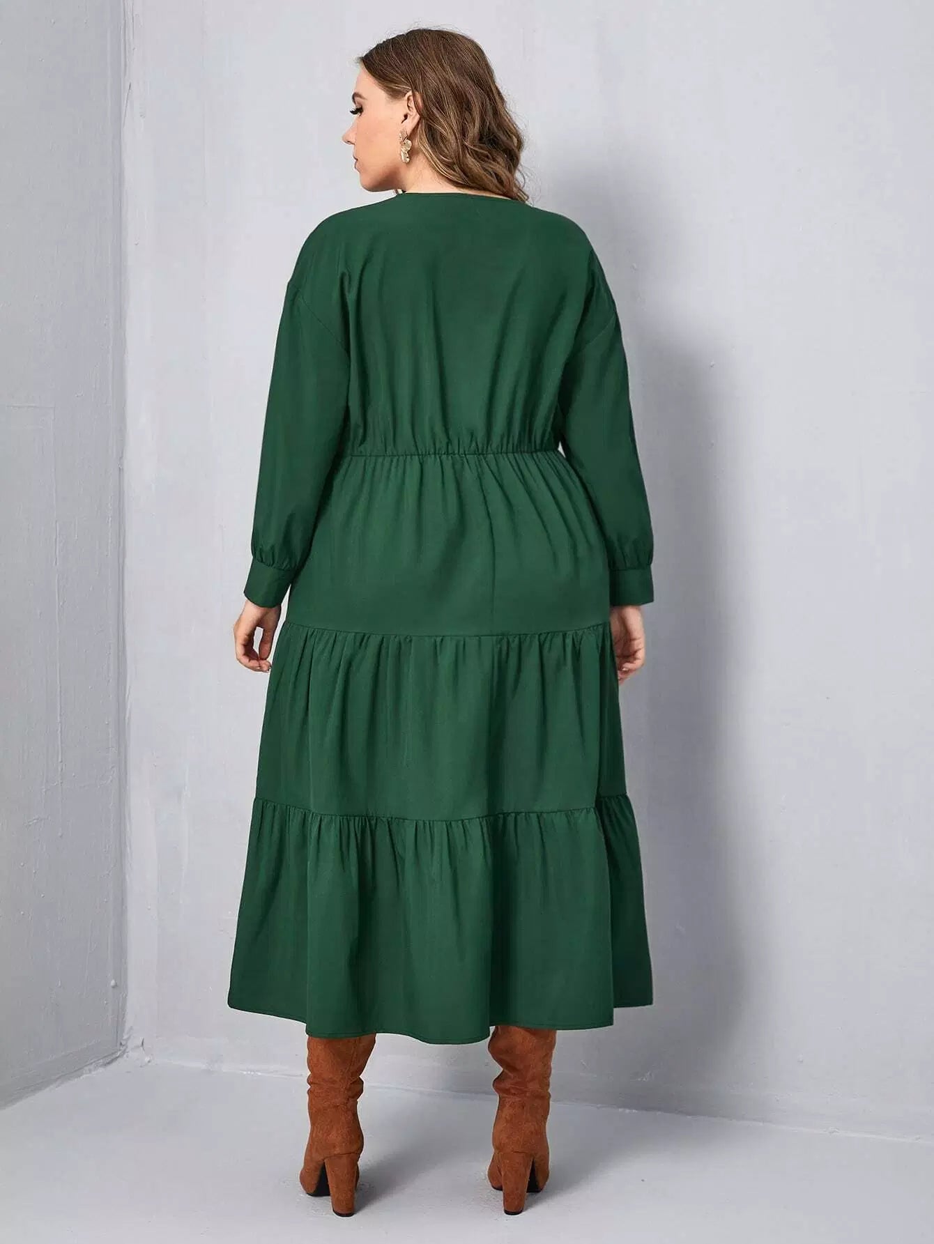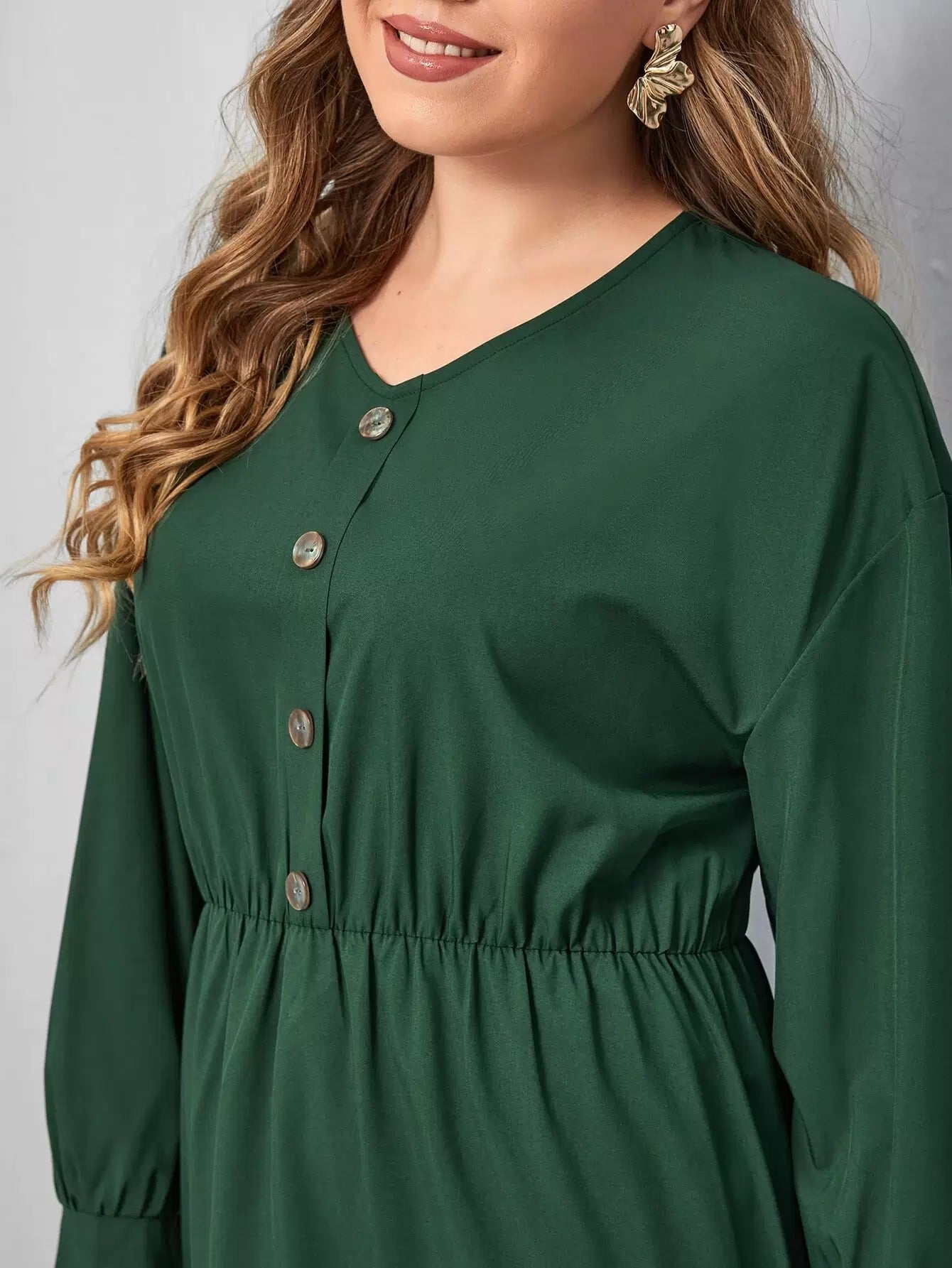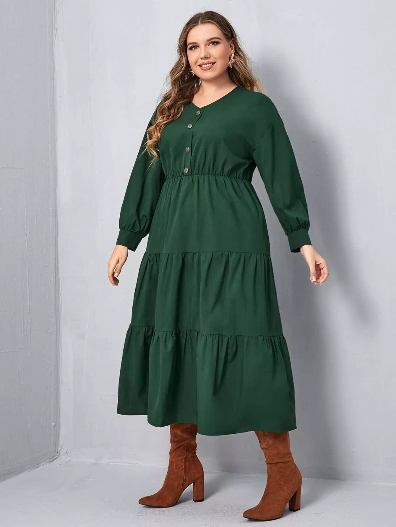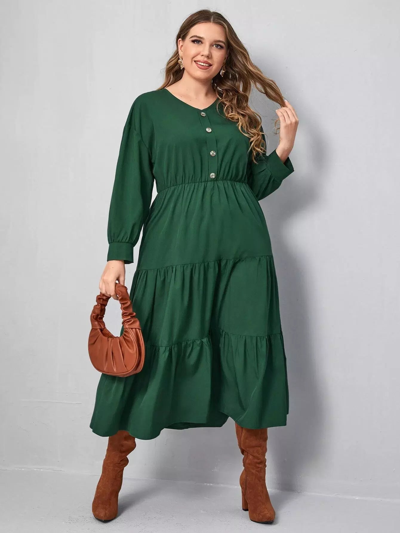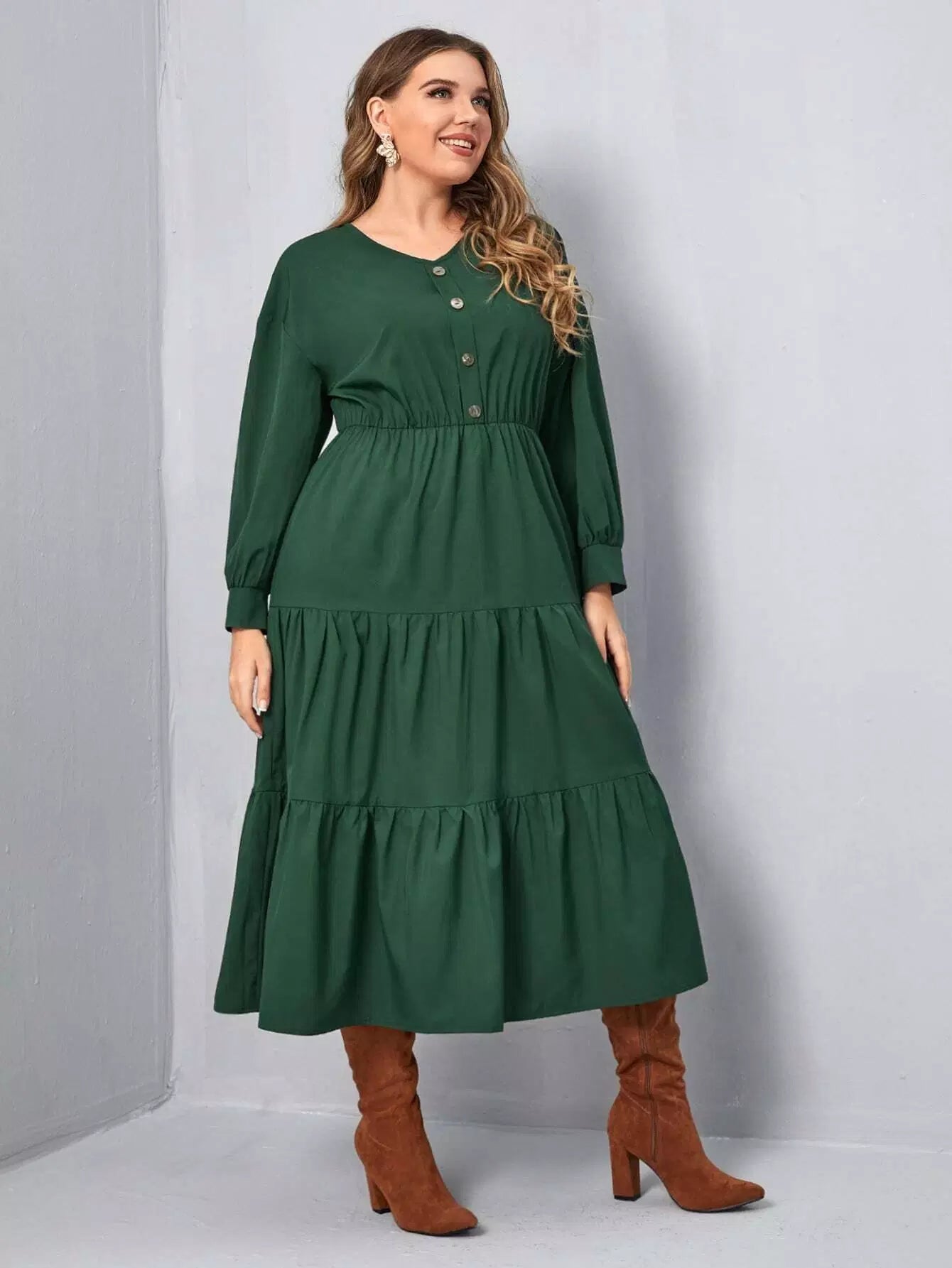 فستان بقصّة زائد سادة مزين بأزرار مزركشة منفوشة الحواف