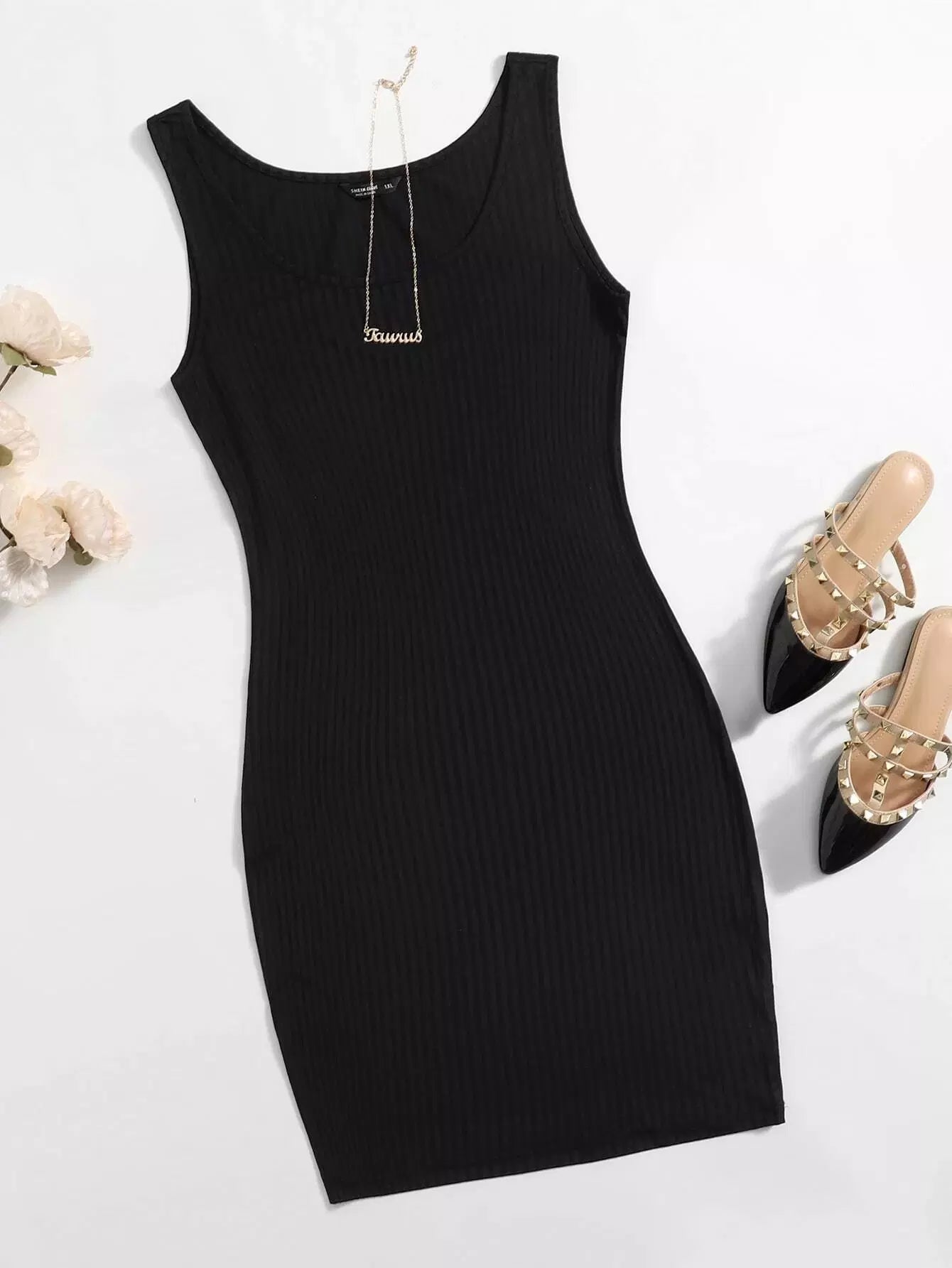 فستان بوديكون بحياكة ضلعية سادة بلس
