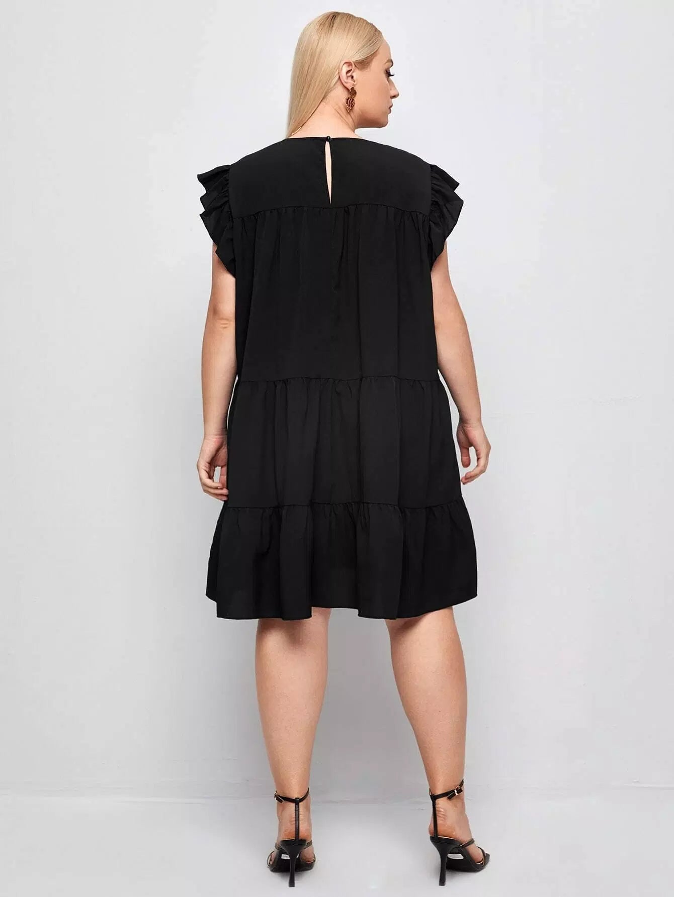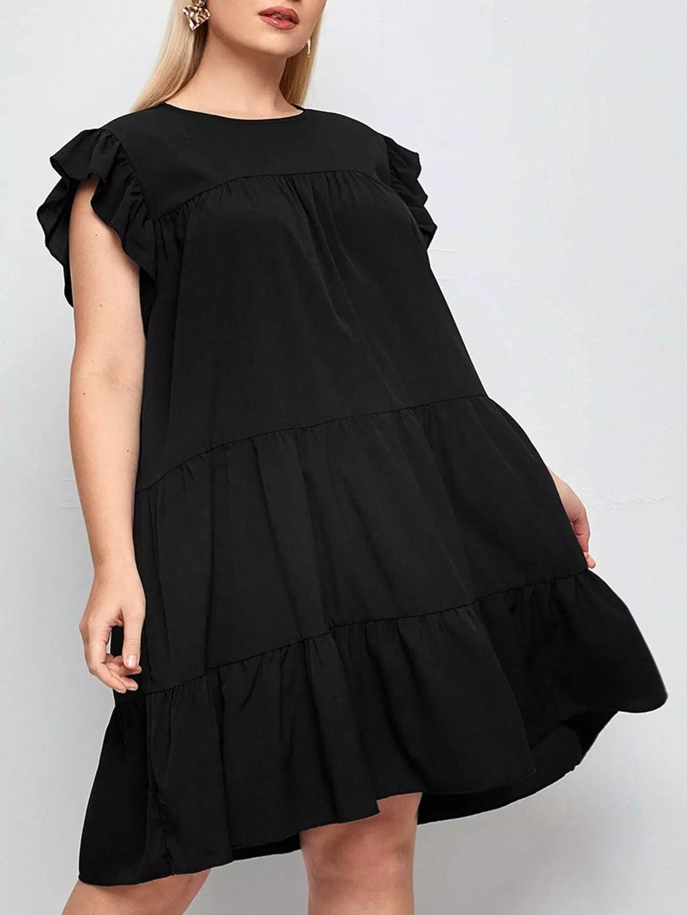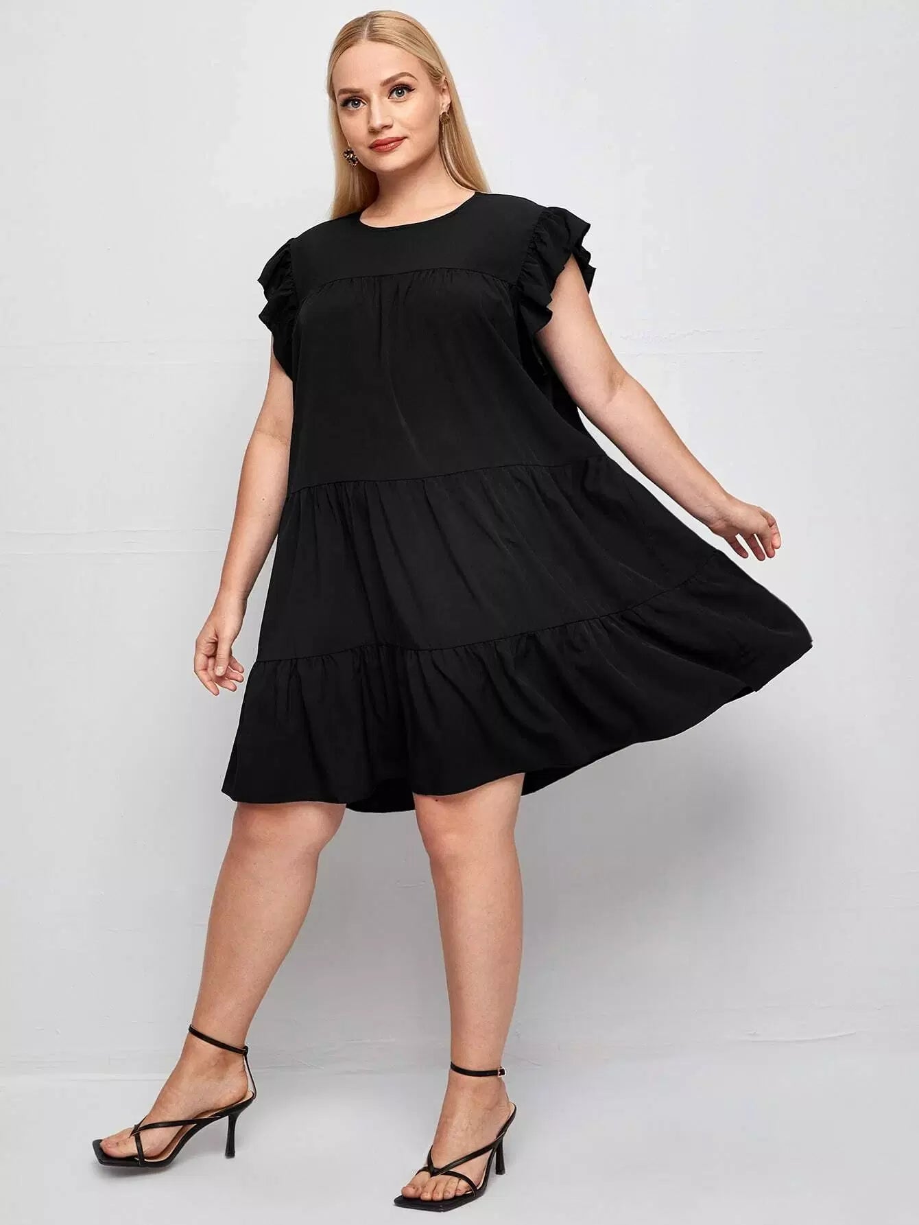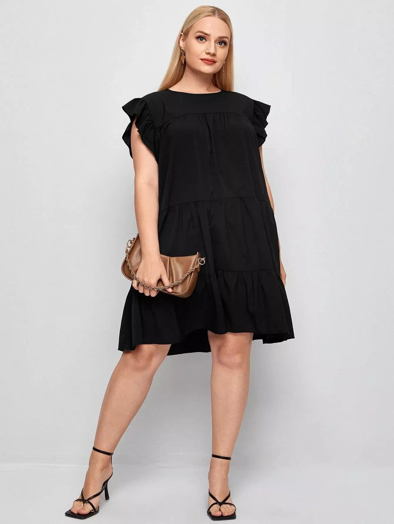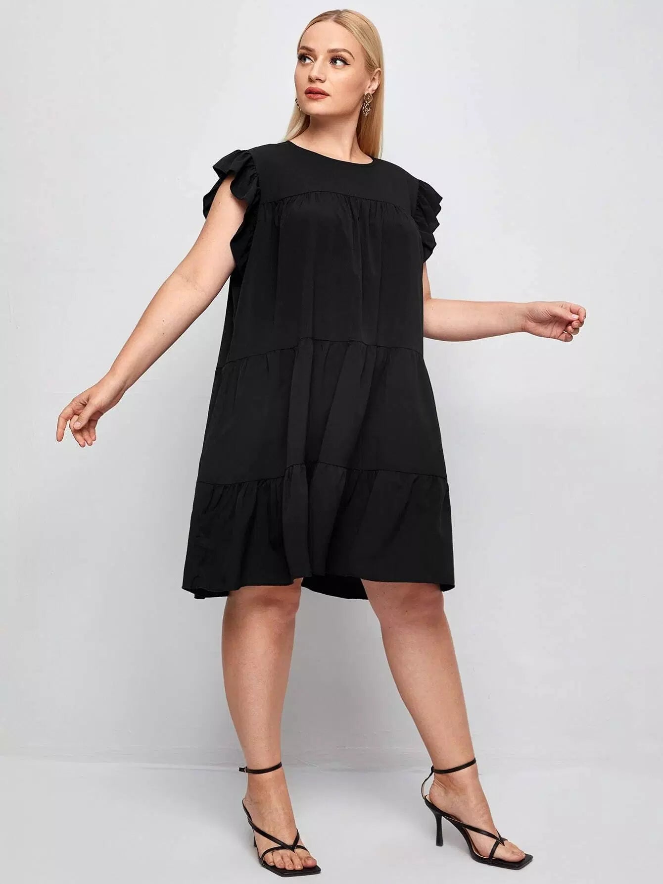 فستان سموك بحواف مكشكشة سادة بلاس سادة