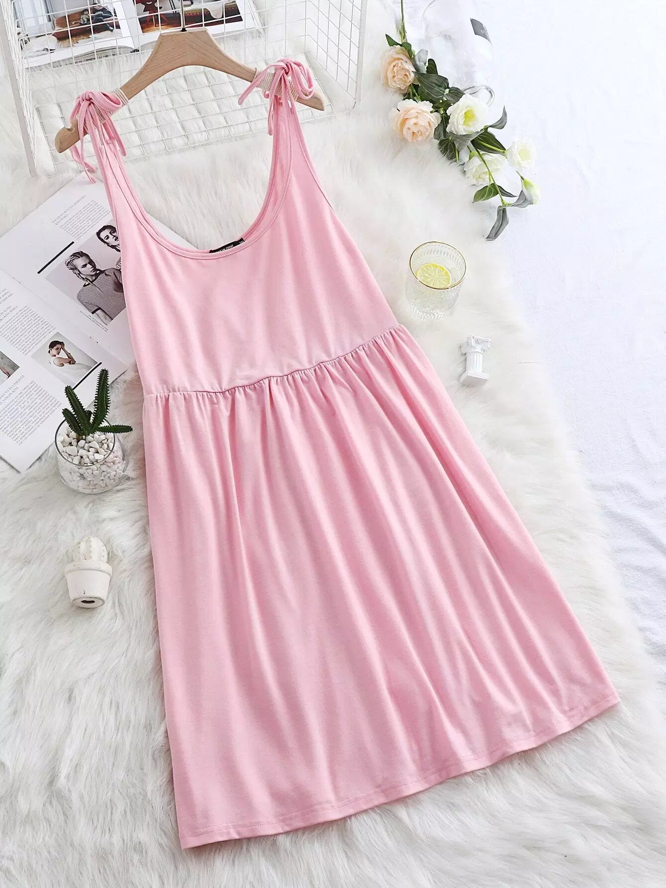 فستان سادة سادة بربطة كتف بربطة كتف سادة