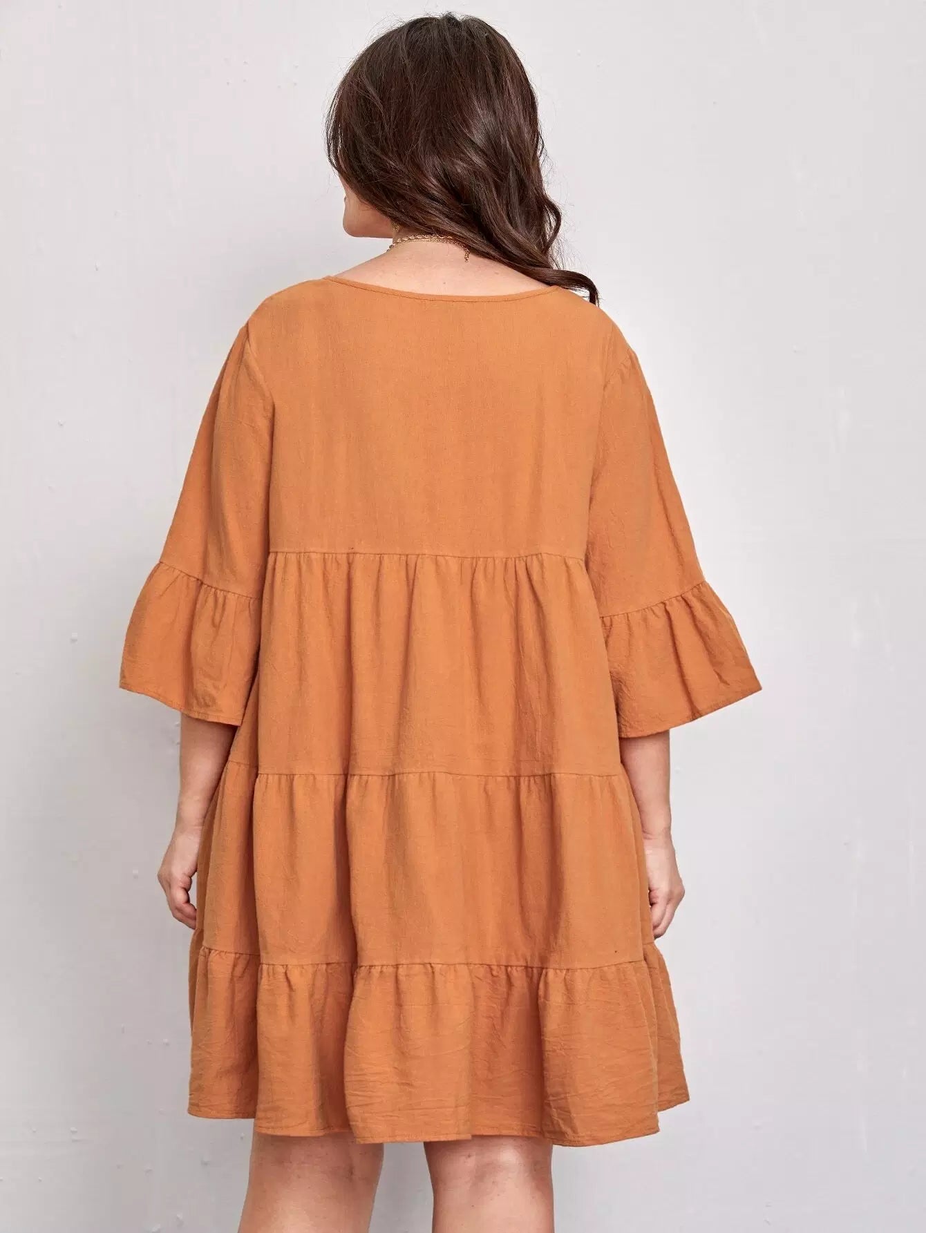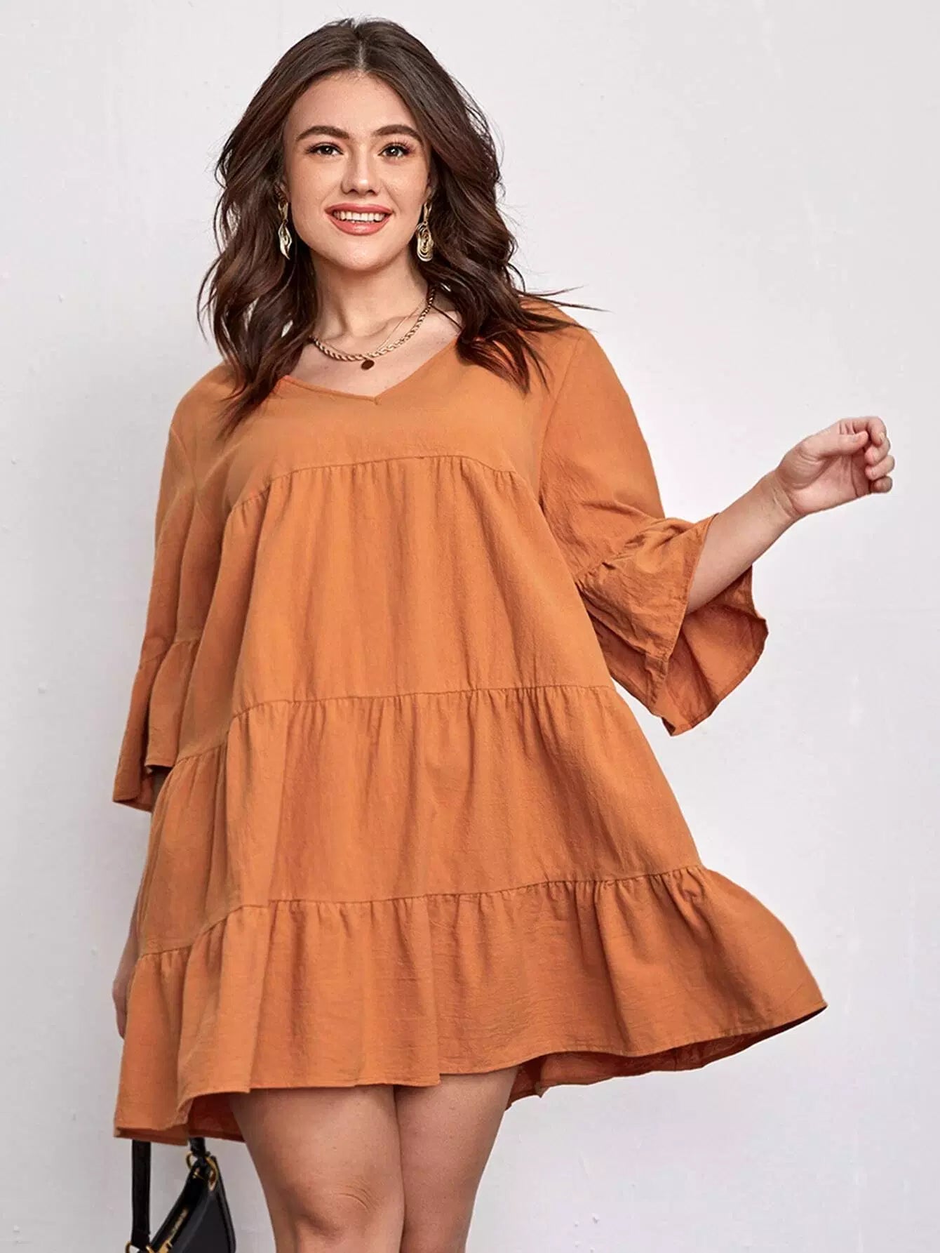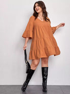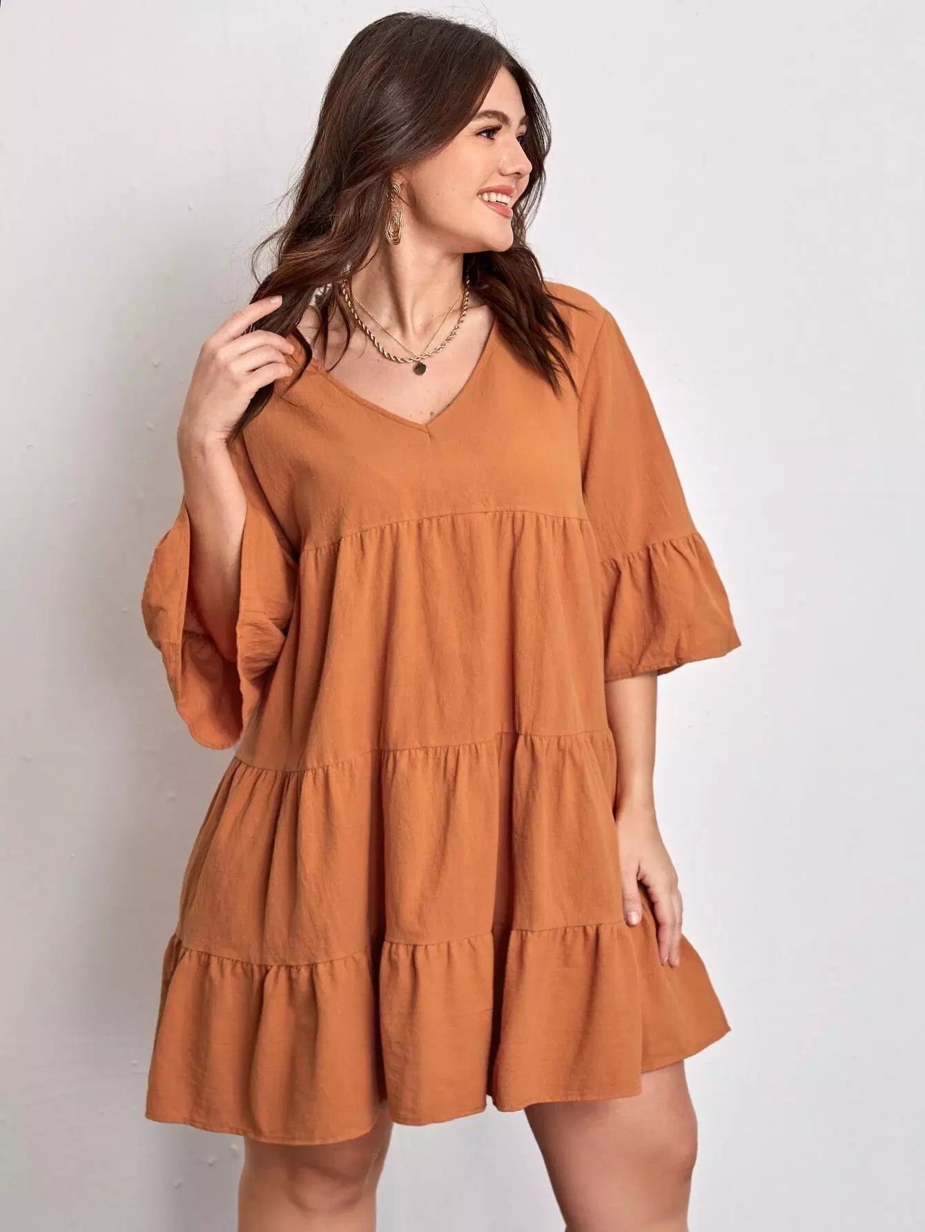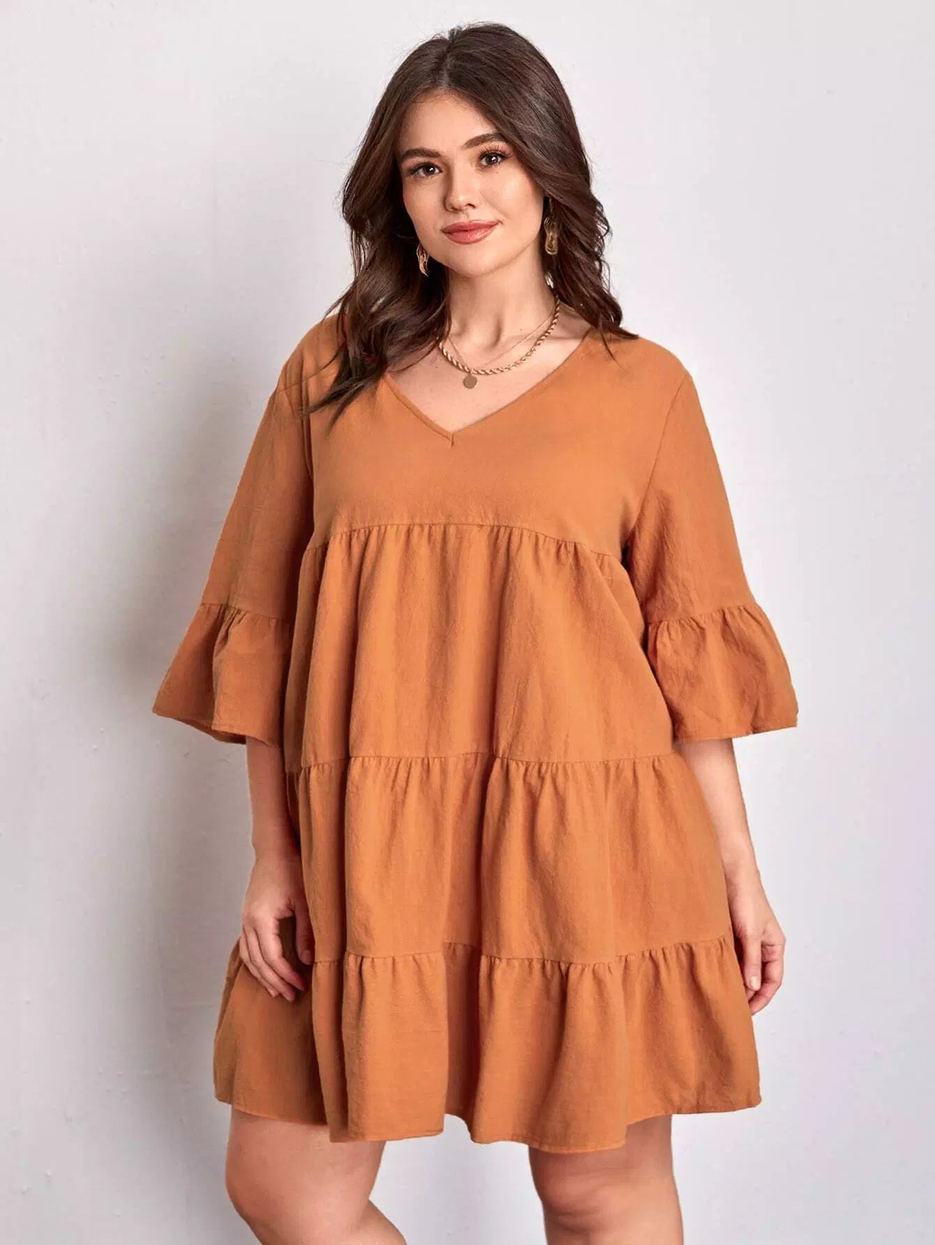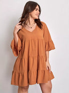فستان سادة برقبة على شكل V برقبة سادة زائد