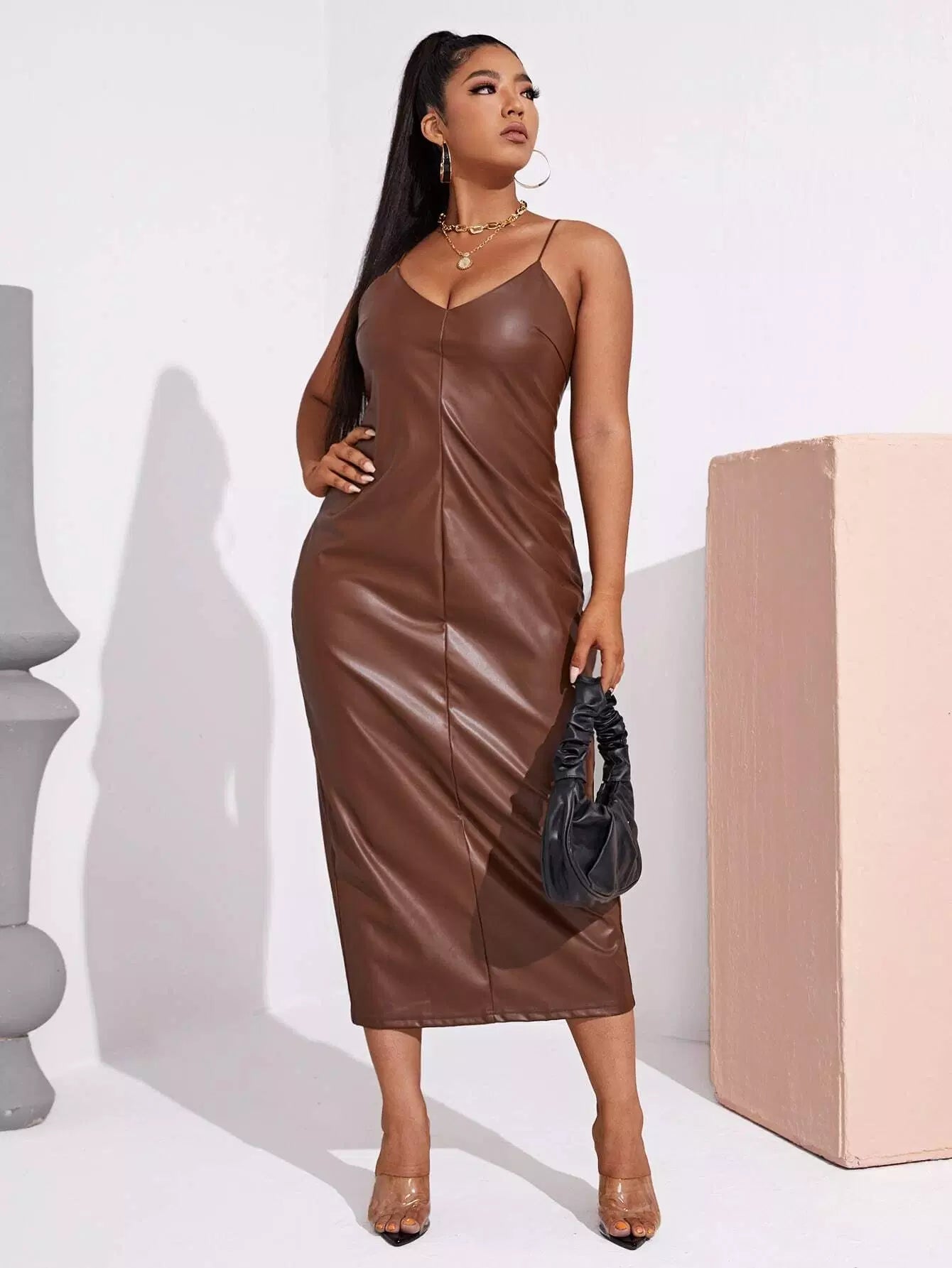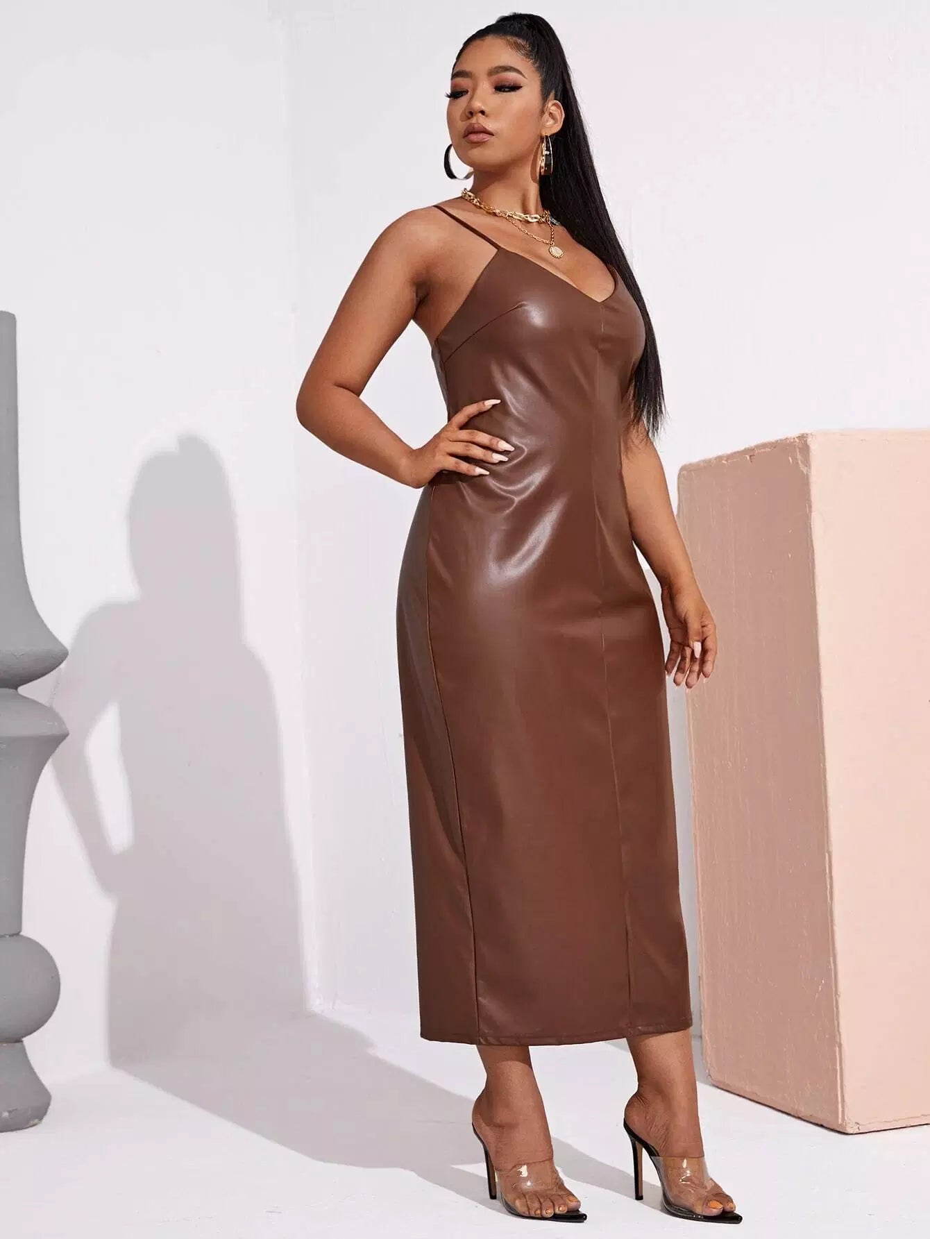 فستان من جلد البولي يوريثان بحواف منقسمة