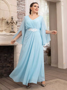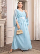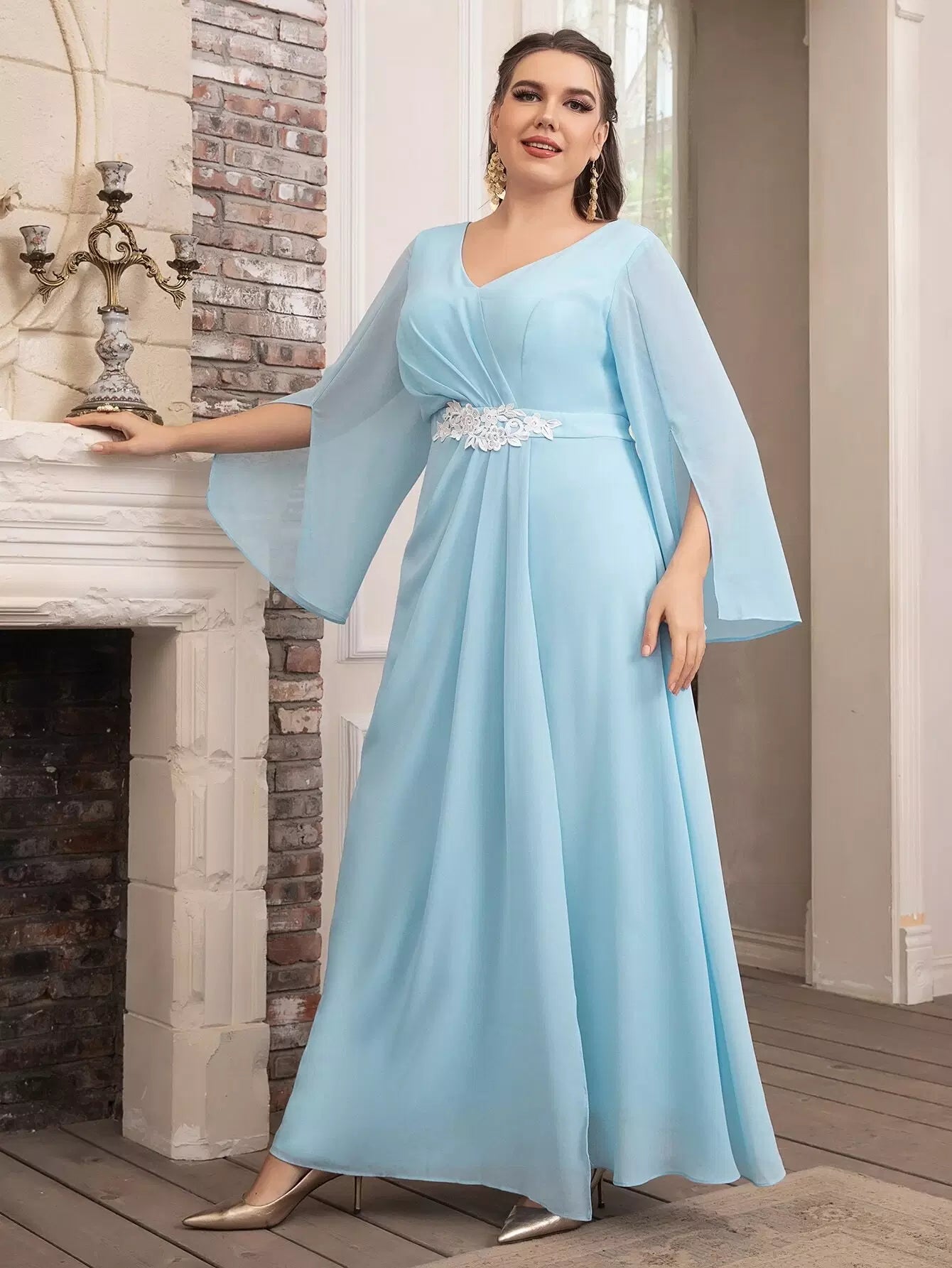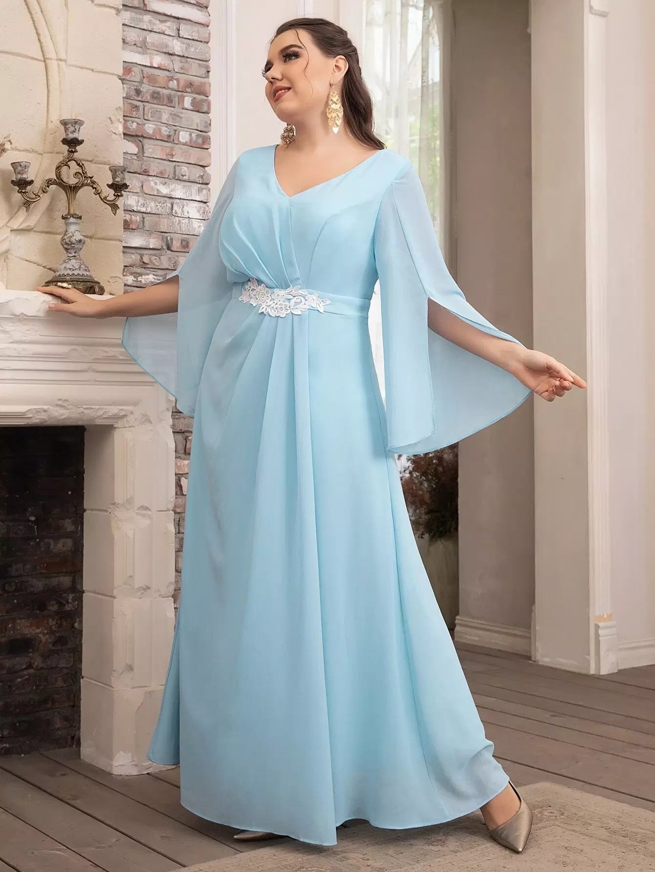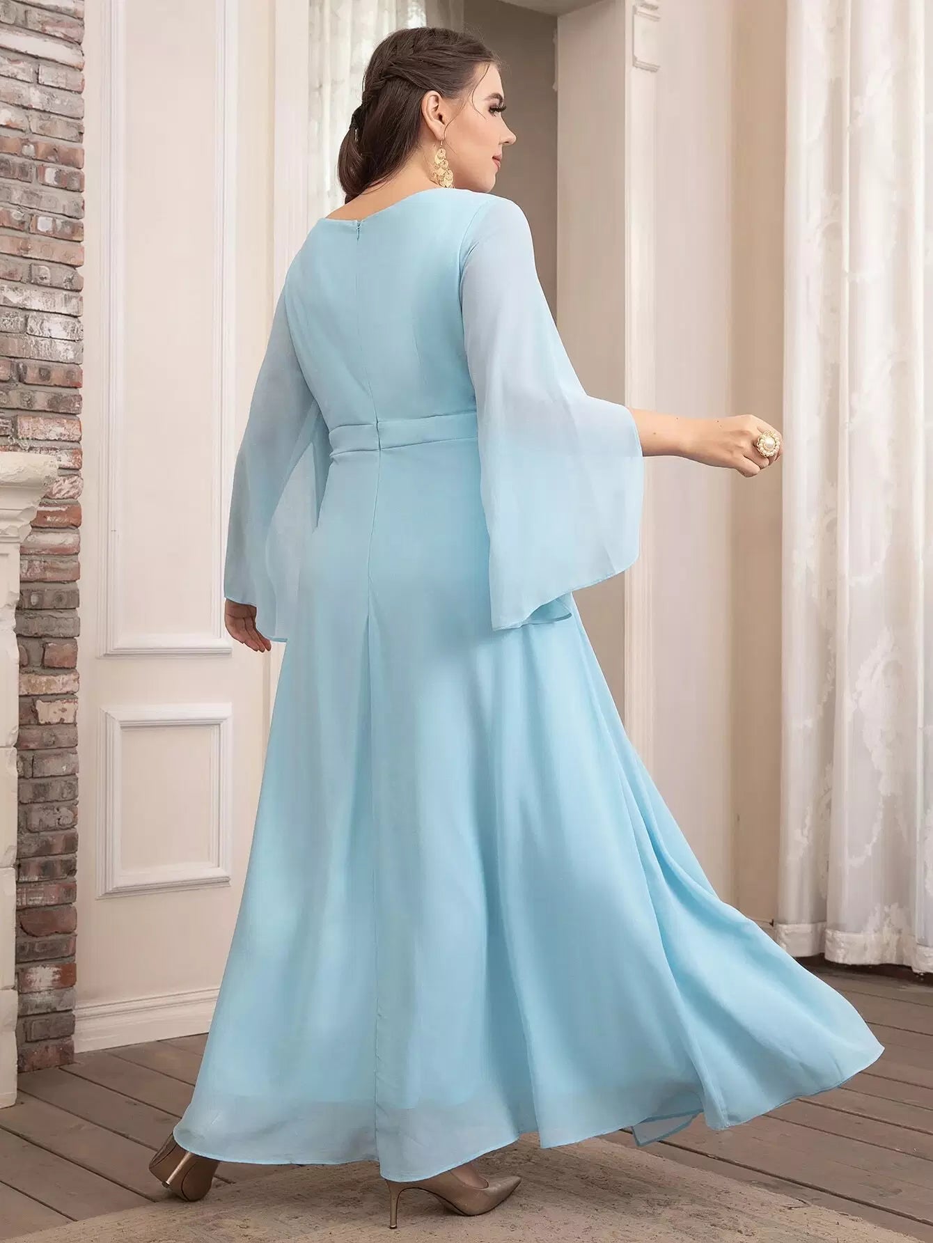 فستان رسمي ذو أكمام منقسمة ومزخرف بأكمام زائد