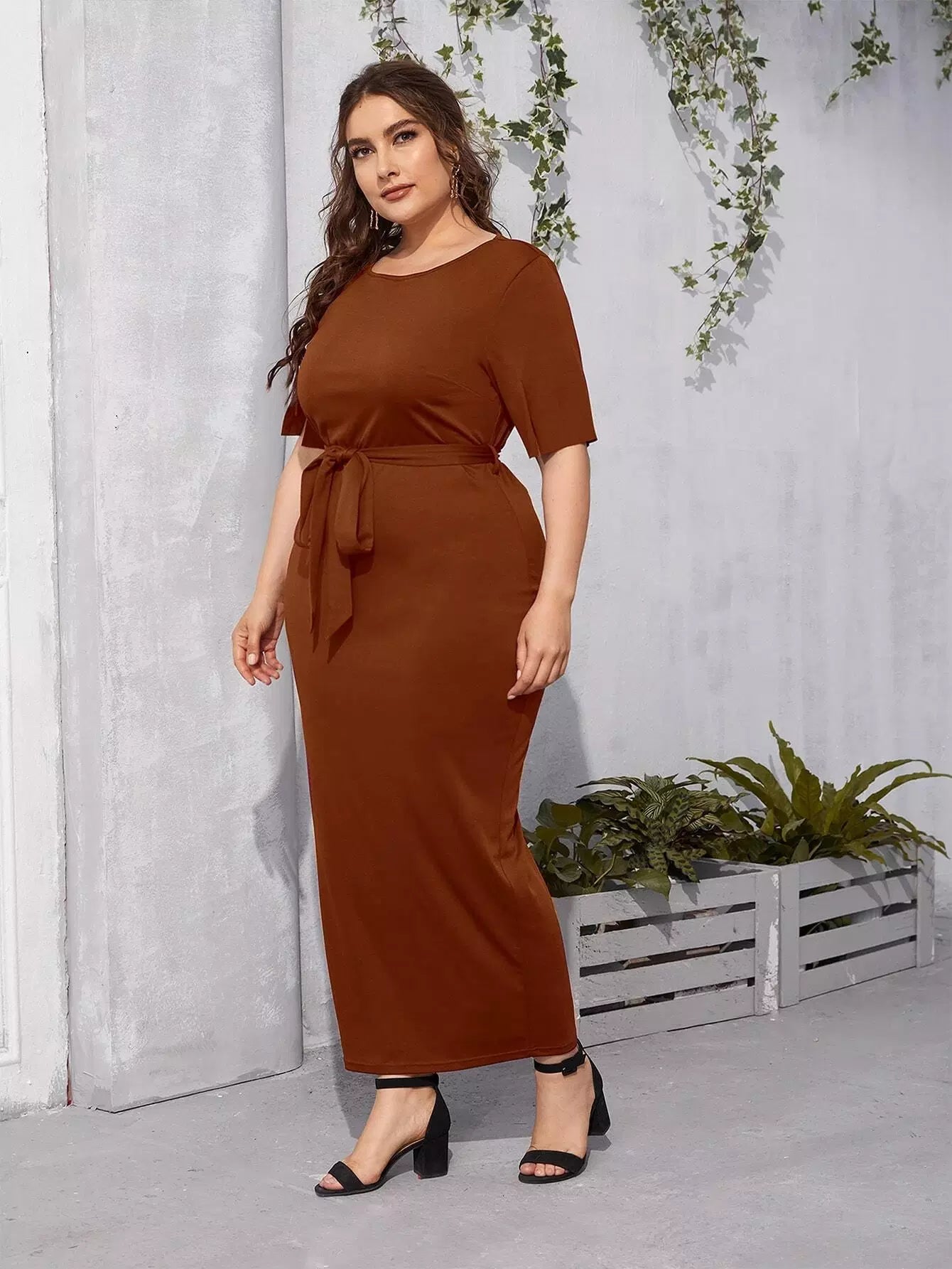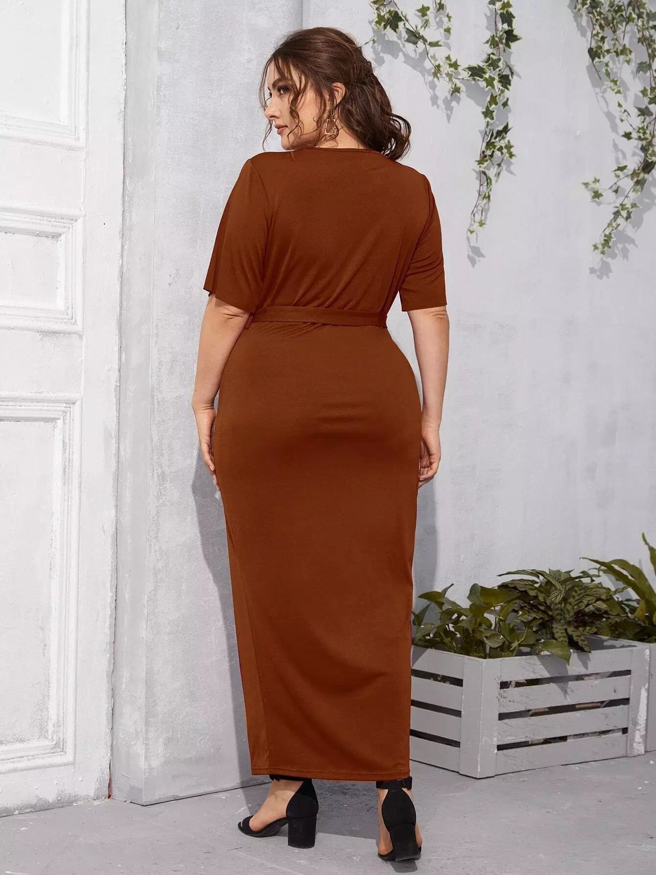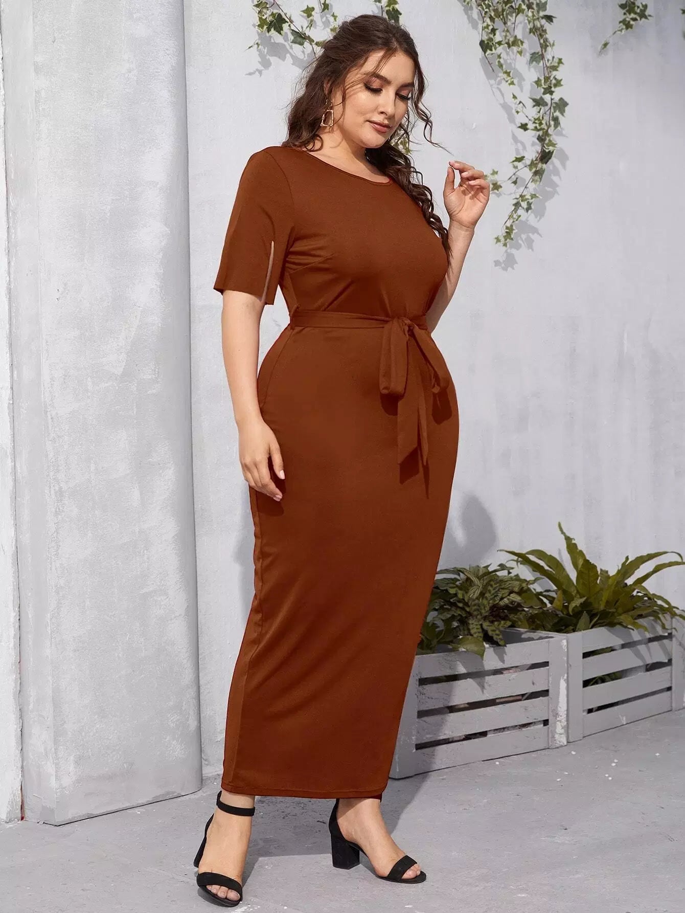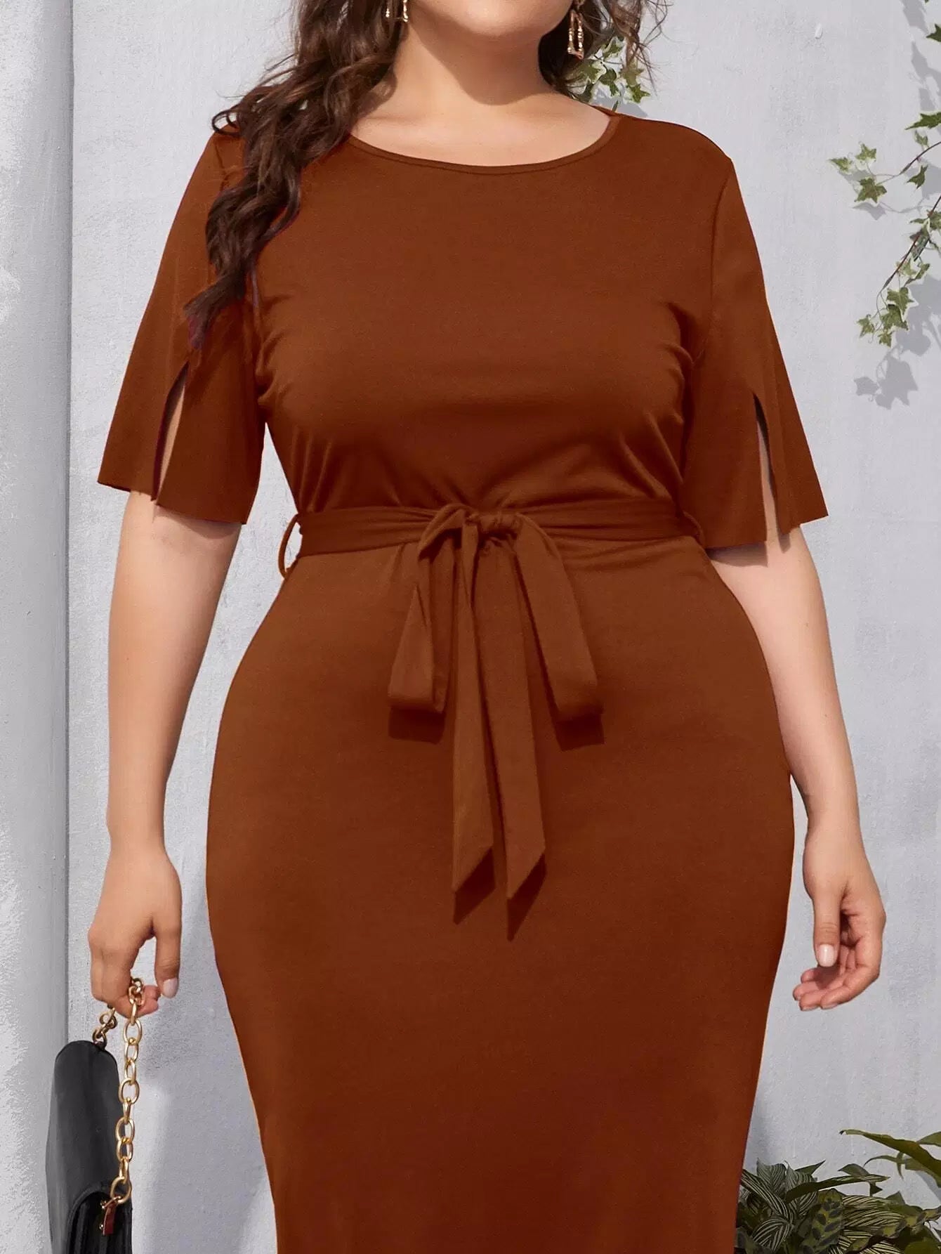 بالإضافة إلى فستان بأكمام منقسمة بدون حزام