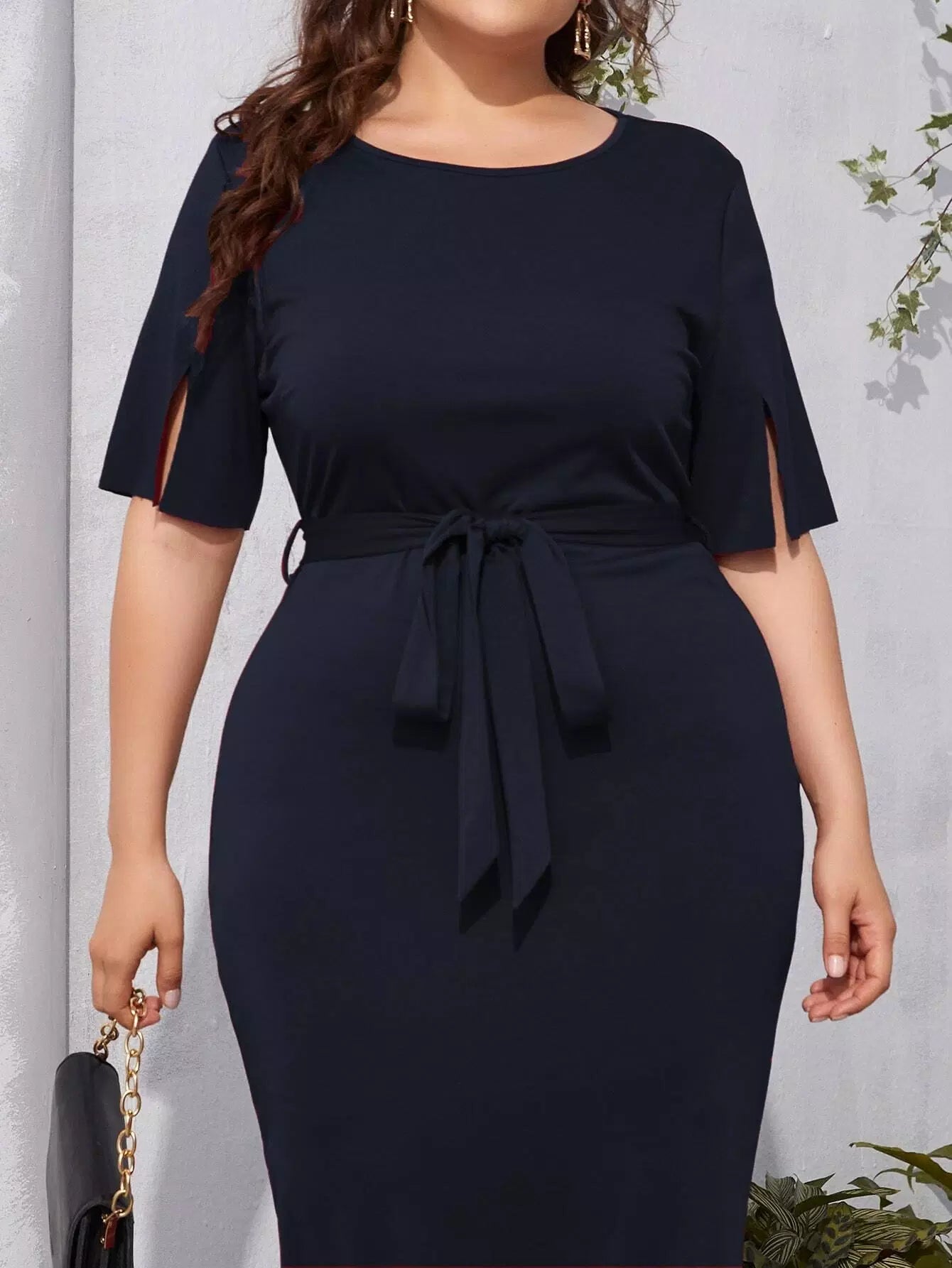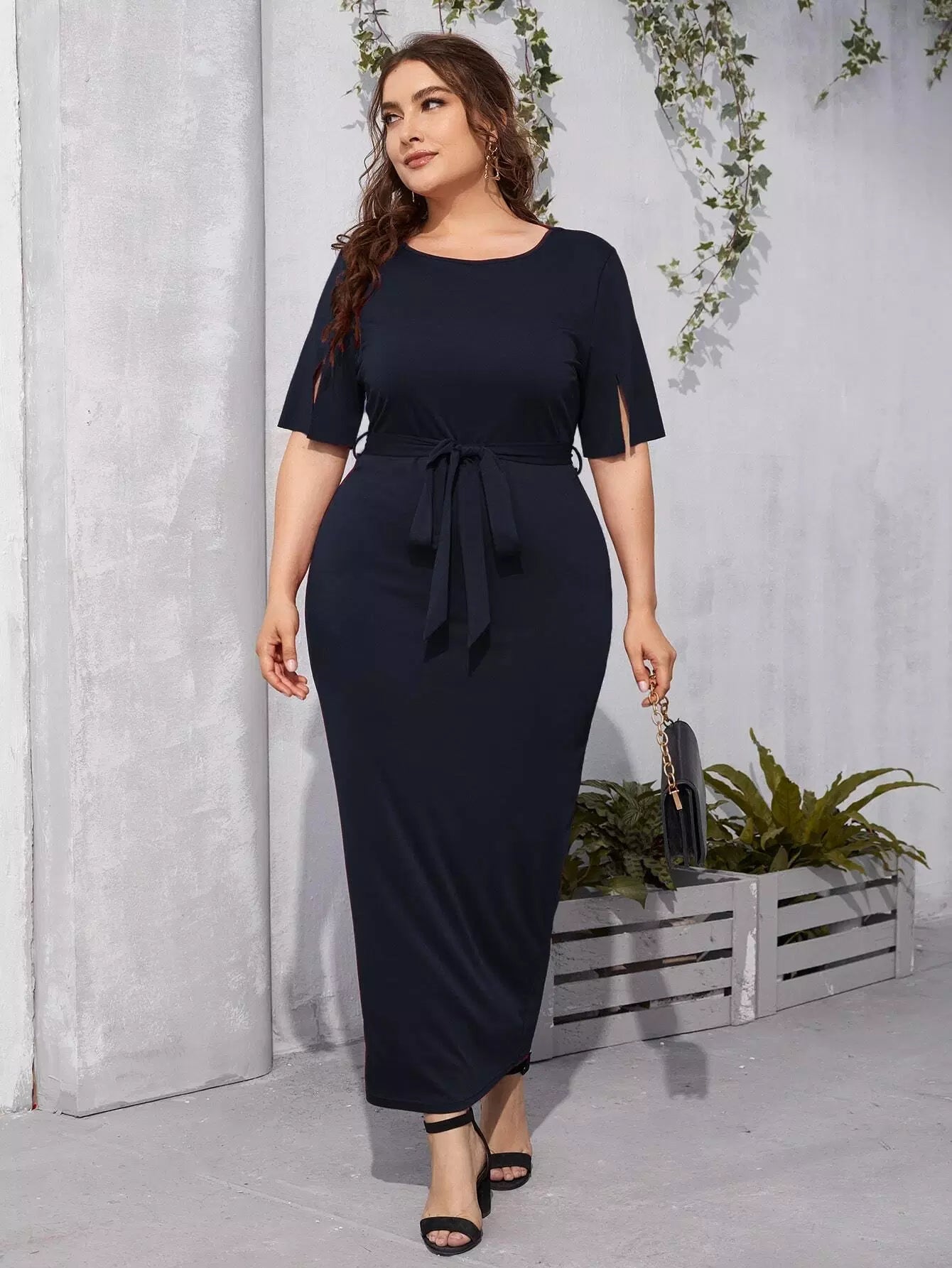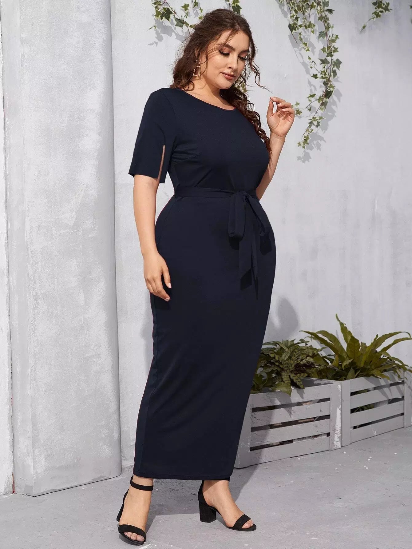 بالإضافة إلى فستان بأكمام منقسمة بدون حزام