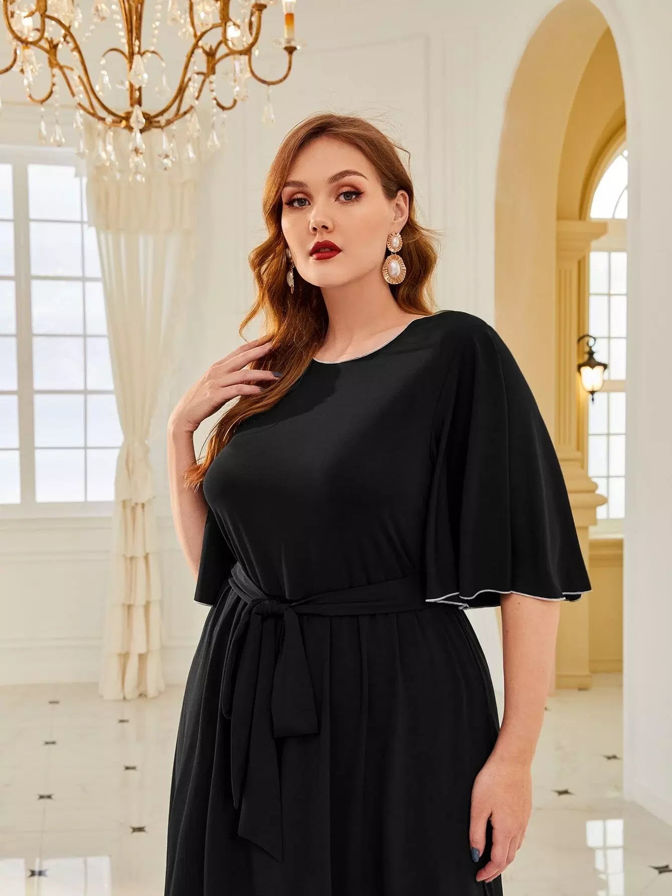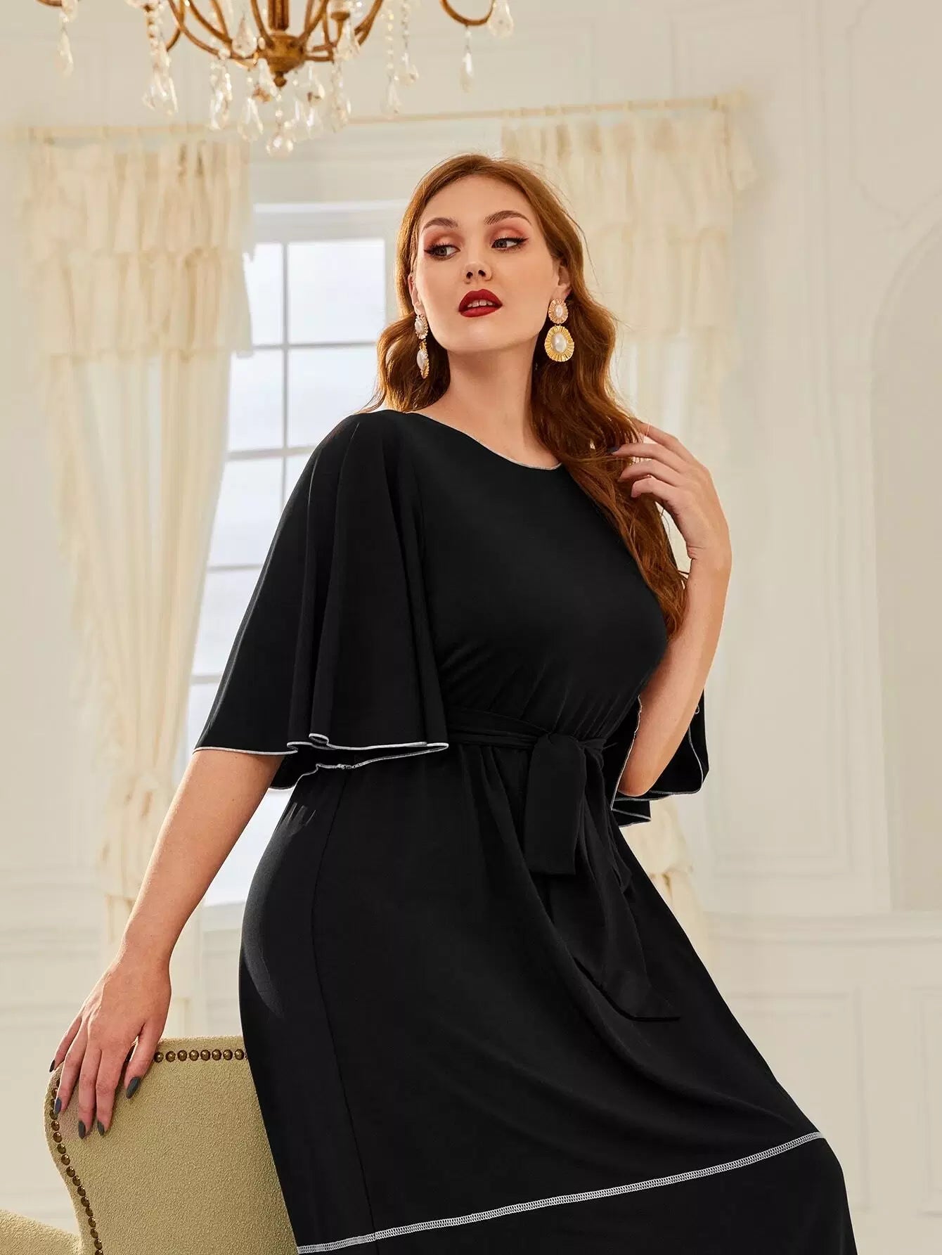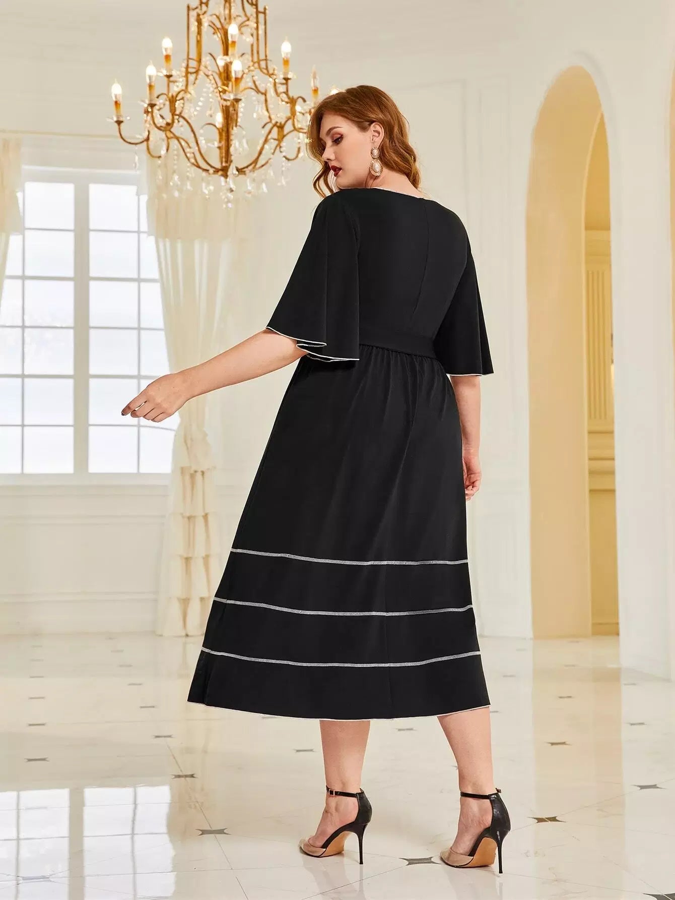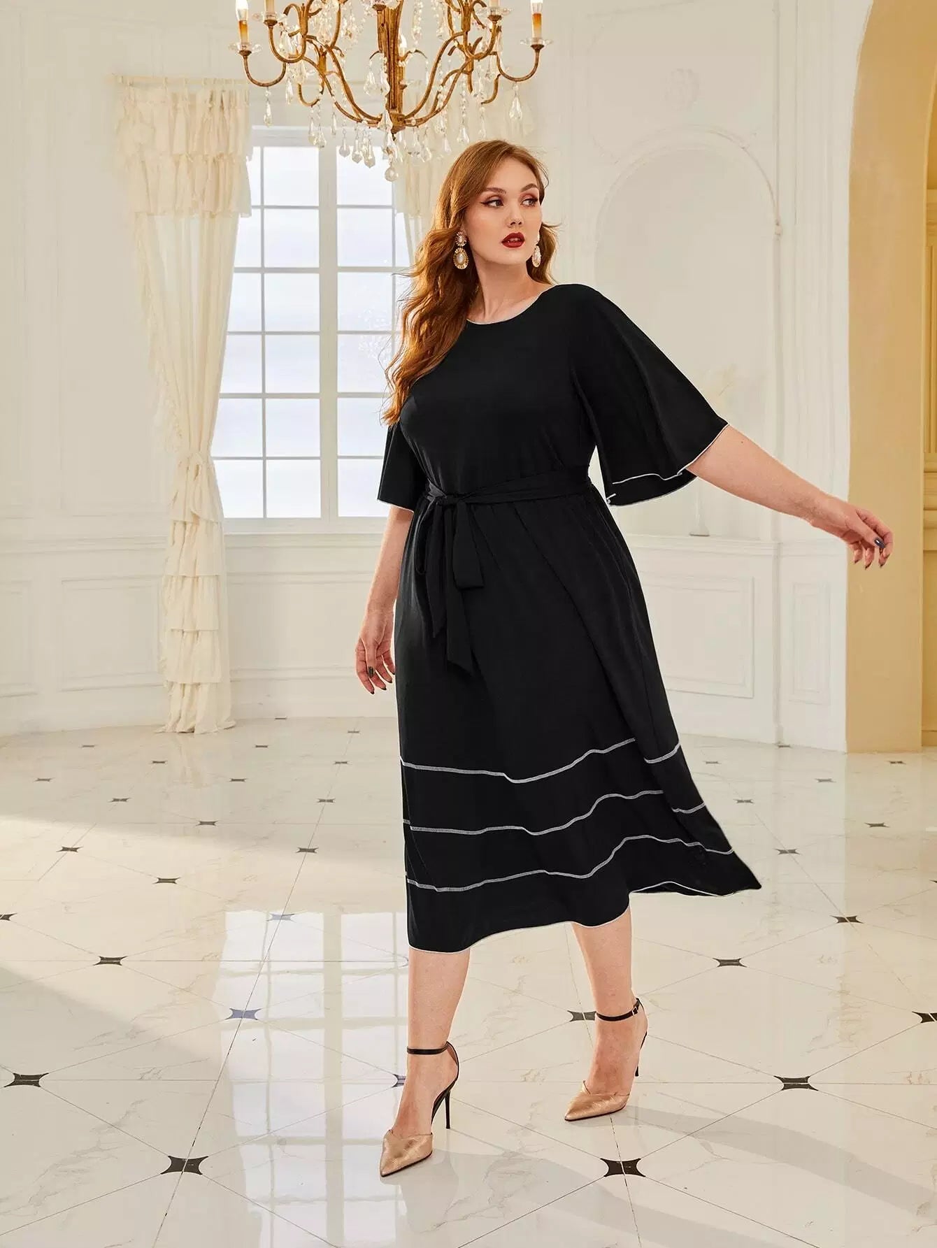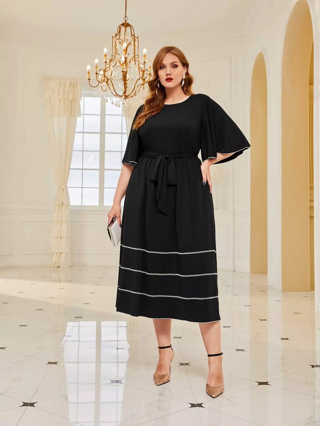 بالإضافة إلى فستان مقلم بأكمام فراشة بدون حزام